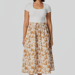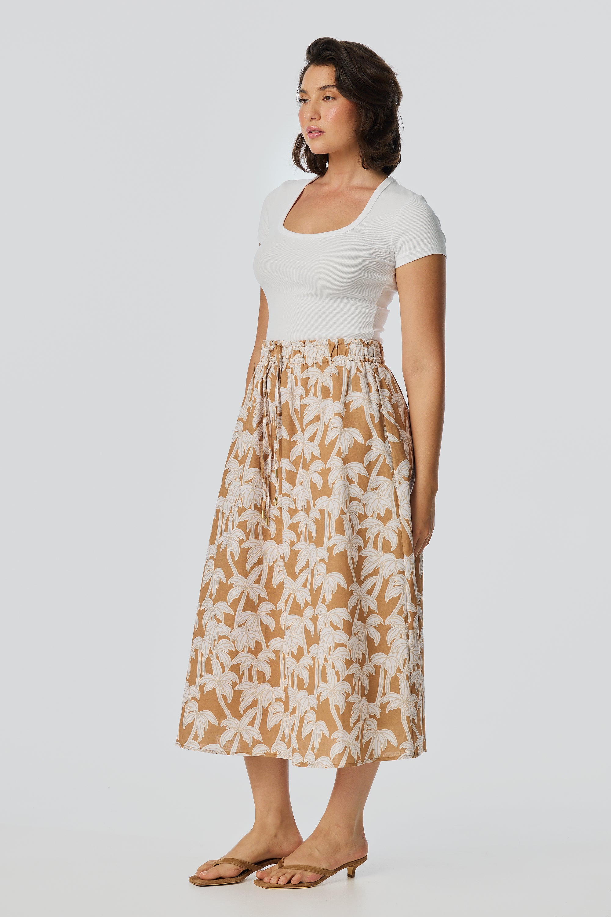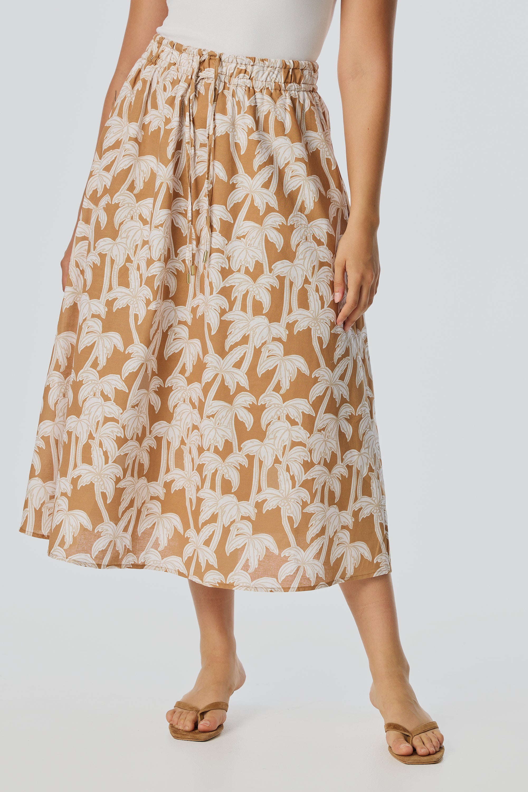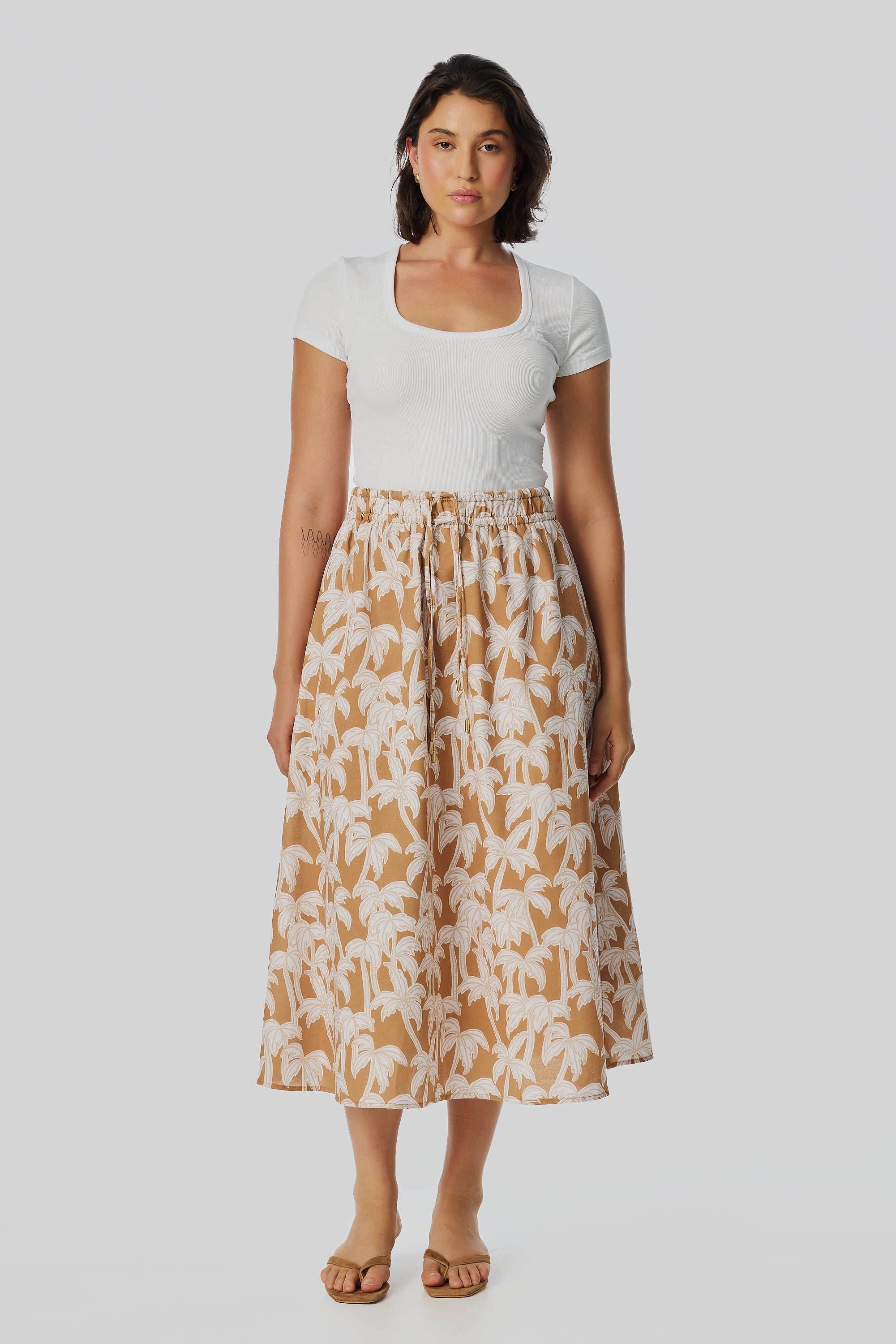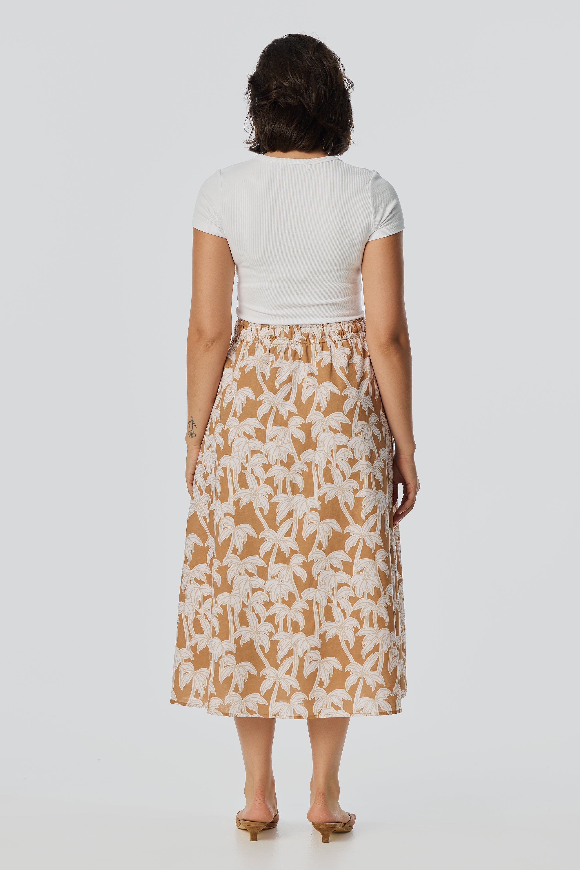 Effortless and versatile, the Gathered Maxi Skirt in Copper Palms features an exclusive Serafina print and is crafted from a mid-weight cotton-linen blend for a soft, structured drape. Designed with a natural waist and adjustable drawstring, it falls to a relaxed maxi length for easy, all-day comfort. Pairs effortlessly with tanks and tees.