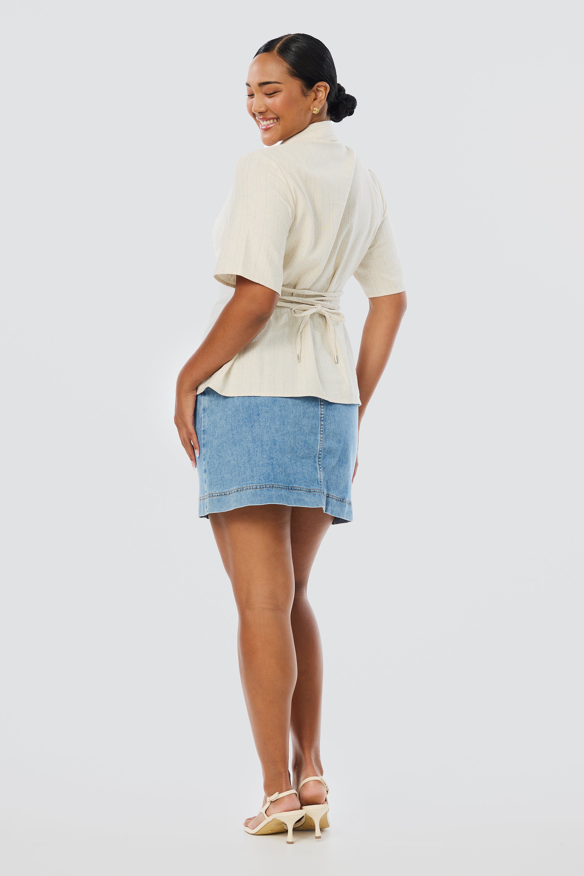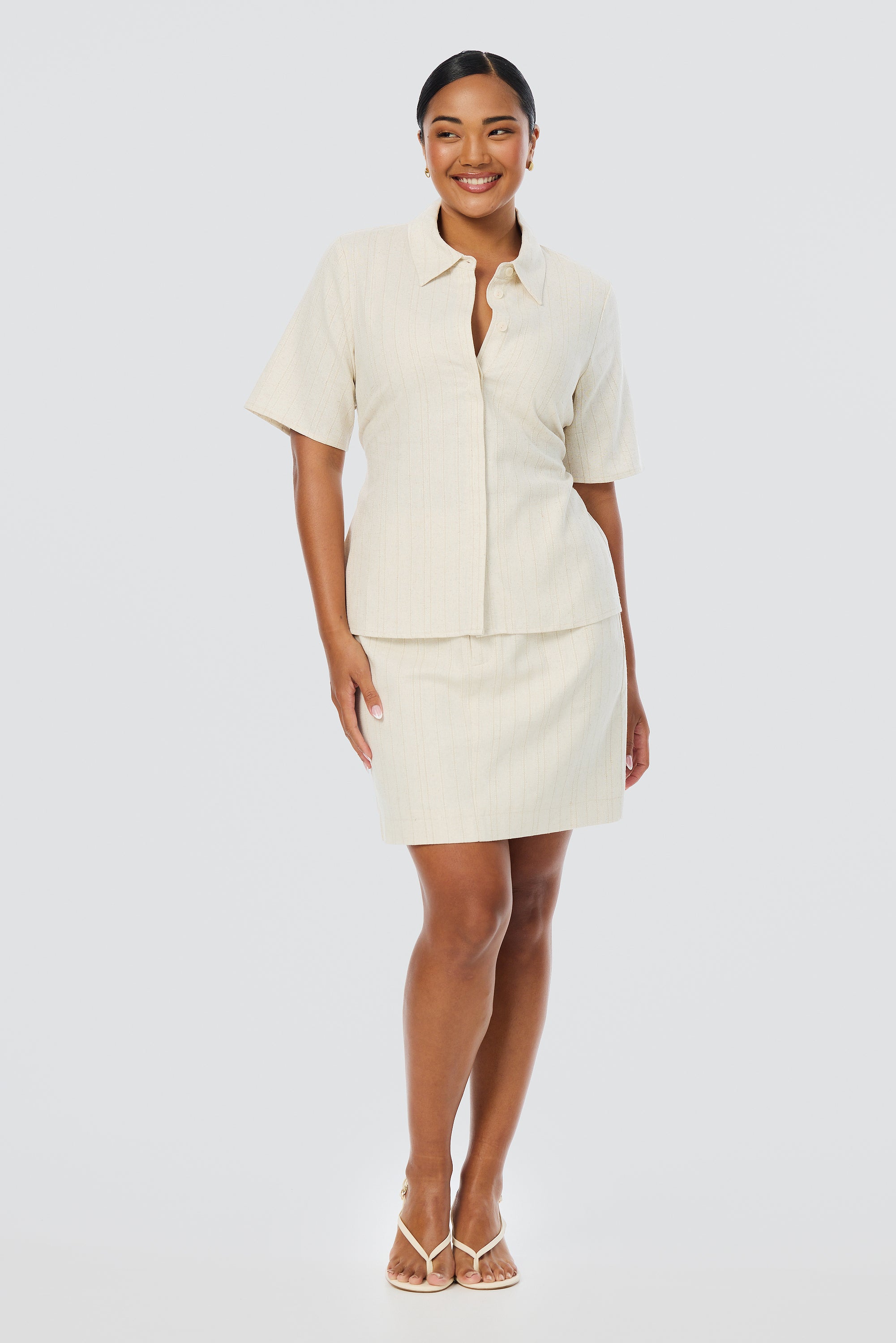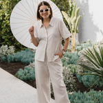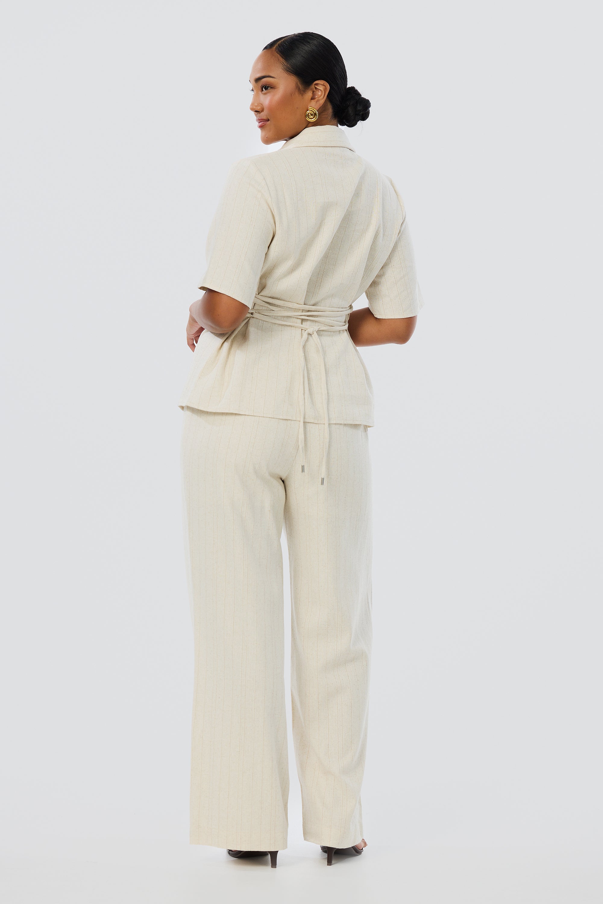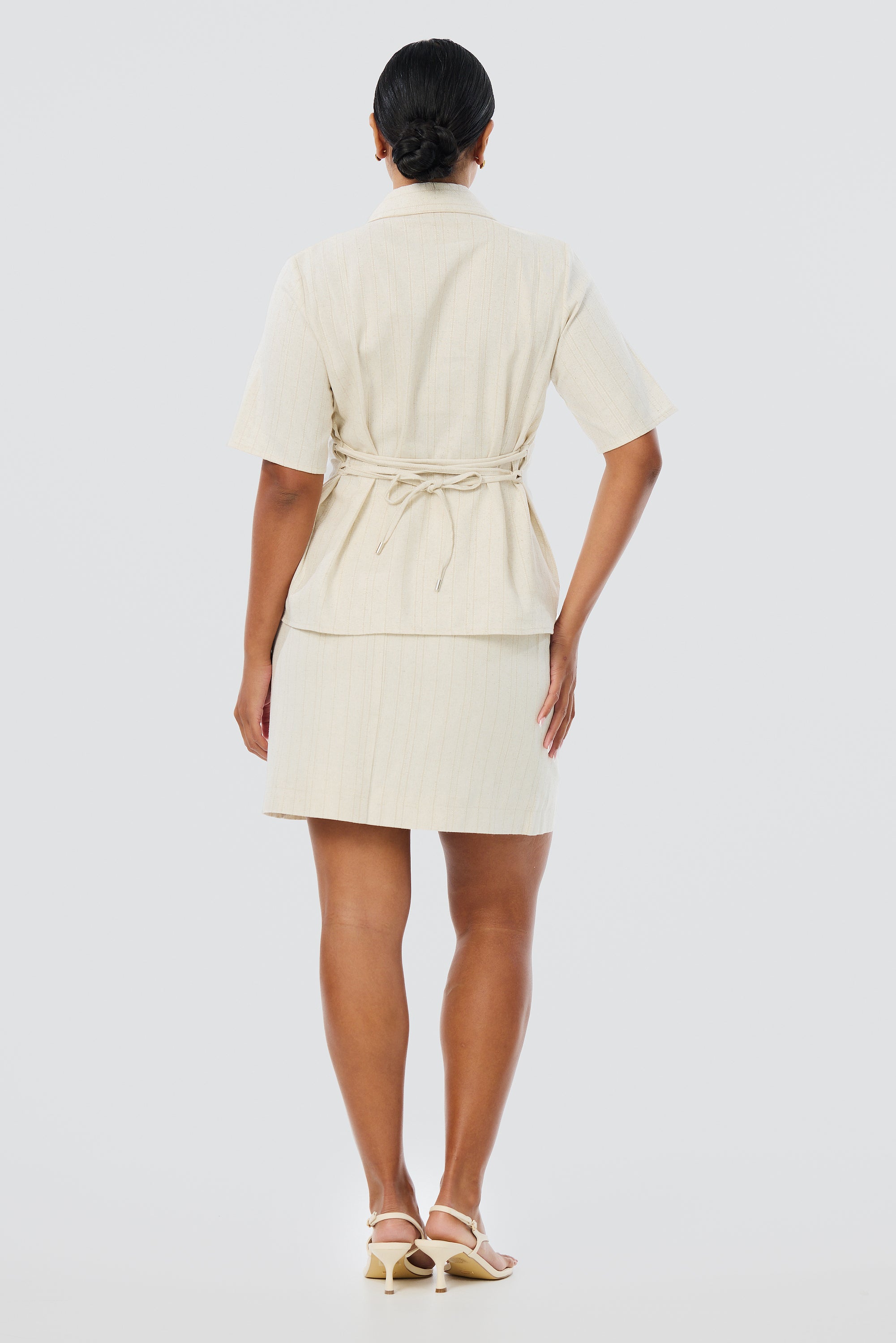 The Short Sleeve Shirt in Oatmeal Stripe is a relaxed staple with an elevated twist. With a flattering back tie and soft, breathable fabric, it's perfect for styling through the warmer months.