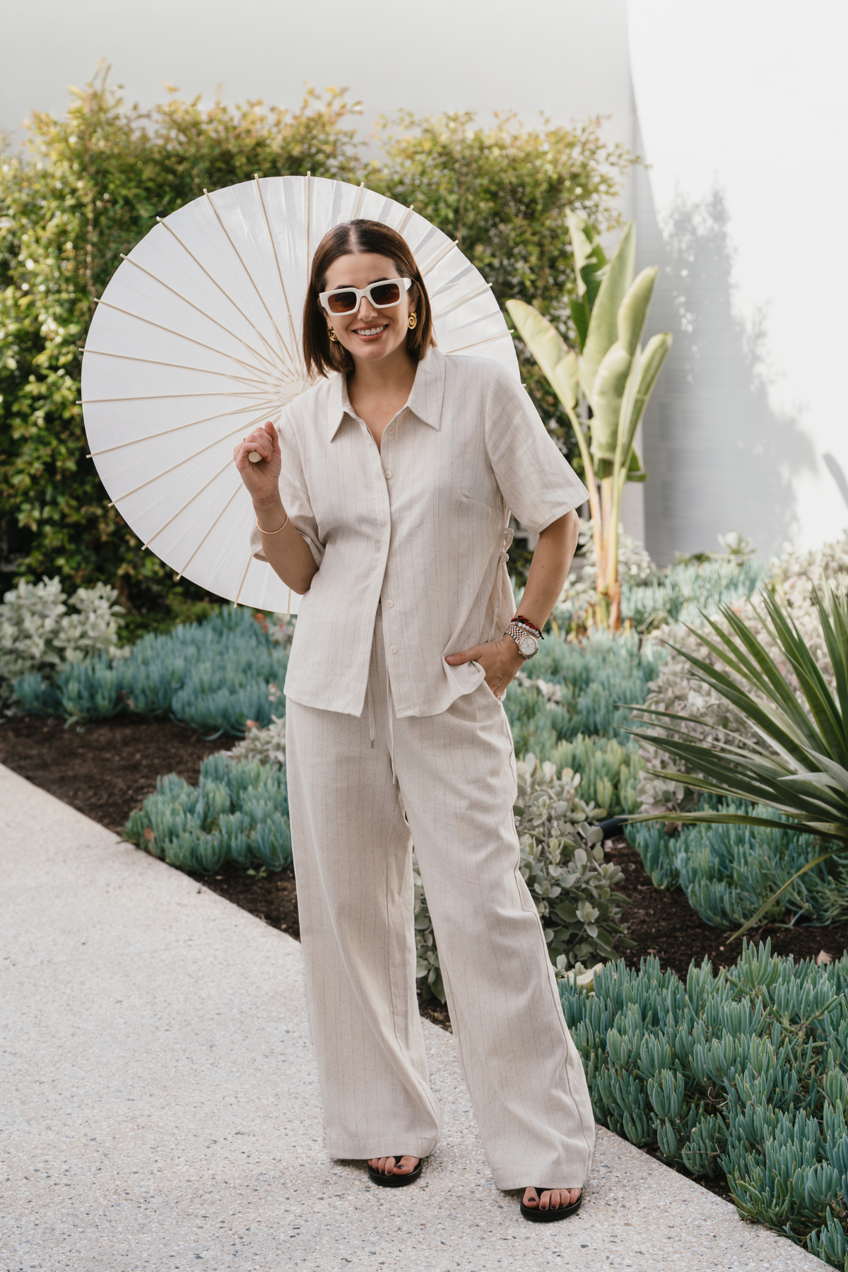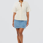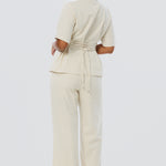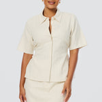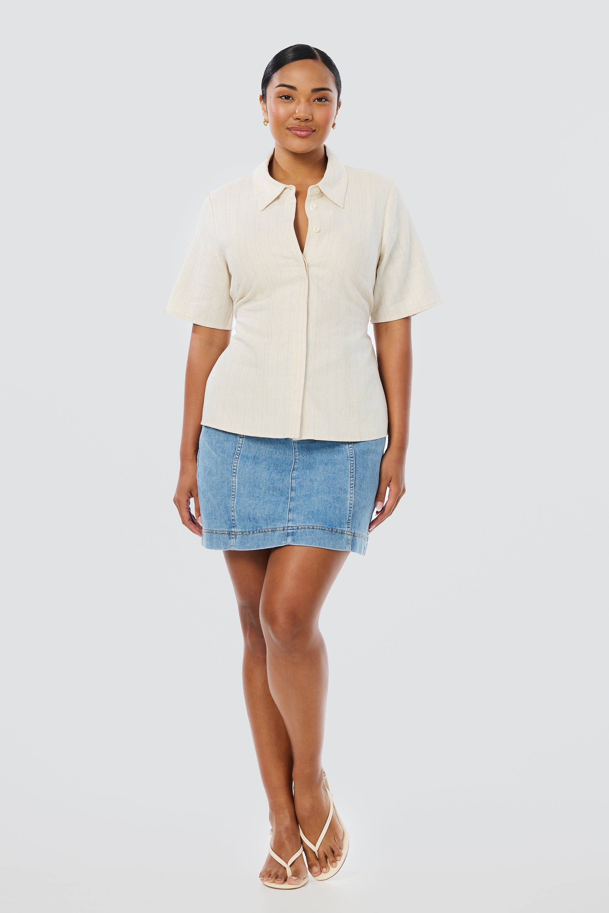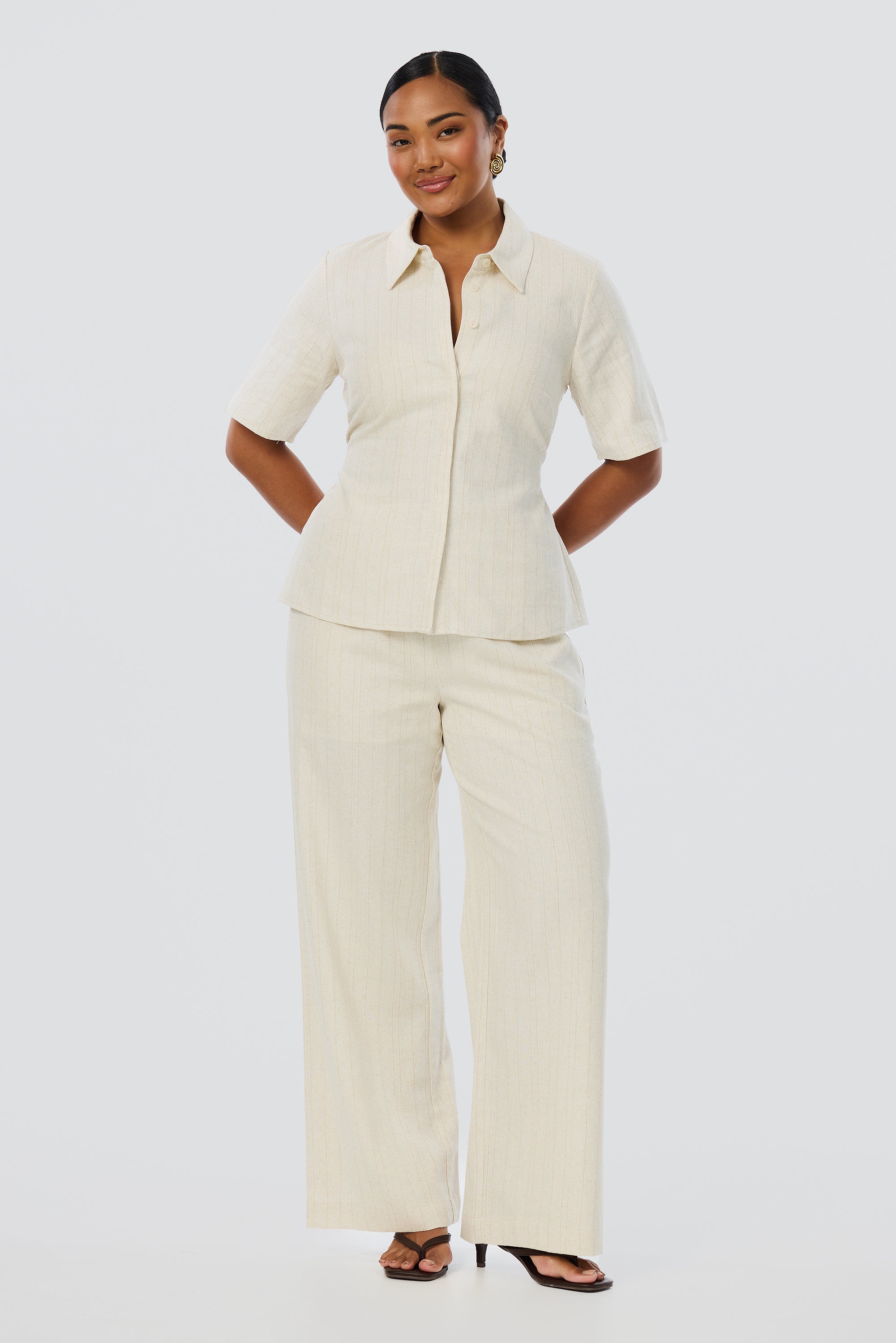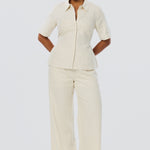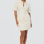 The Short Sleeve Shirt in Oatmeal Stripe is a relaxed staple with an elevated twist. With a flattering back tie and soft, breathable fabric, it's perfect for styling through the warmer months.