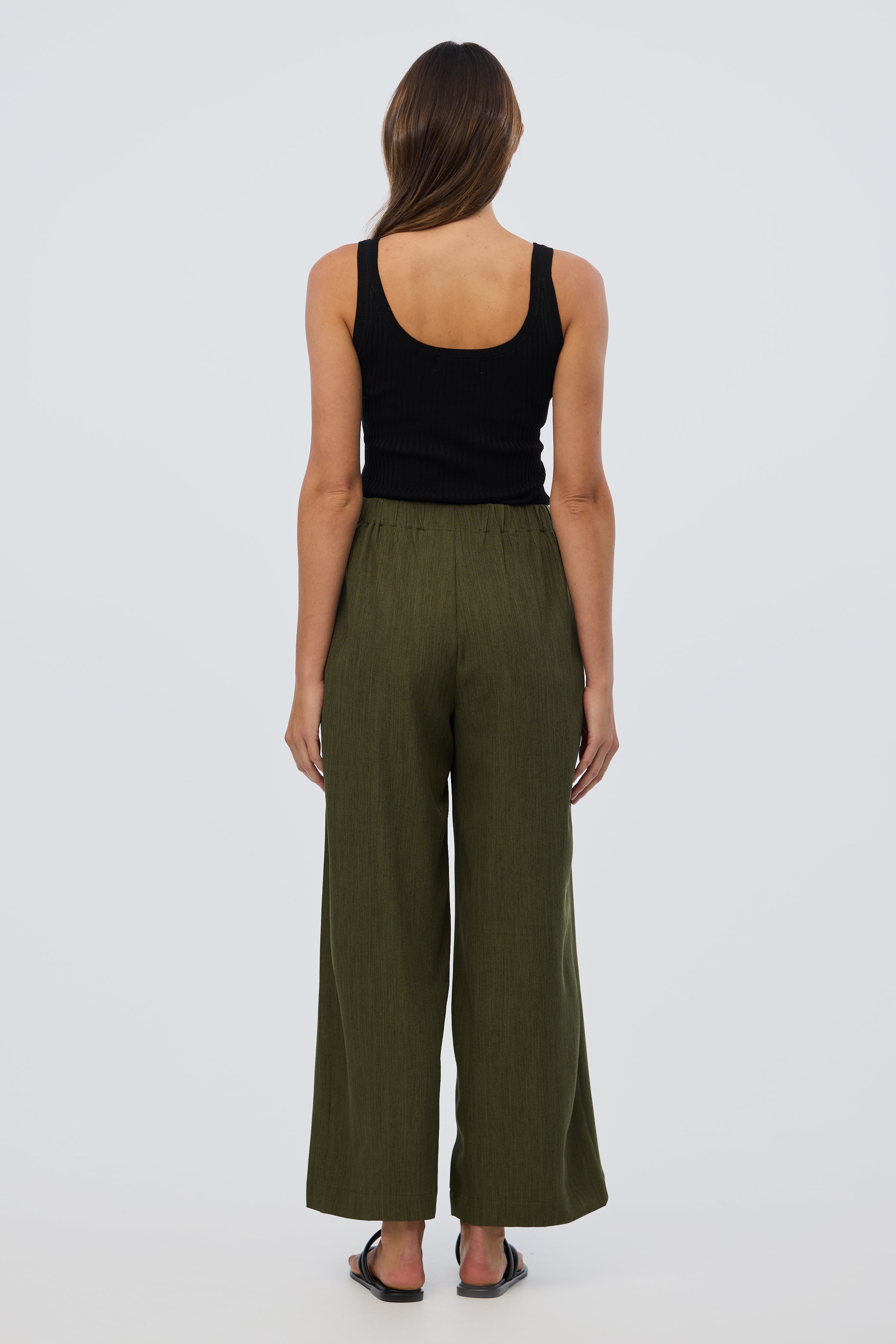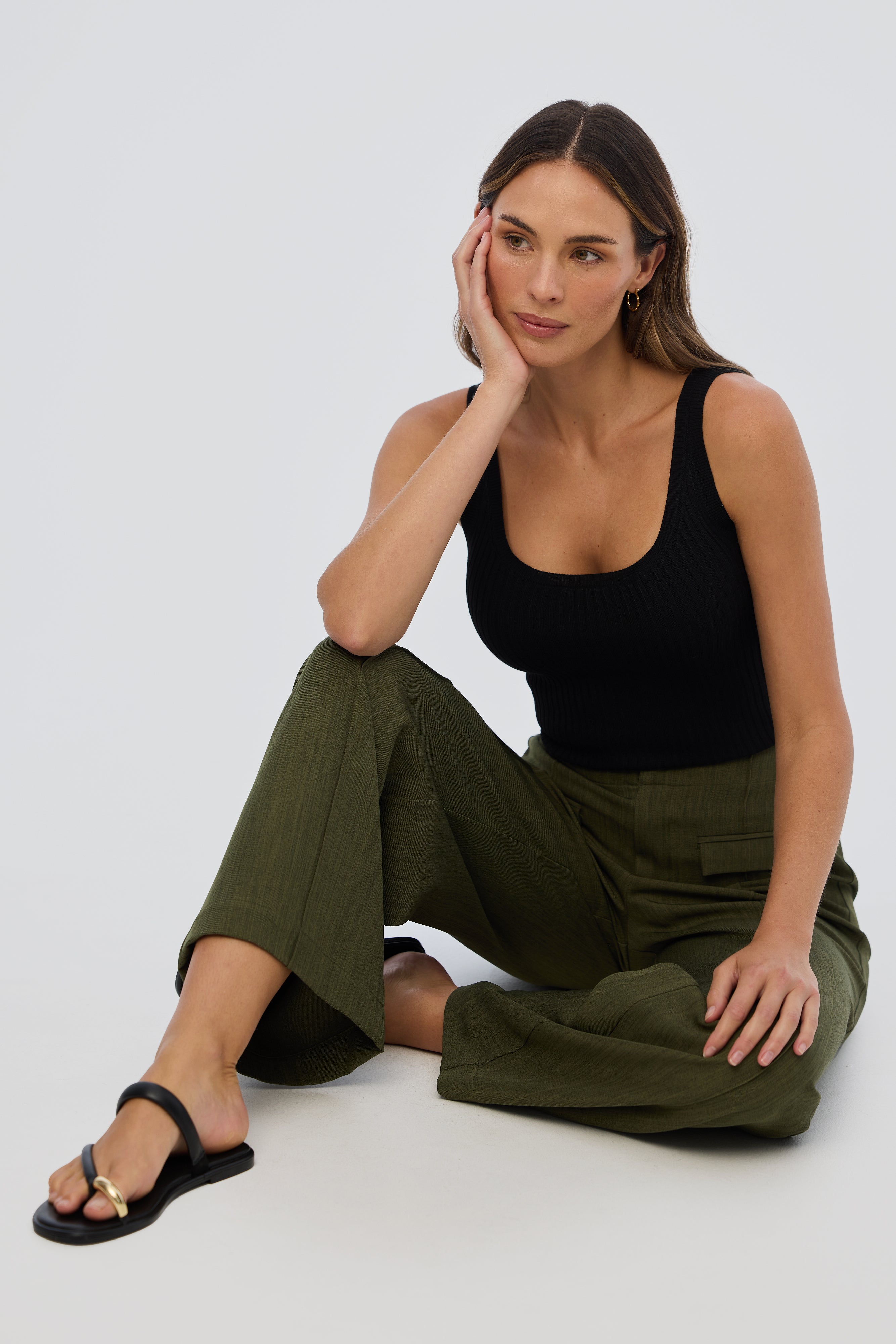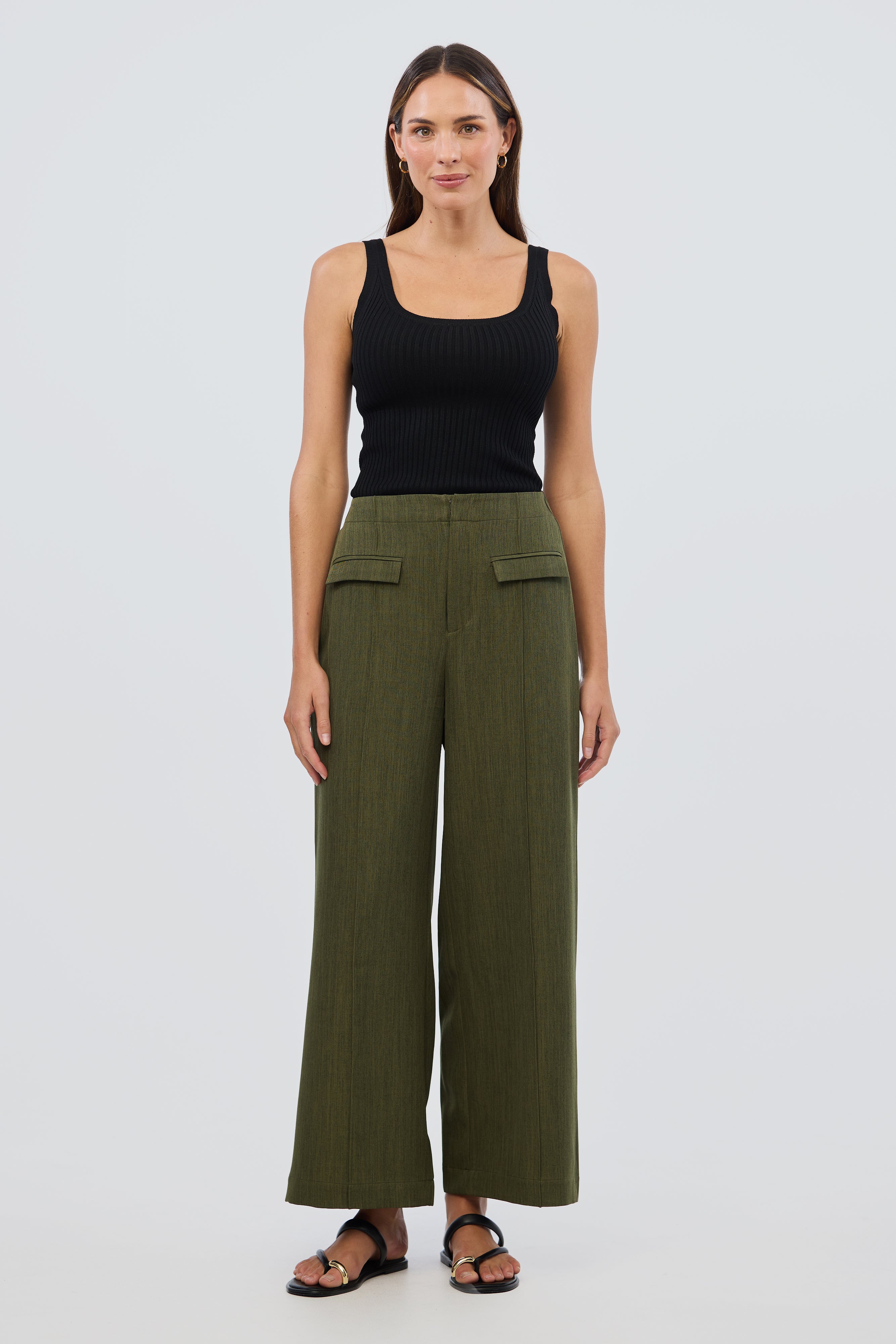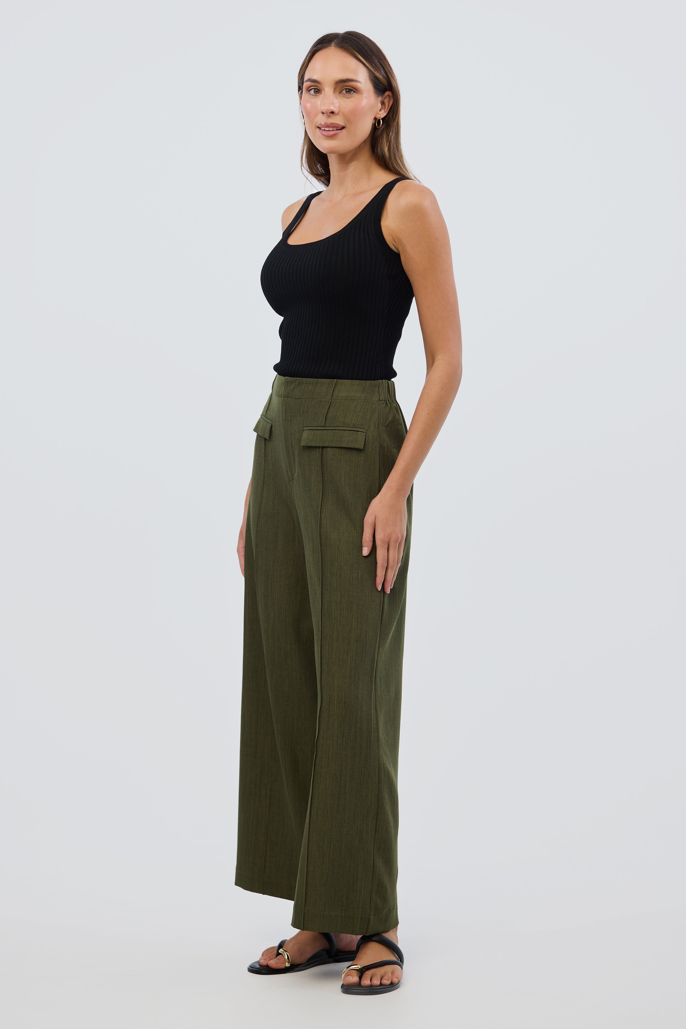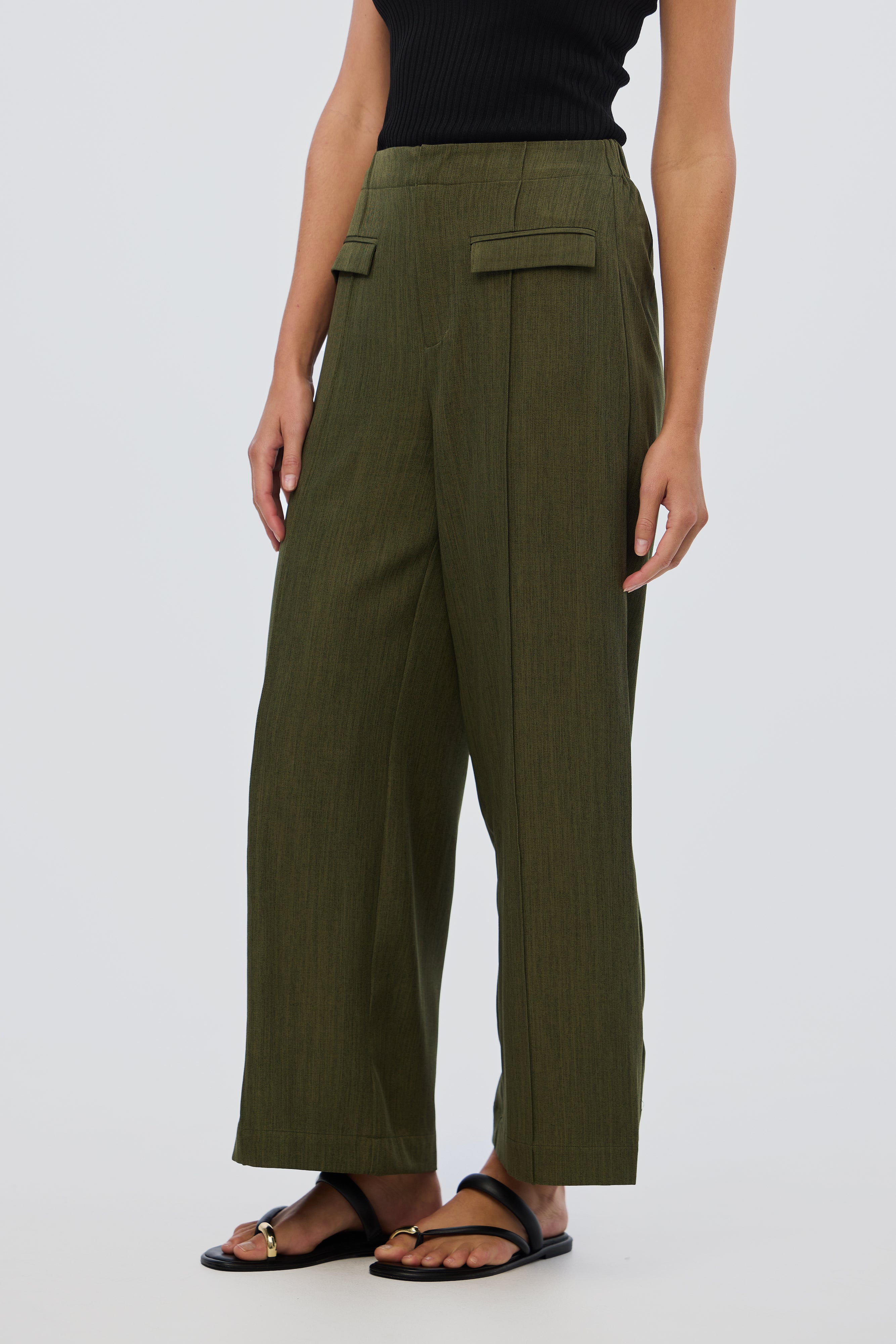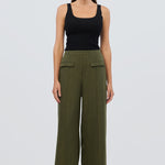 Designed for comfort and ease, the Tailored Pocket Pants in Khaki feature a high waist with concealed hook-and-bar closure, front fly zipper, and elasticated panels at the back for a perfect fit. These full-length trousers are ideal for pairing with any top in your wardrobe.