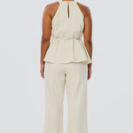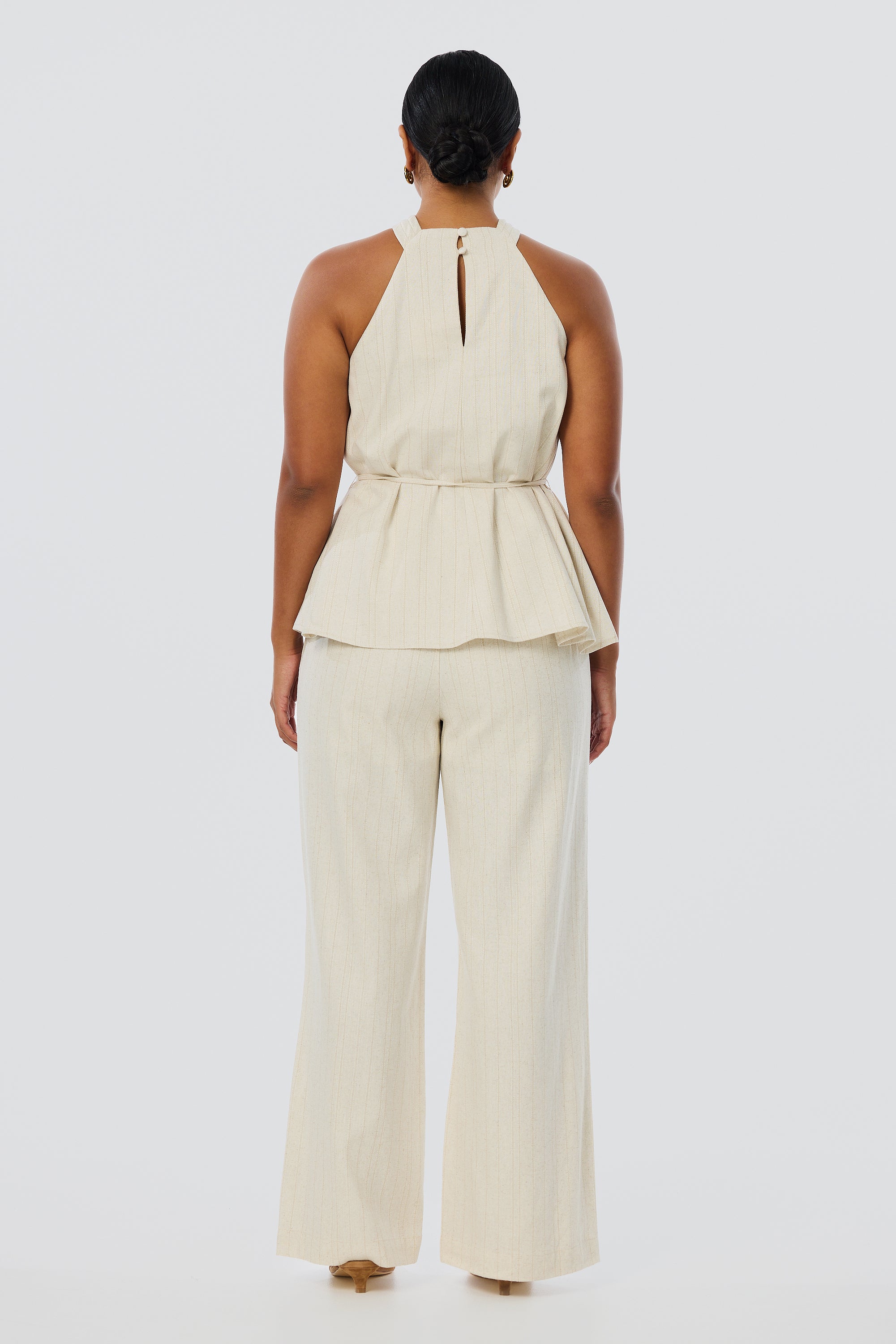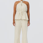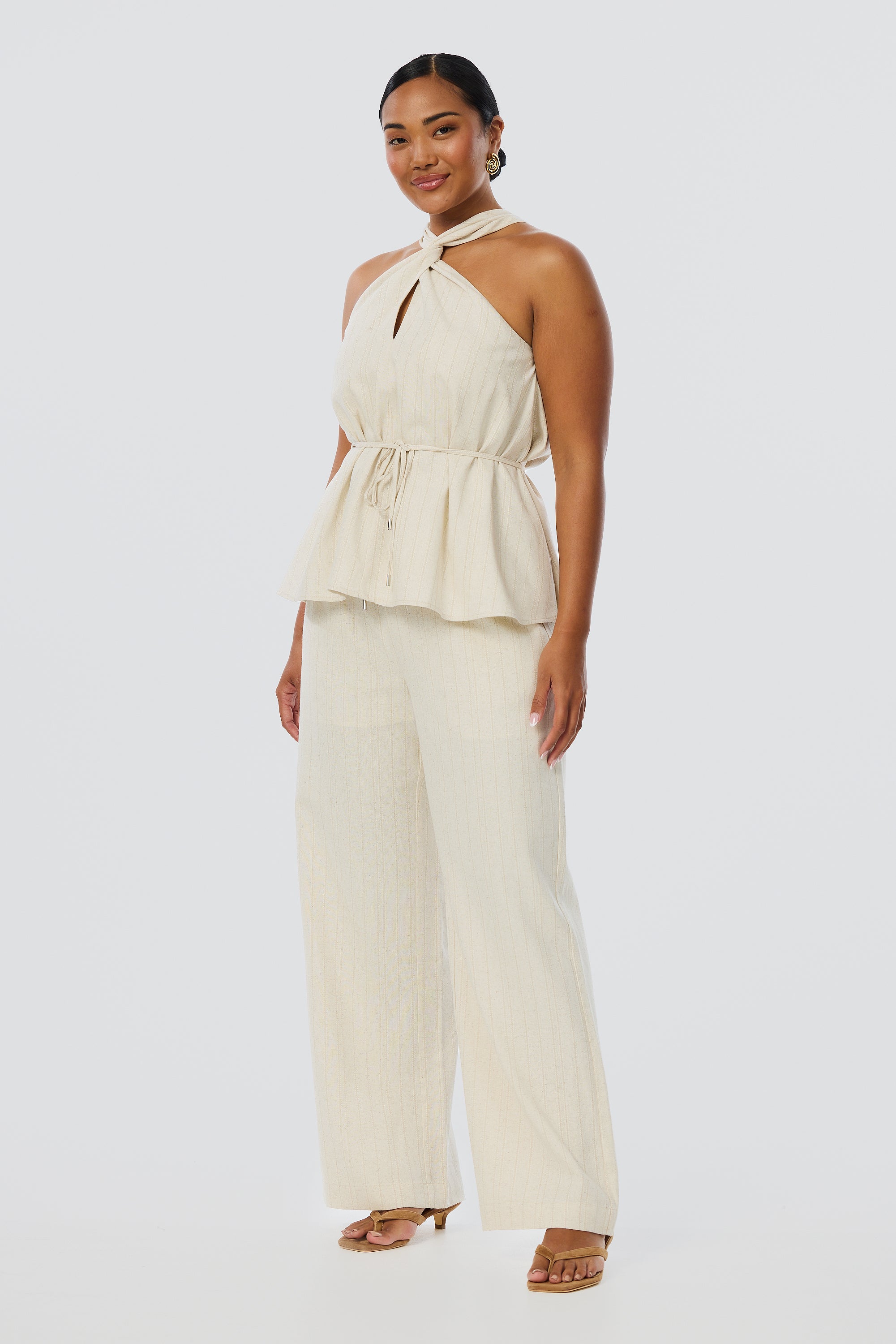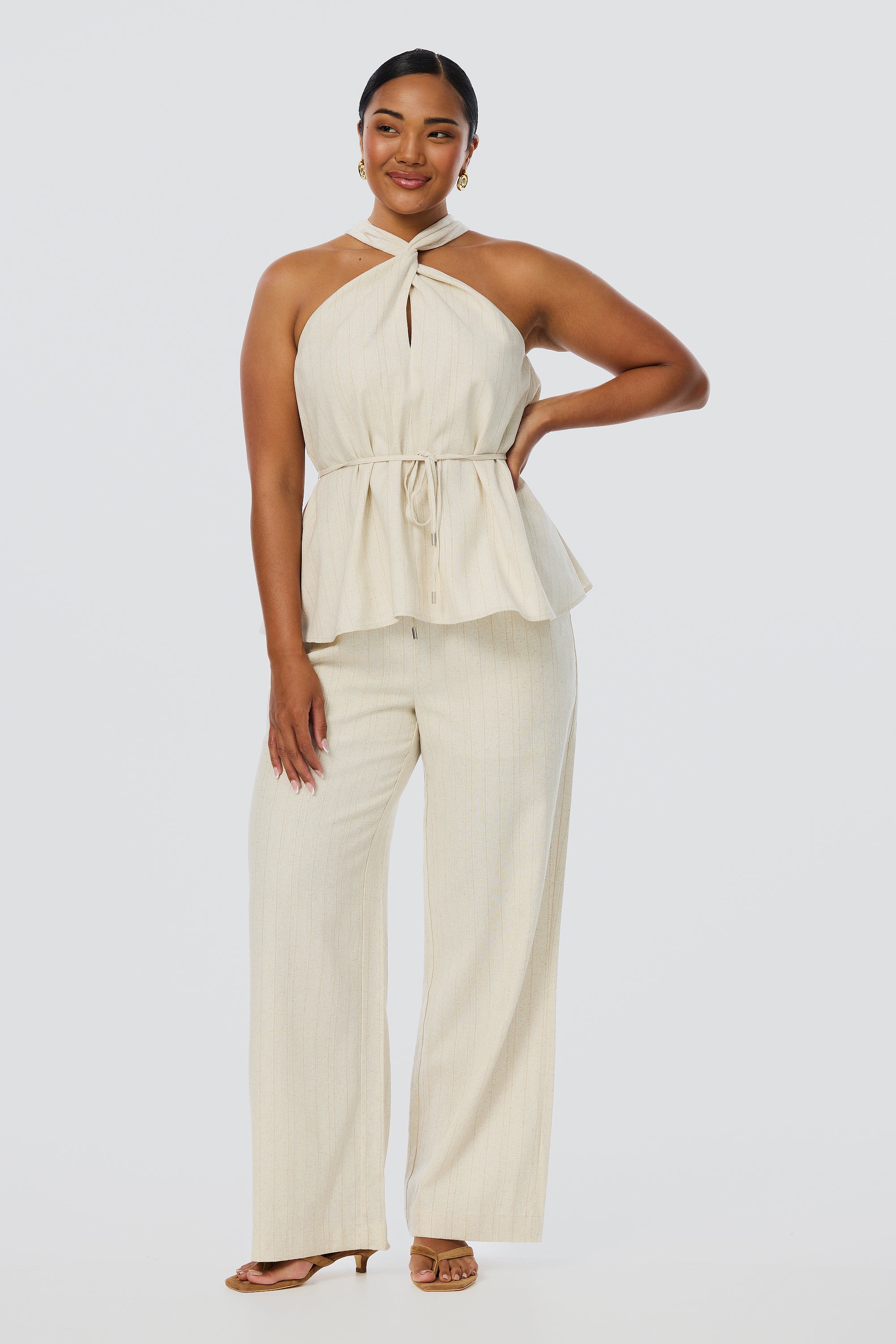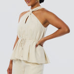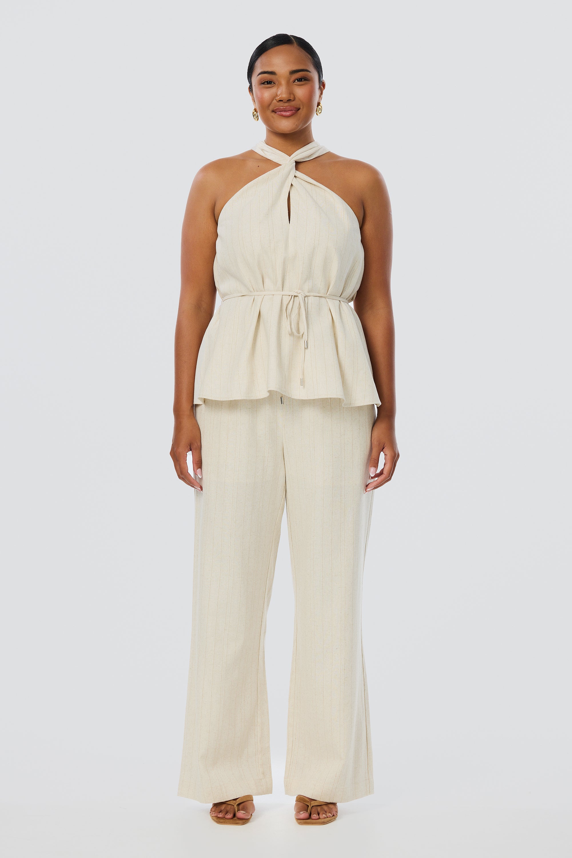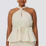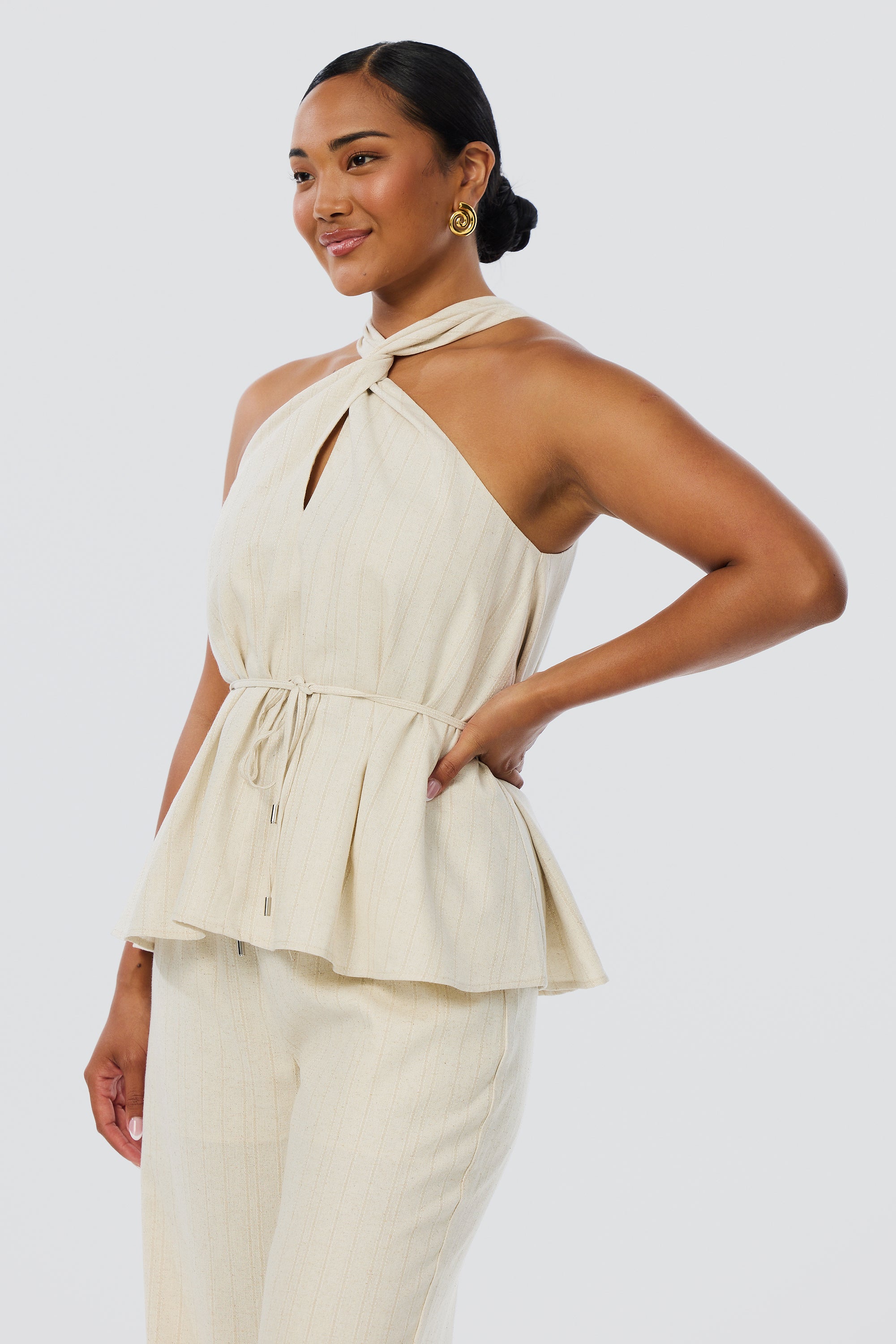Twist Neck Halter Top - Oatmeal Stripe (Pre Order)
