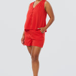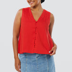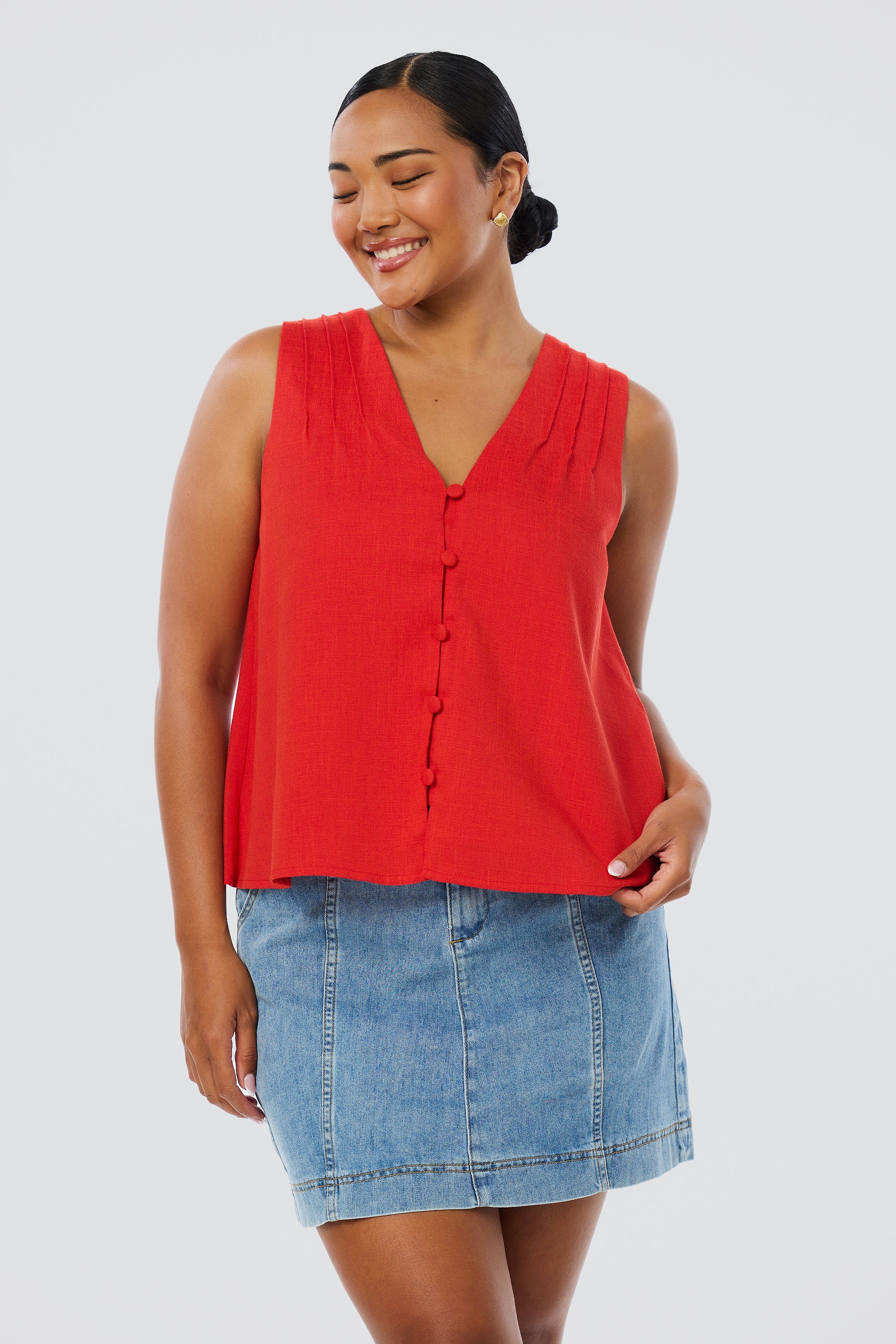 The V-Neck Swing Top in Crimson is lightweight and breezy, with pintuck details and a slightly cropped fit. Fully lined and easy to style, it’s a relaxed warm-weather essential.