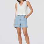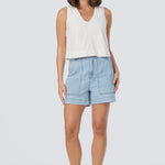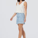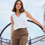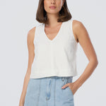 Minimal and modern, the V Neck Topstitched Tank in White is designed with clean lines and a slightly cropped silhouette. Featuring subtle seam detailing and full lining, it’s an elevated warm-weather essential.