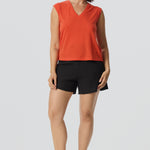 Your favourite silhouette, reimagined with a fresh neckline. The Lightweight V-Neck Cap Sleeve Tank in Flame combines softness and stretch with a relaxed drape and flattering cap sleeves. A true essential for elevated layering or standalone ease.