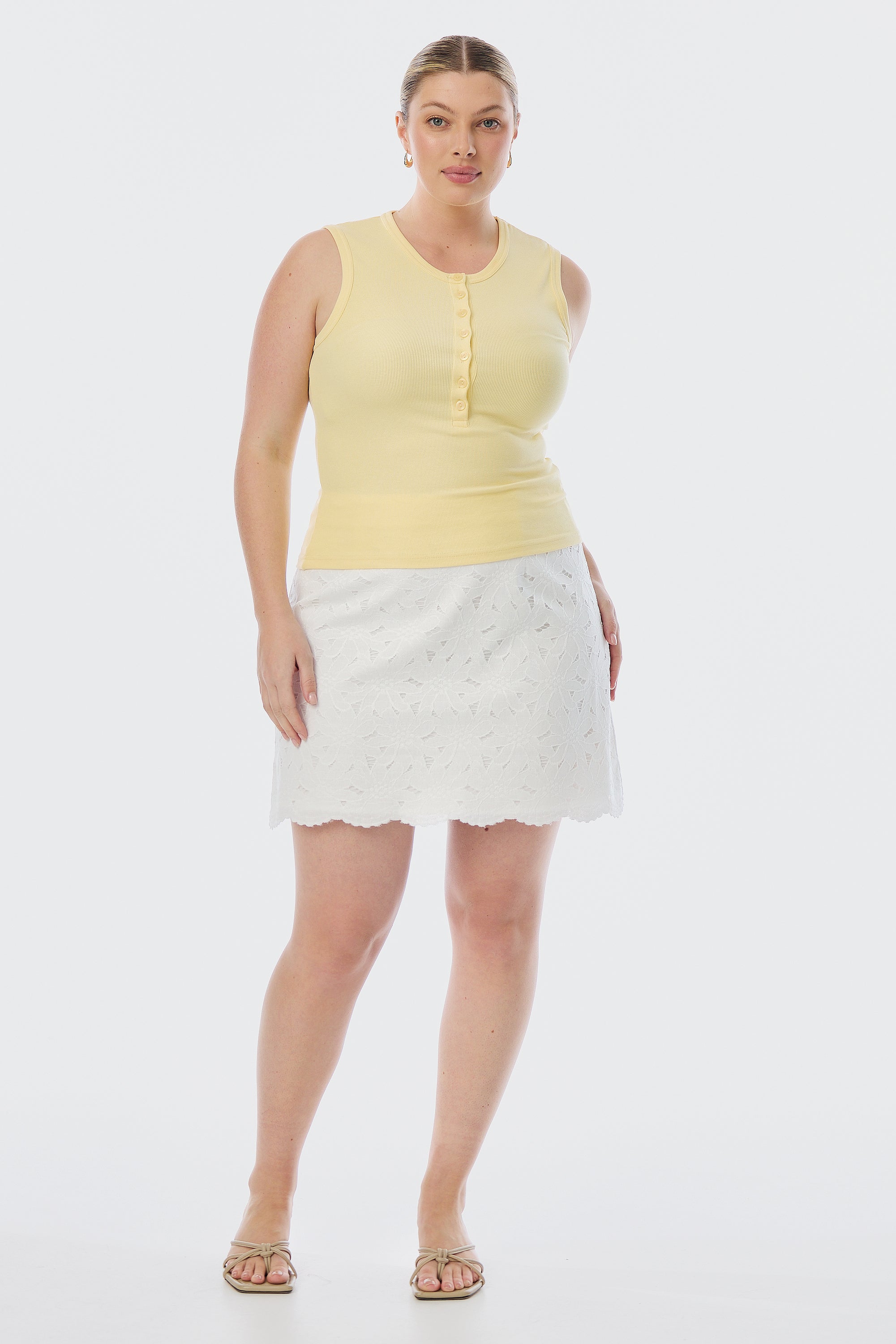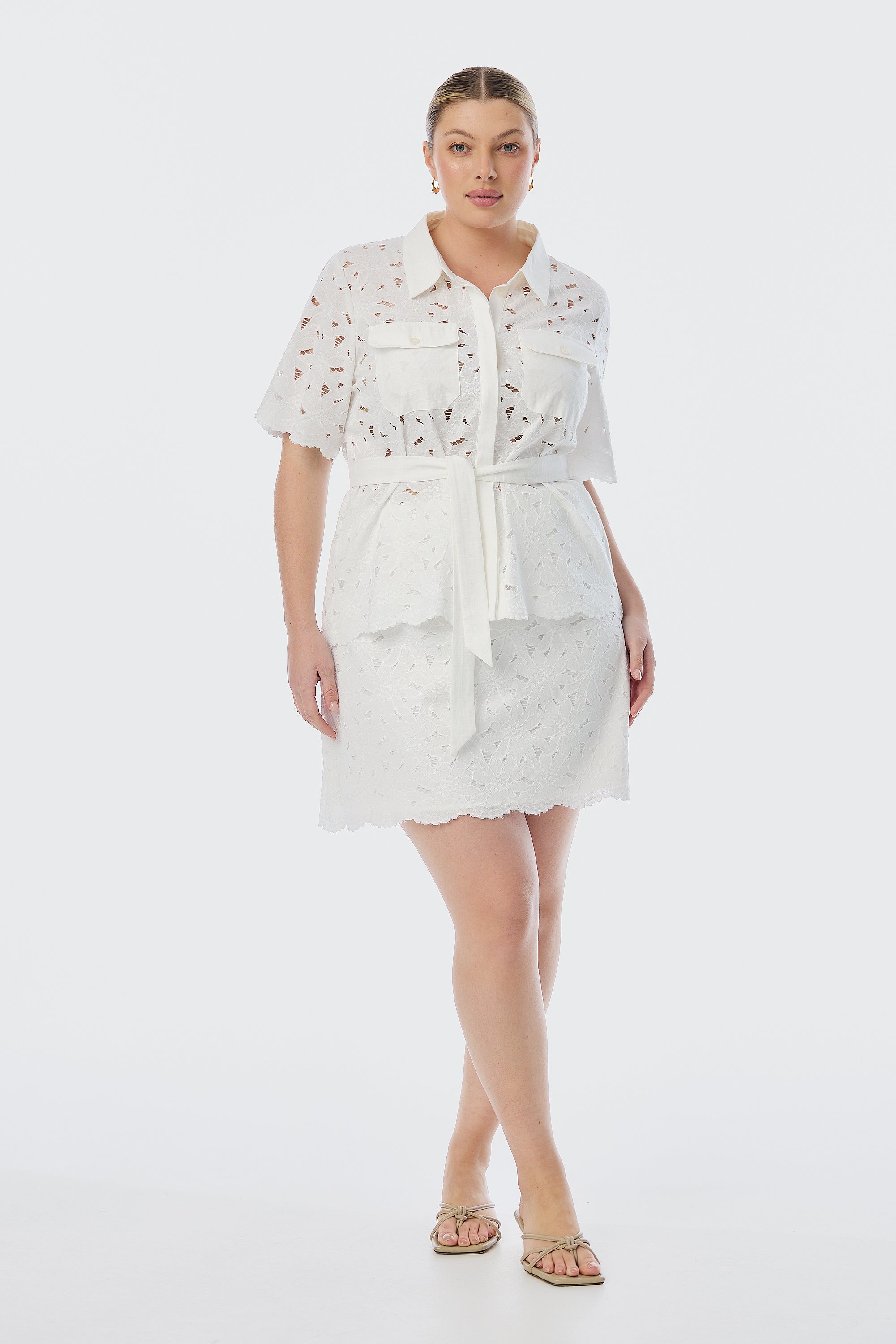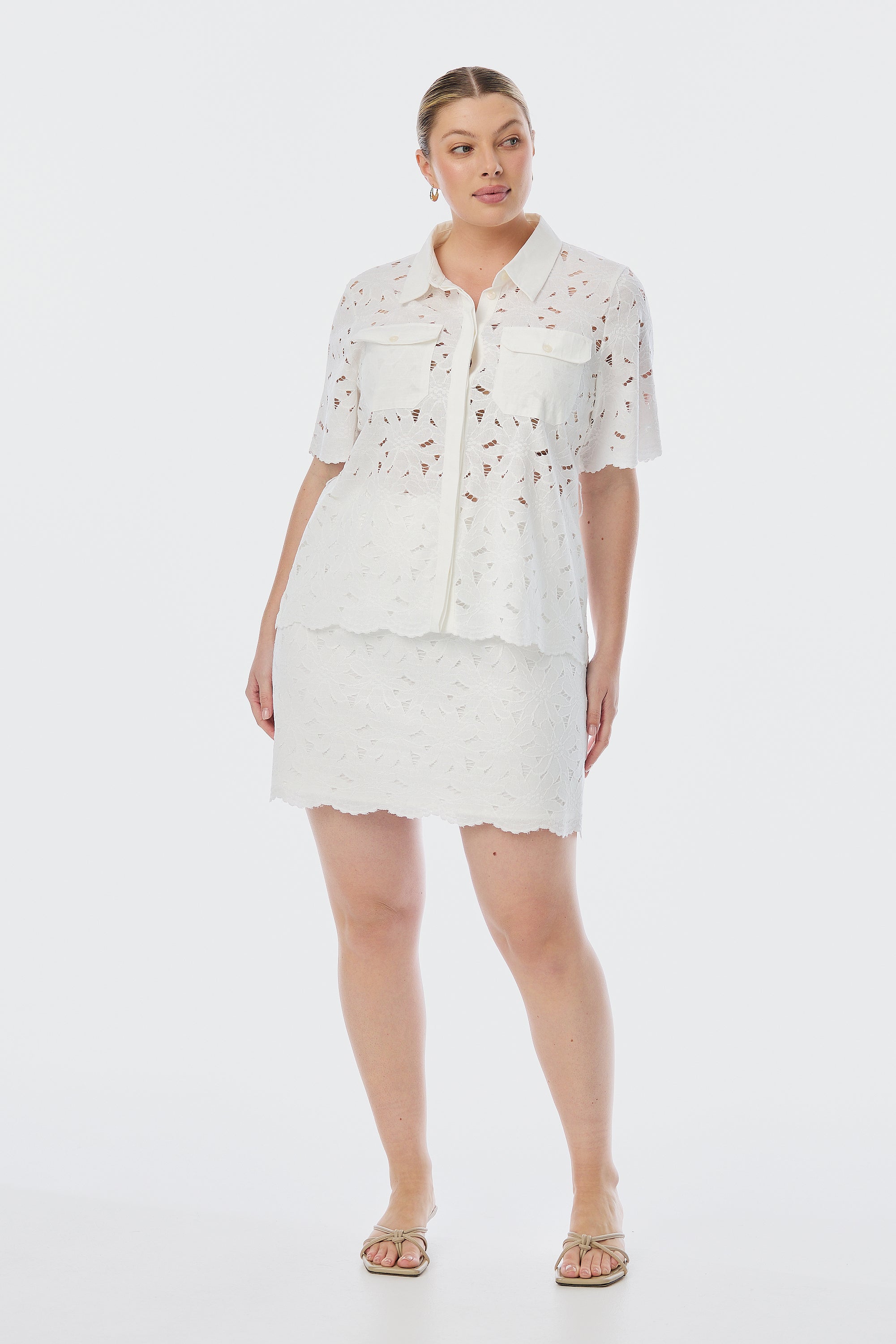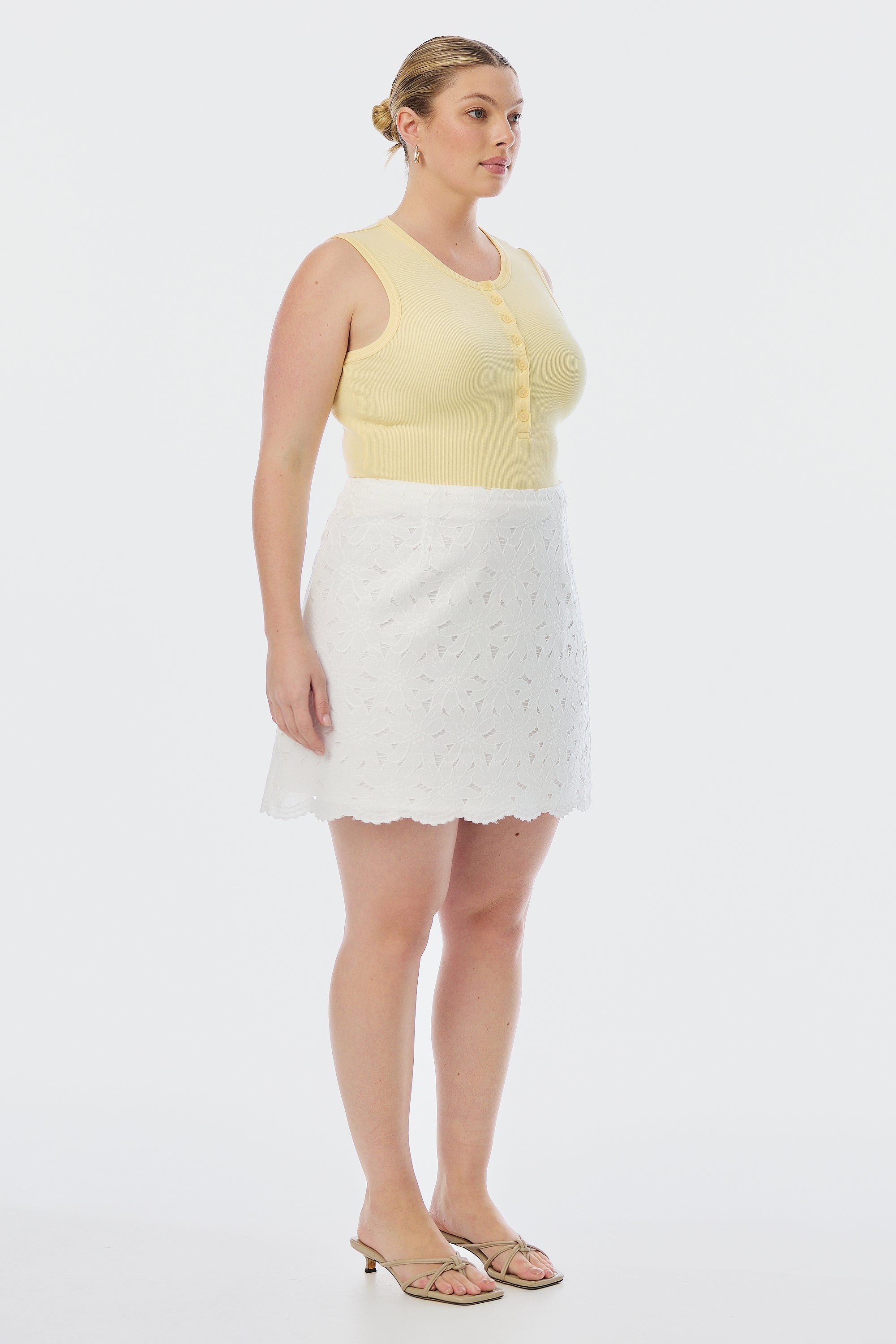 A fresh take on a classic silhouette. The Broderie Anglaise Mini Skirt in White sits at the waist and features a flattering A-line shape with a mini length. Finished with a side seam invisible zip for a clean look, it’s fully lined for comfort and crafted from mid-weight fabric with contrast detailing.