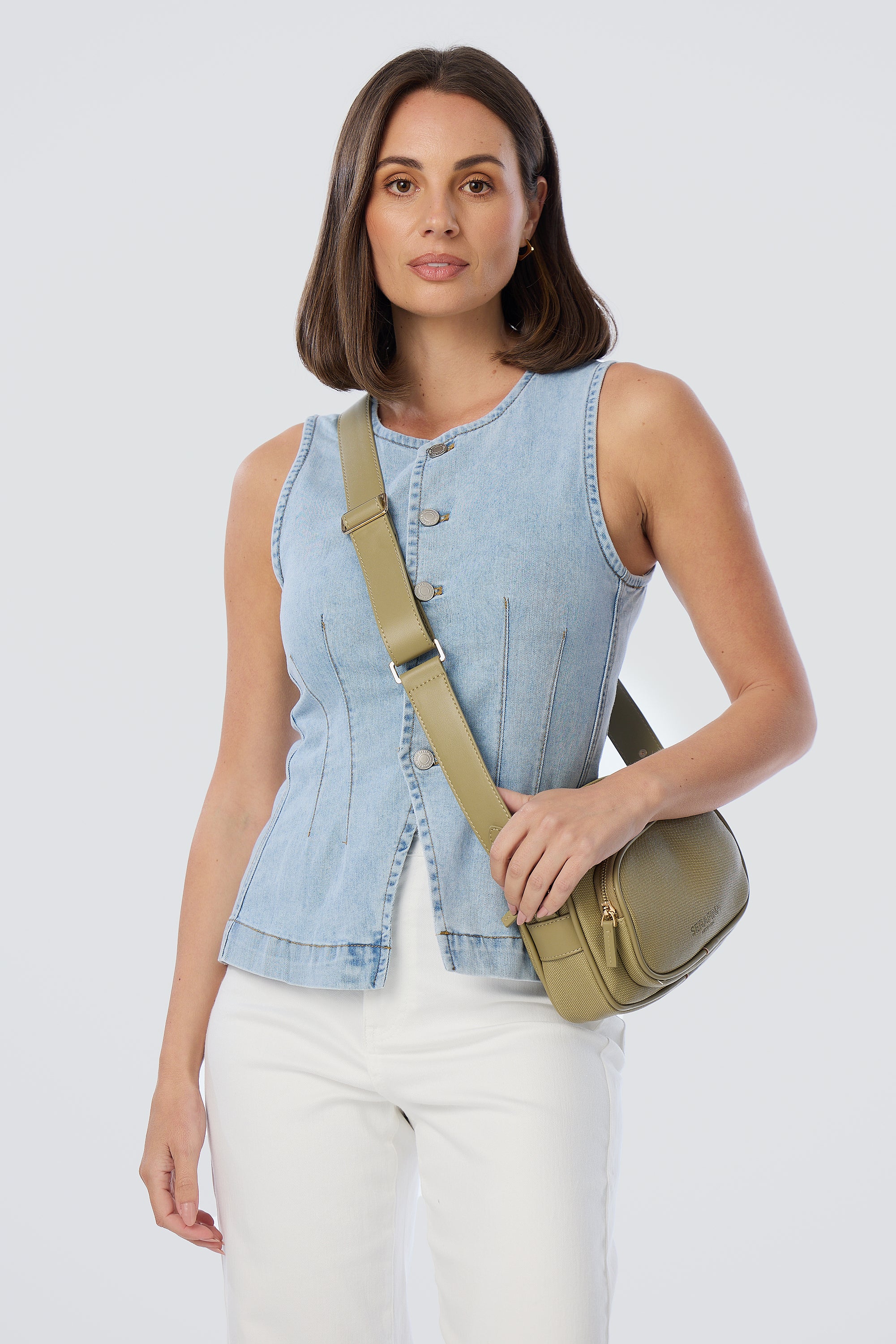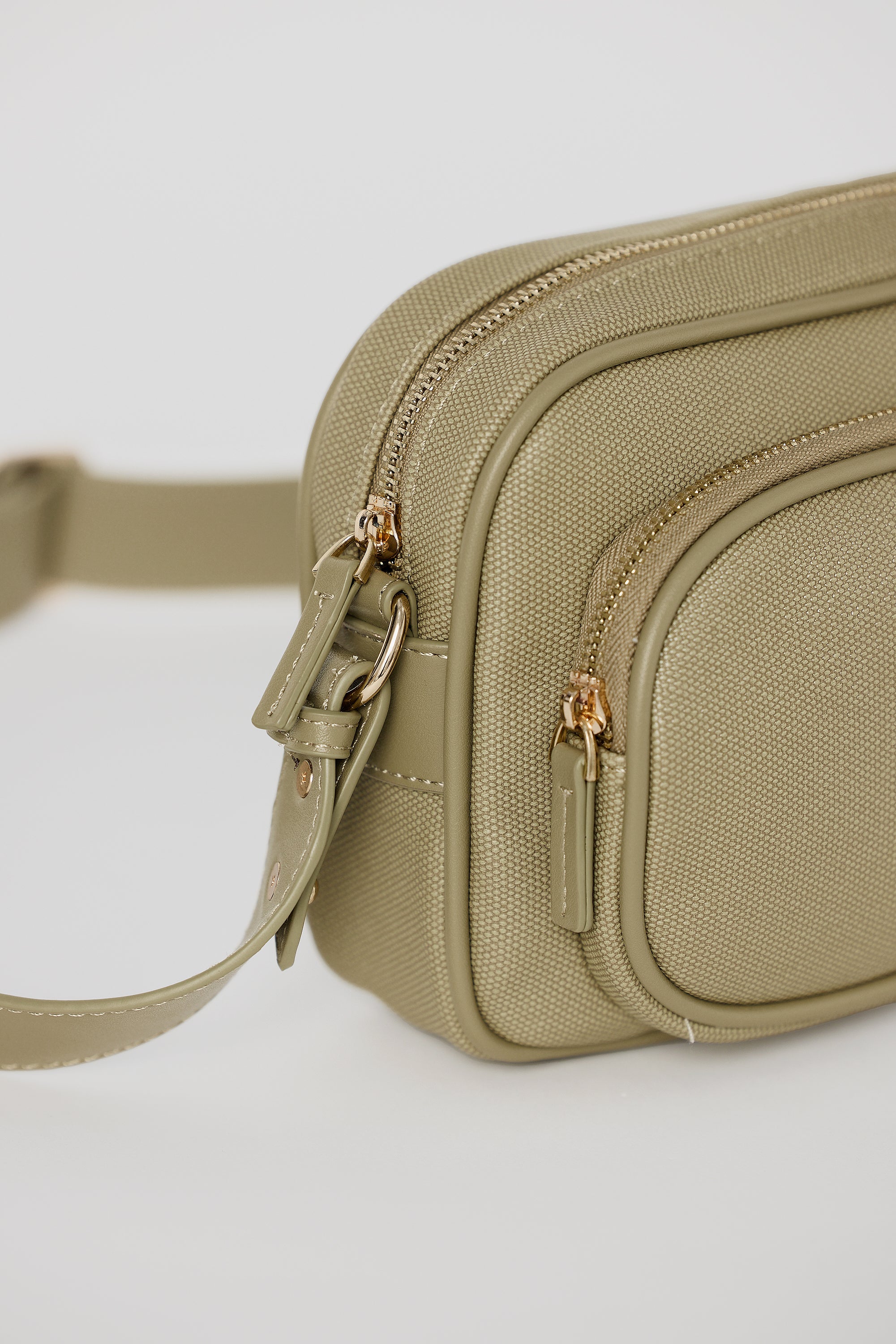 The Crossbody Bag in Olive is effortlessly functional with an adjustable strap for crossbody wear. This crossbody bag features a textured vegan leather body and a handy front pouch, making it the perfect piece to keep your essentials organised from day to night.