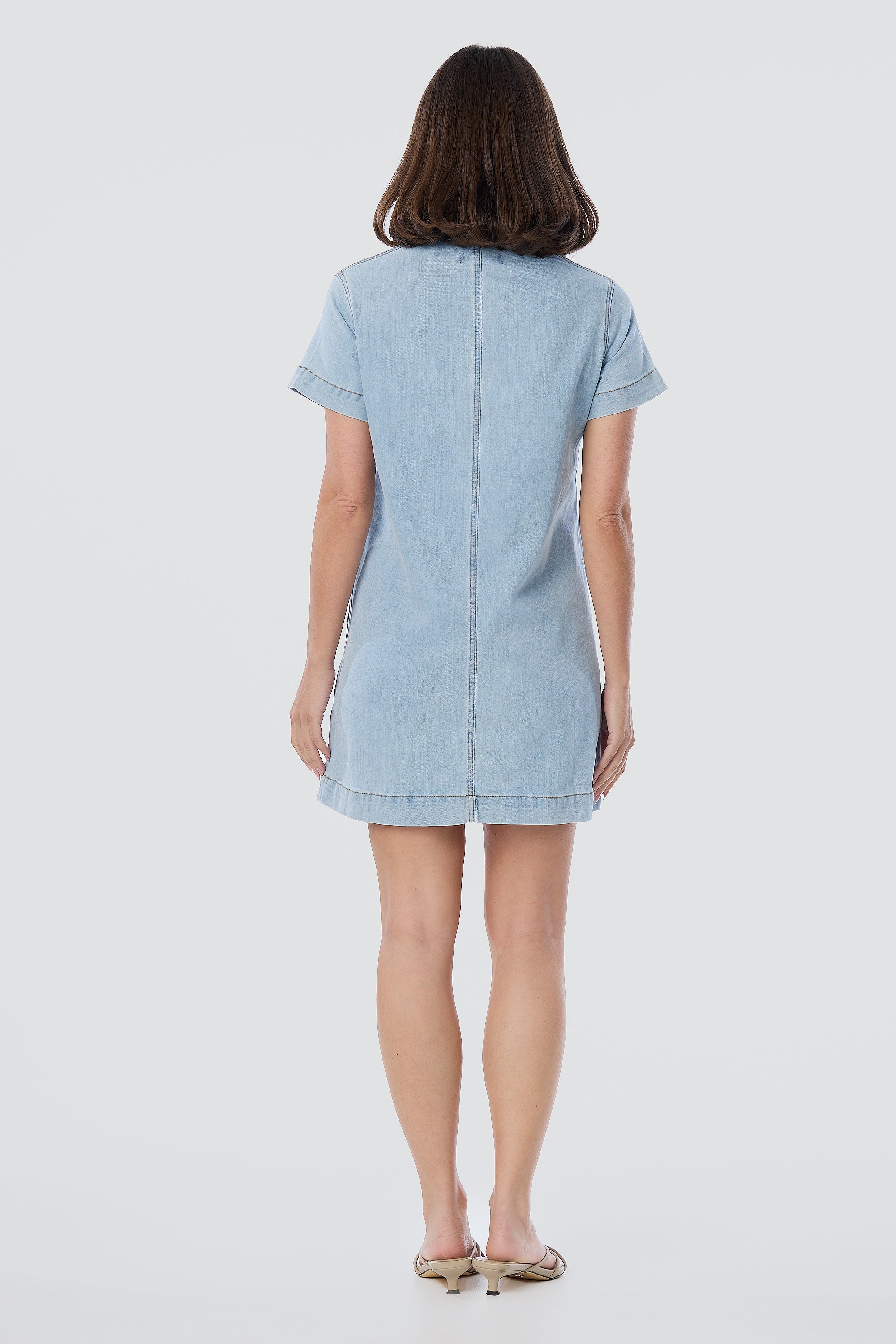 Denim Short Sleeve Mini Dress - Light Blue Wash
