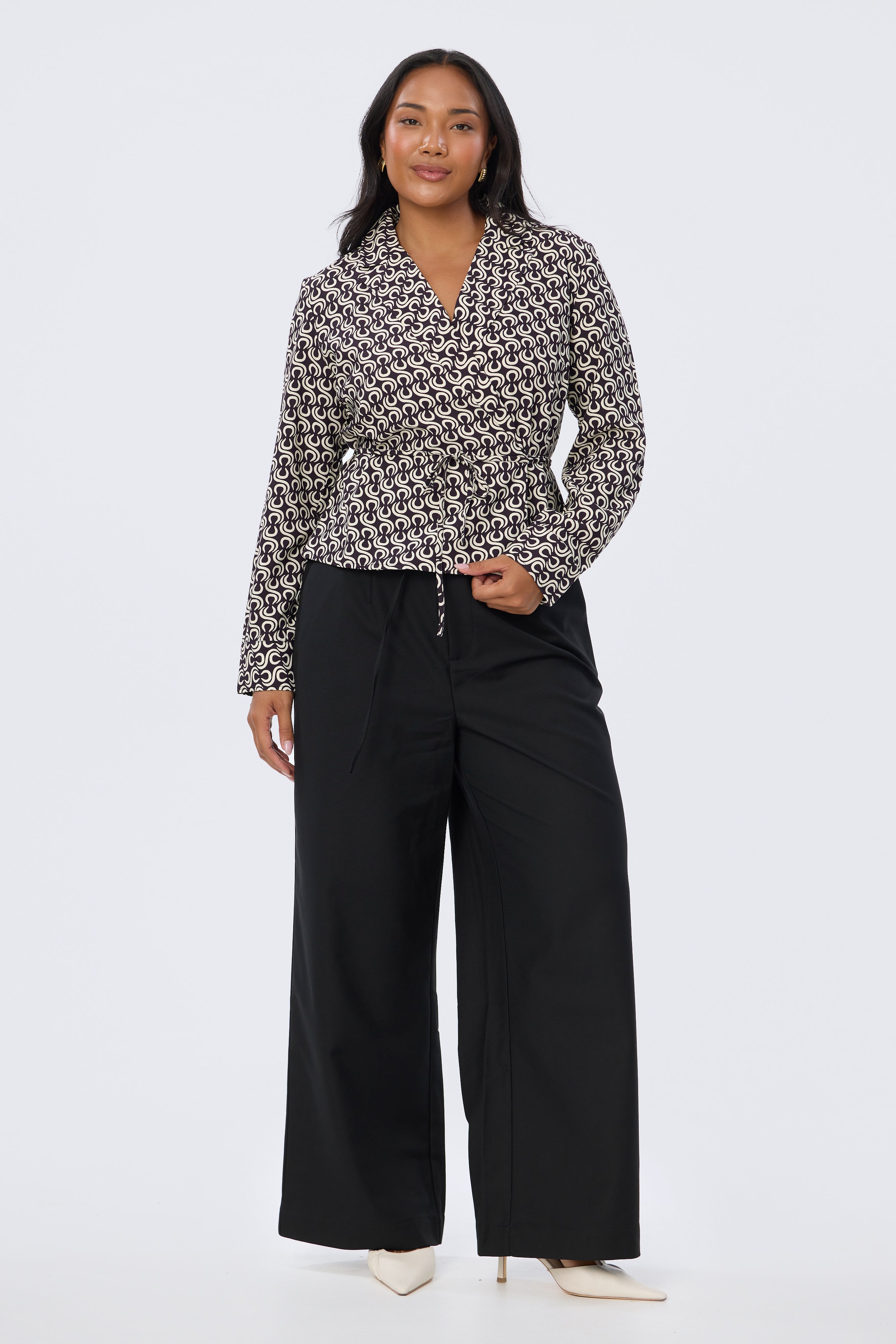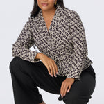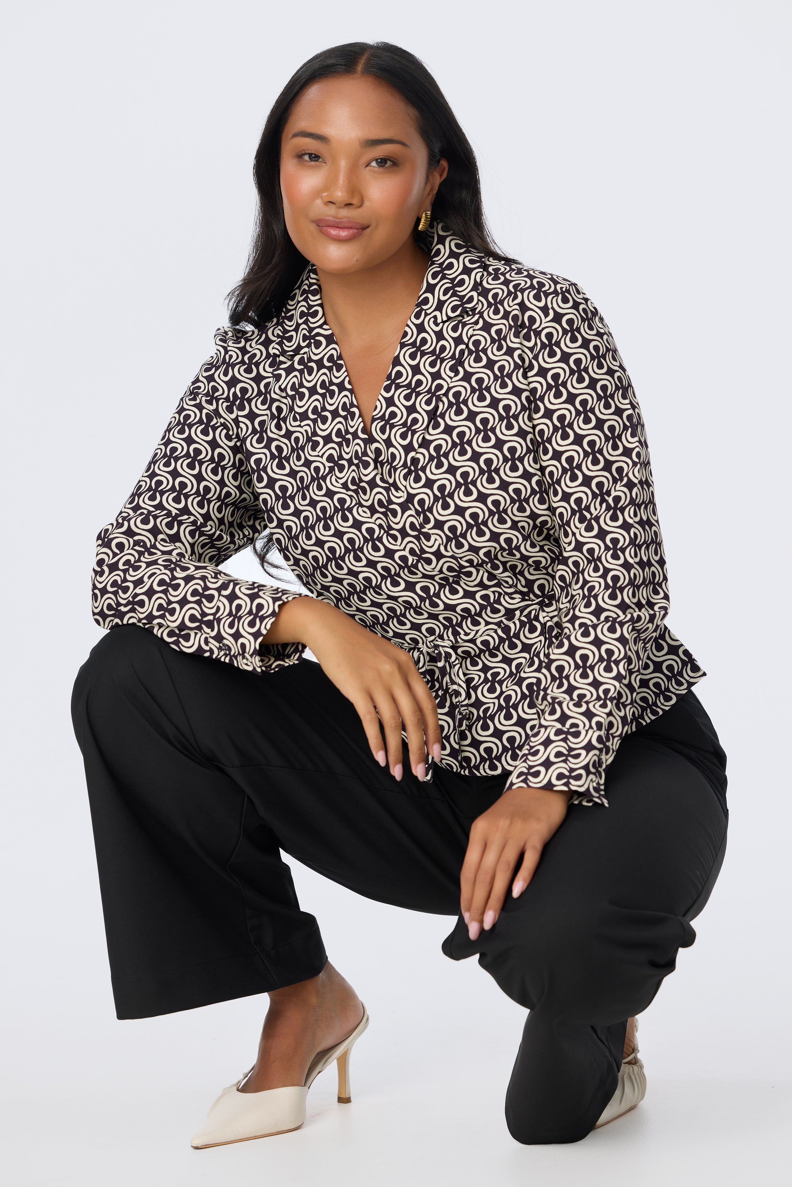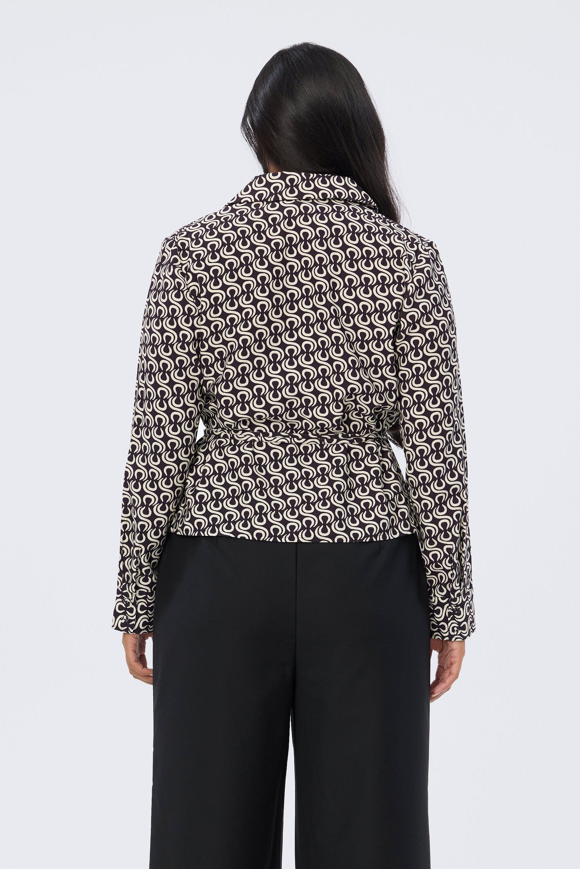 Long Sleeve Wrap Shirt - Aubergine Geo