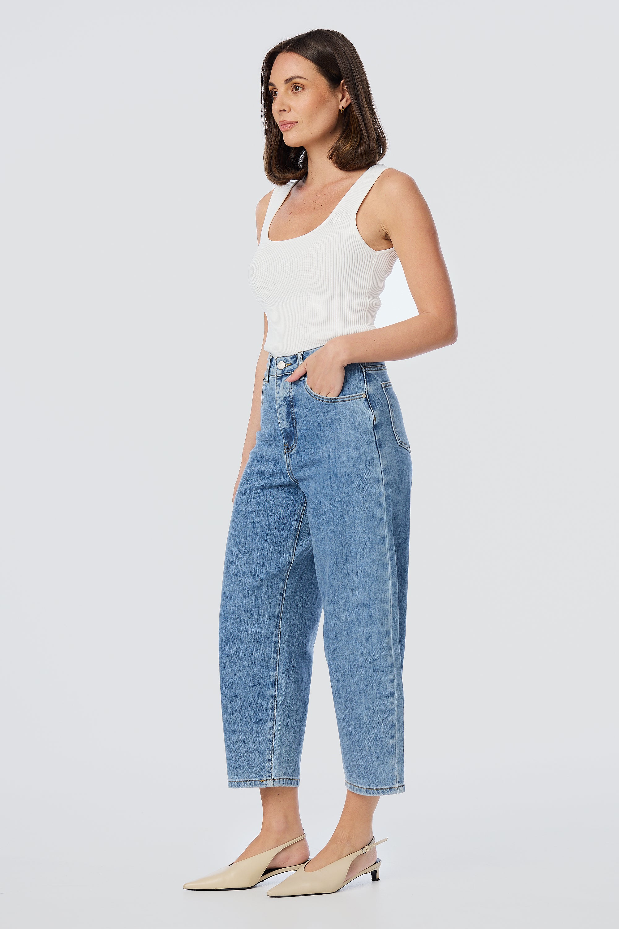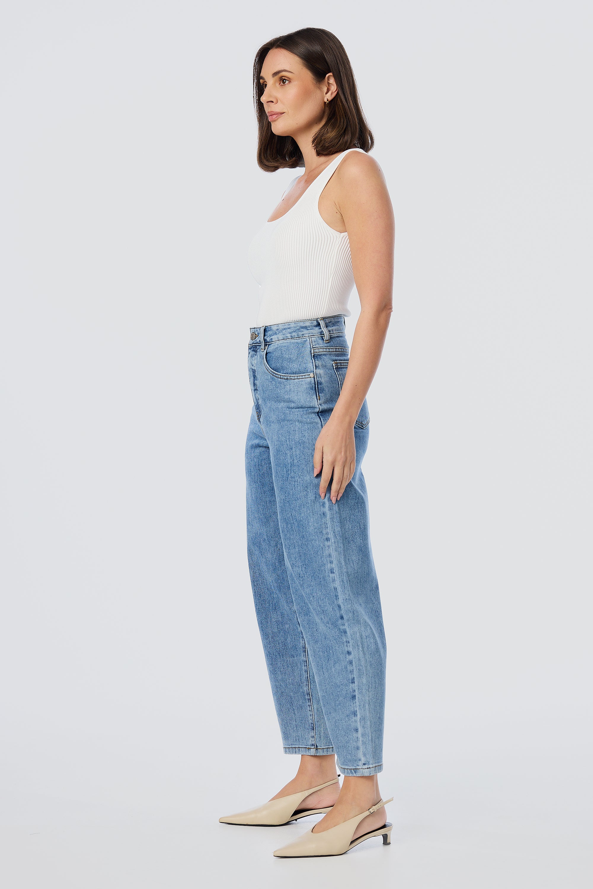 Signature Barrel Leg Jeans - Mid Blue Wash