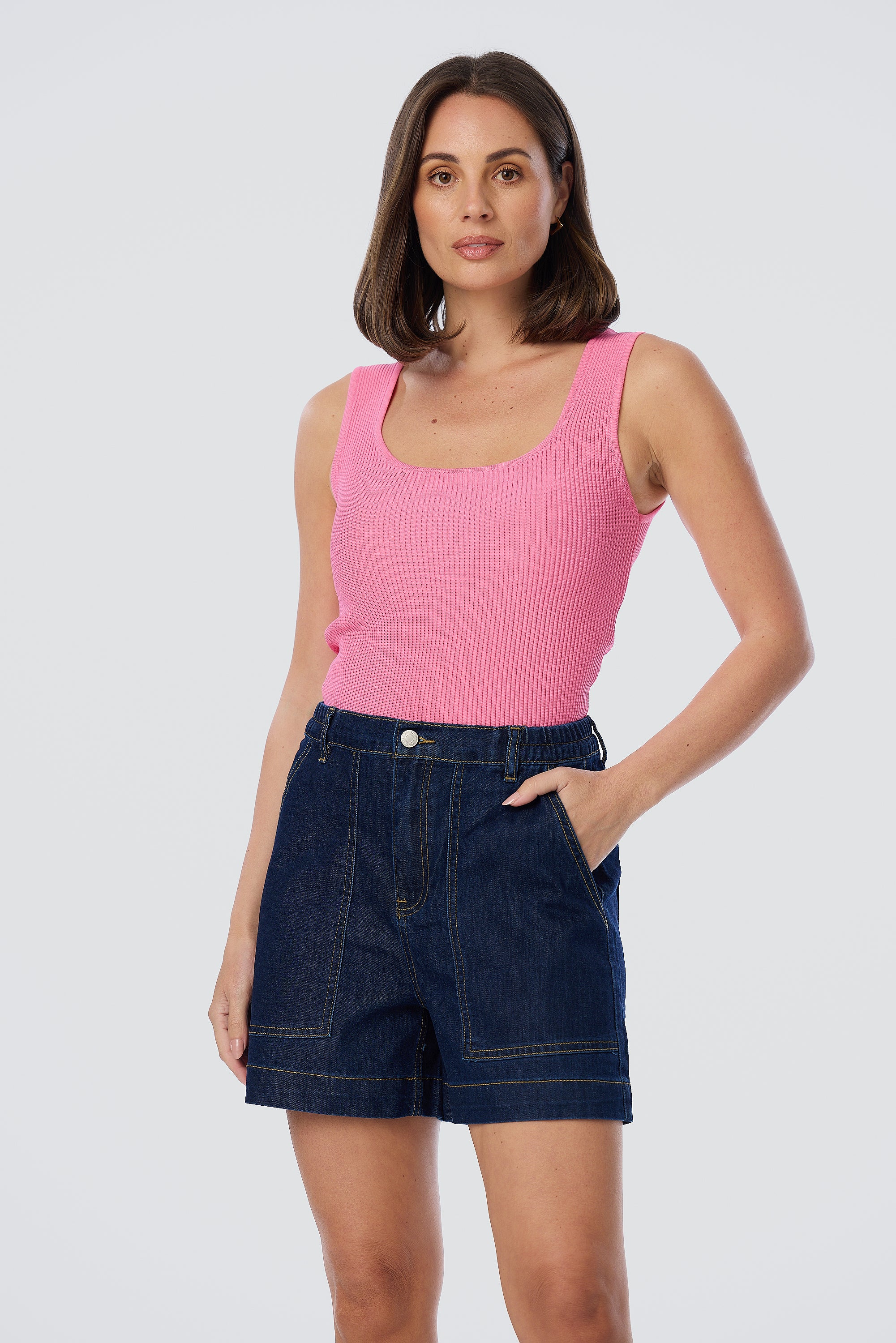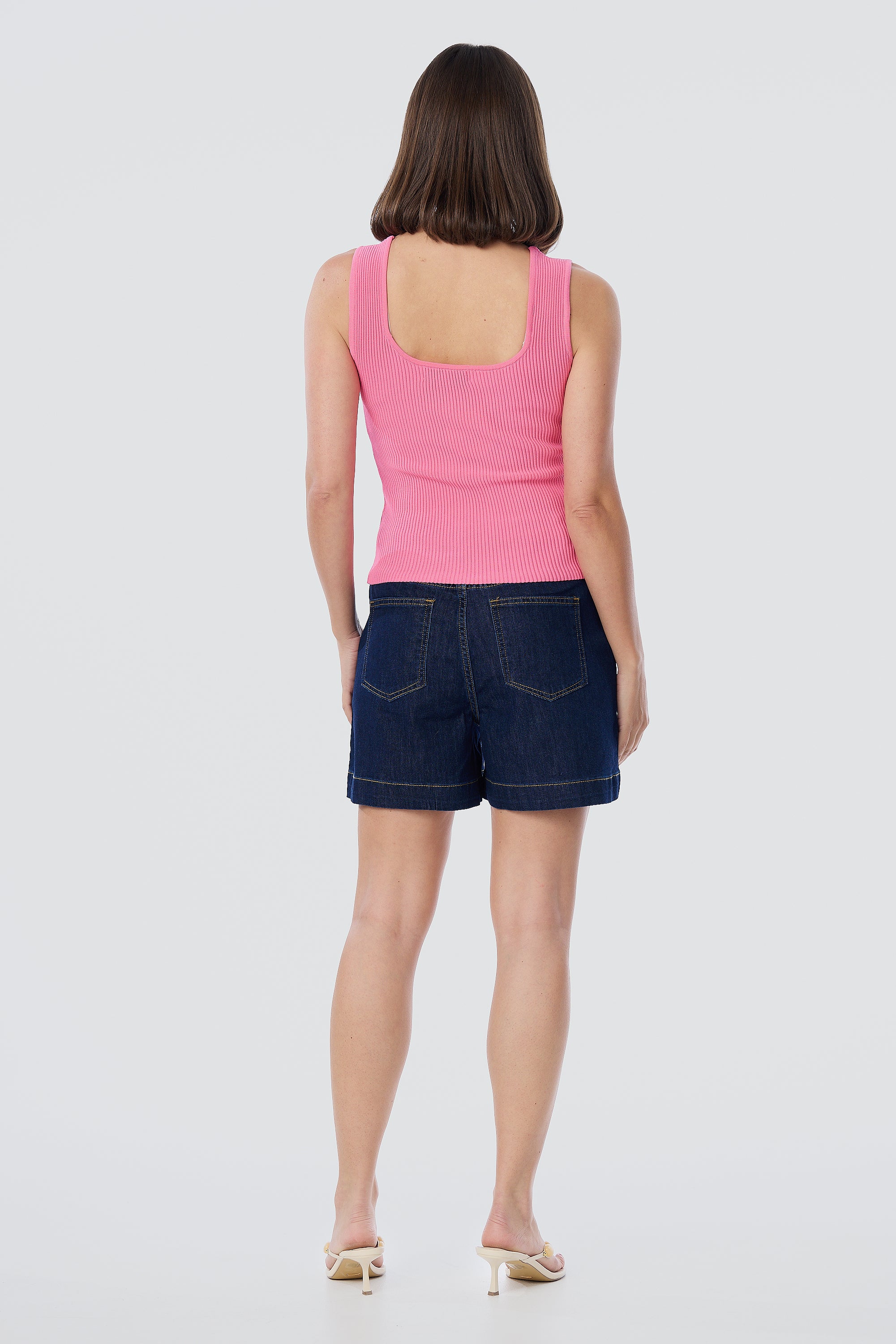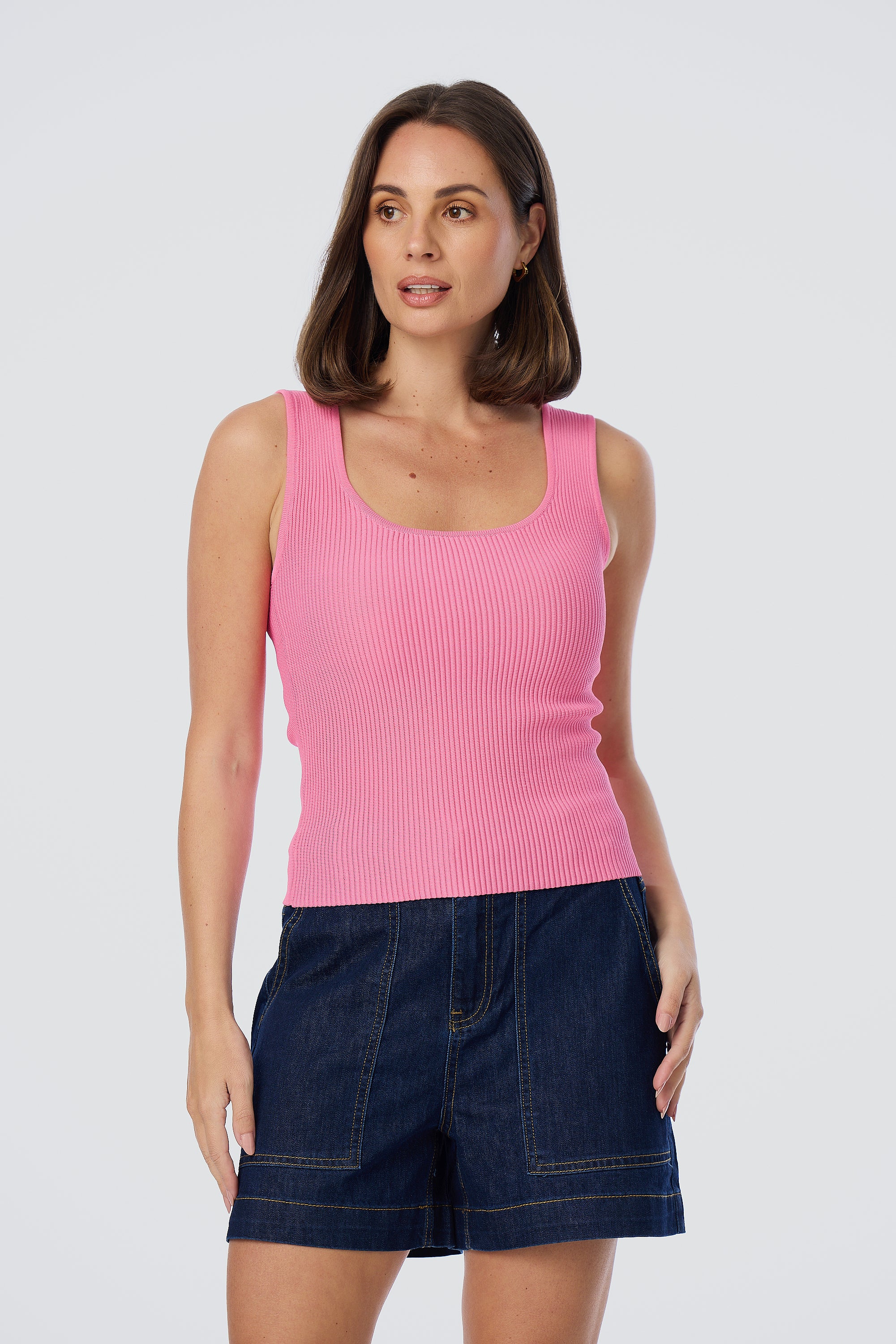 A sleek staple with a flattering neckline. The Square Neck Knit Tank in Musk Pink features a clean square neckline and a fitted silhouette for a modern, streamlined look. Cut to a mid length in a mid-weight rib knit, it offers both structure and stretch for all-day comfort.
