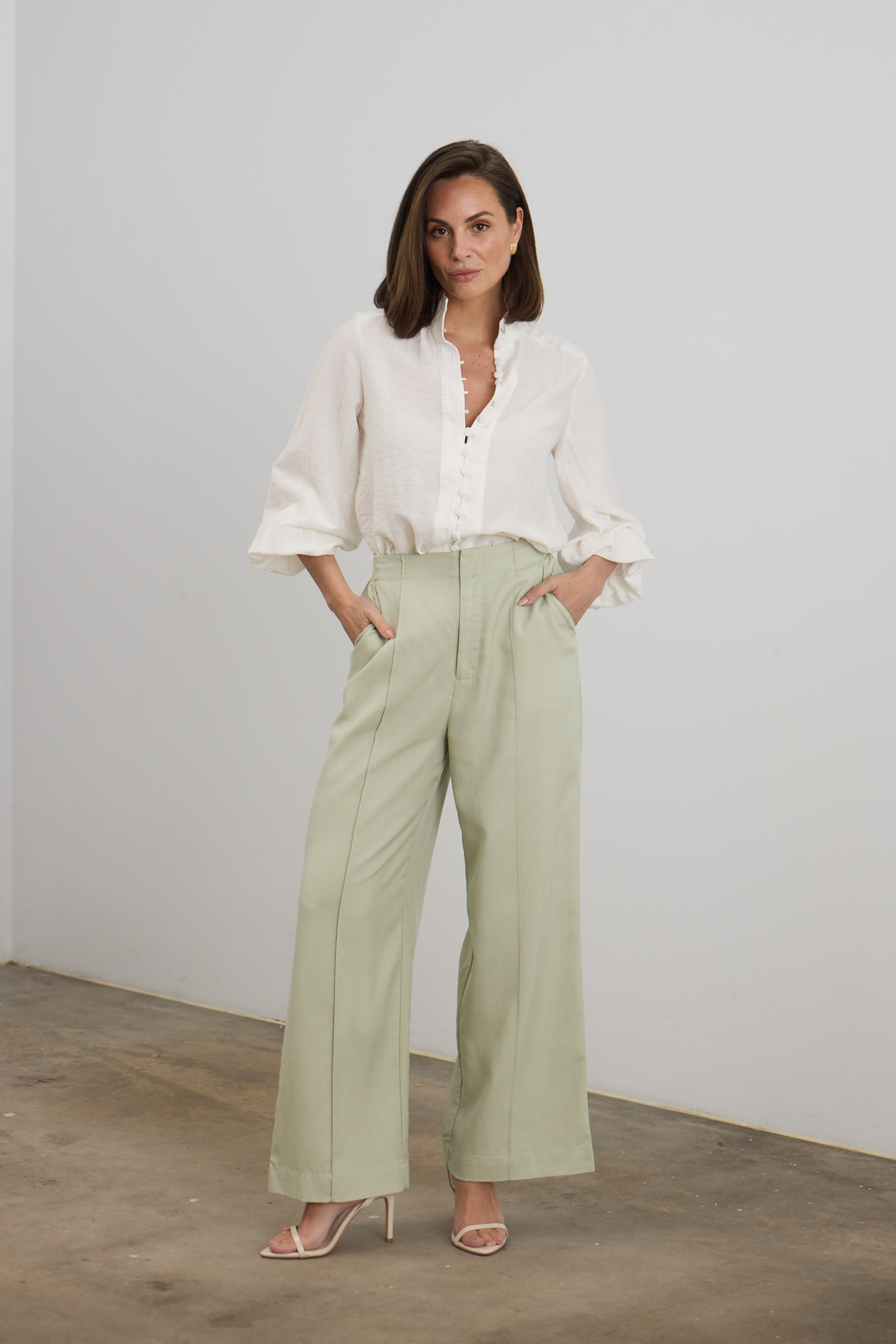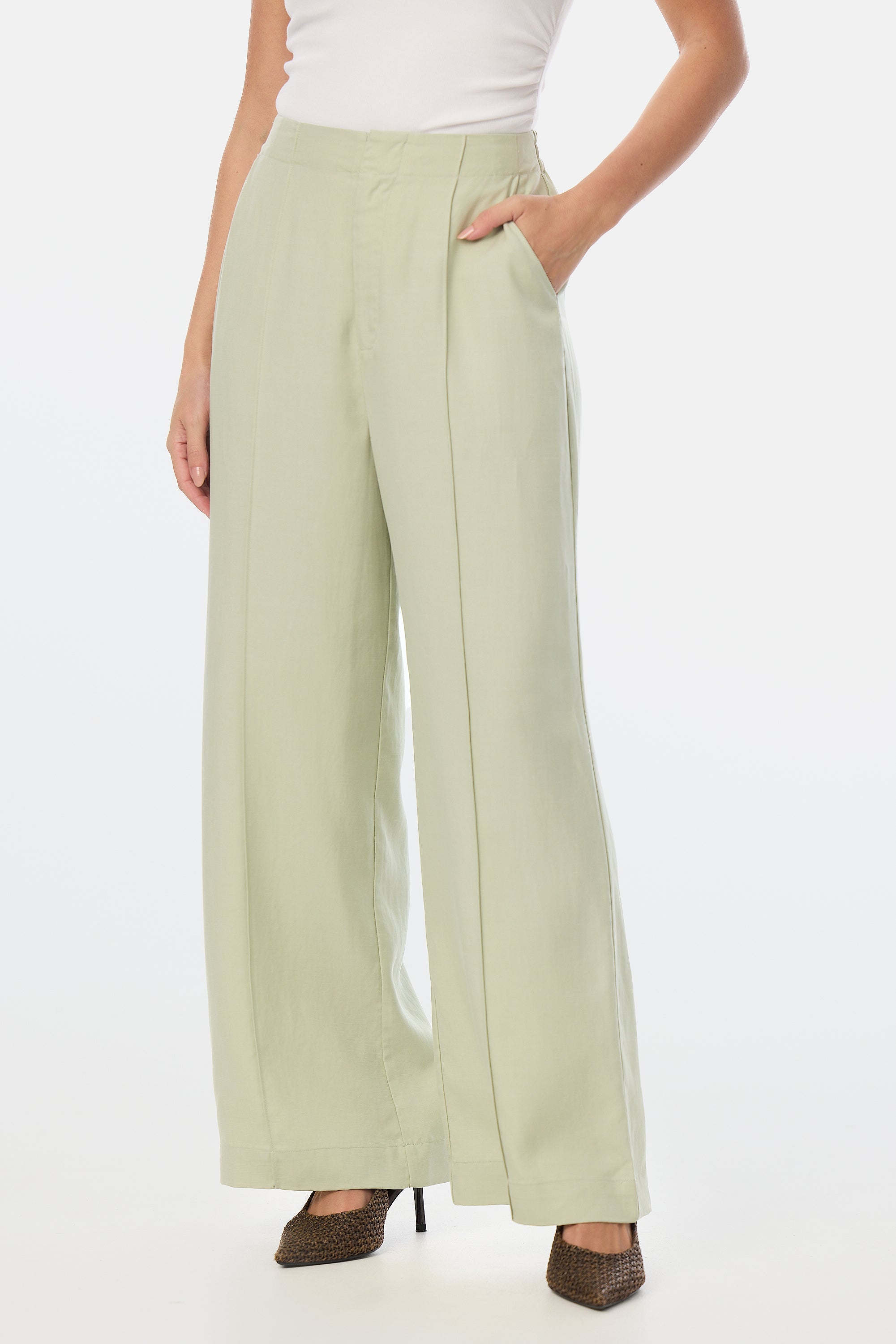 Tailored Pintuck Pants - Pistachio