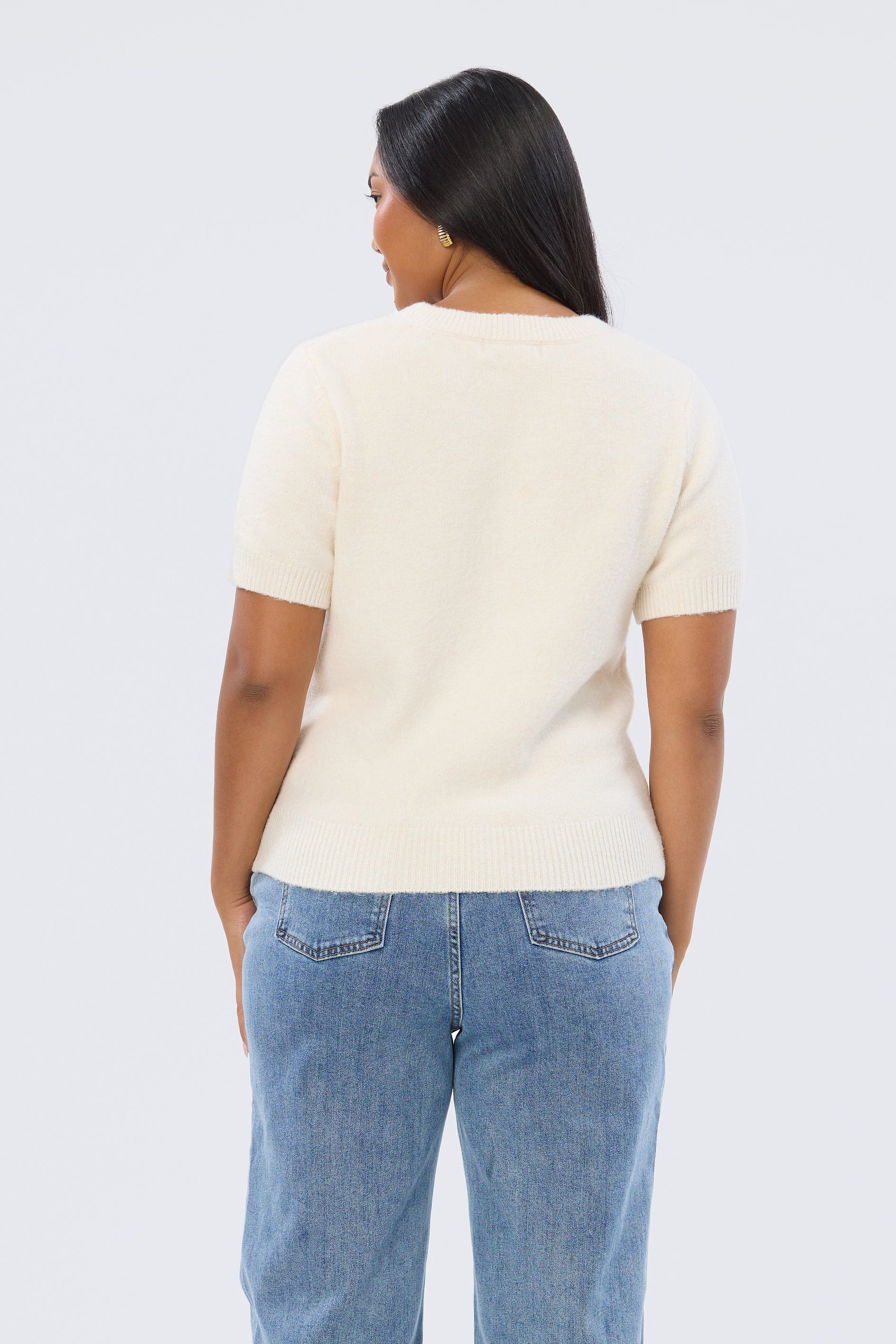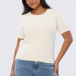 Textured Short Sleeve Knit Top - Ecru