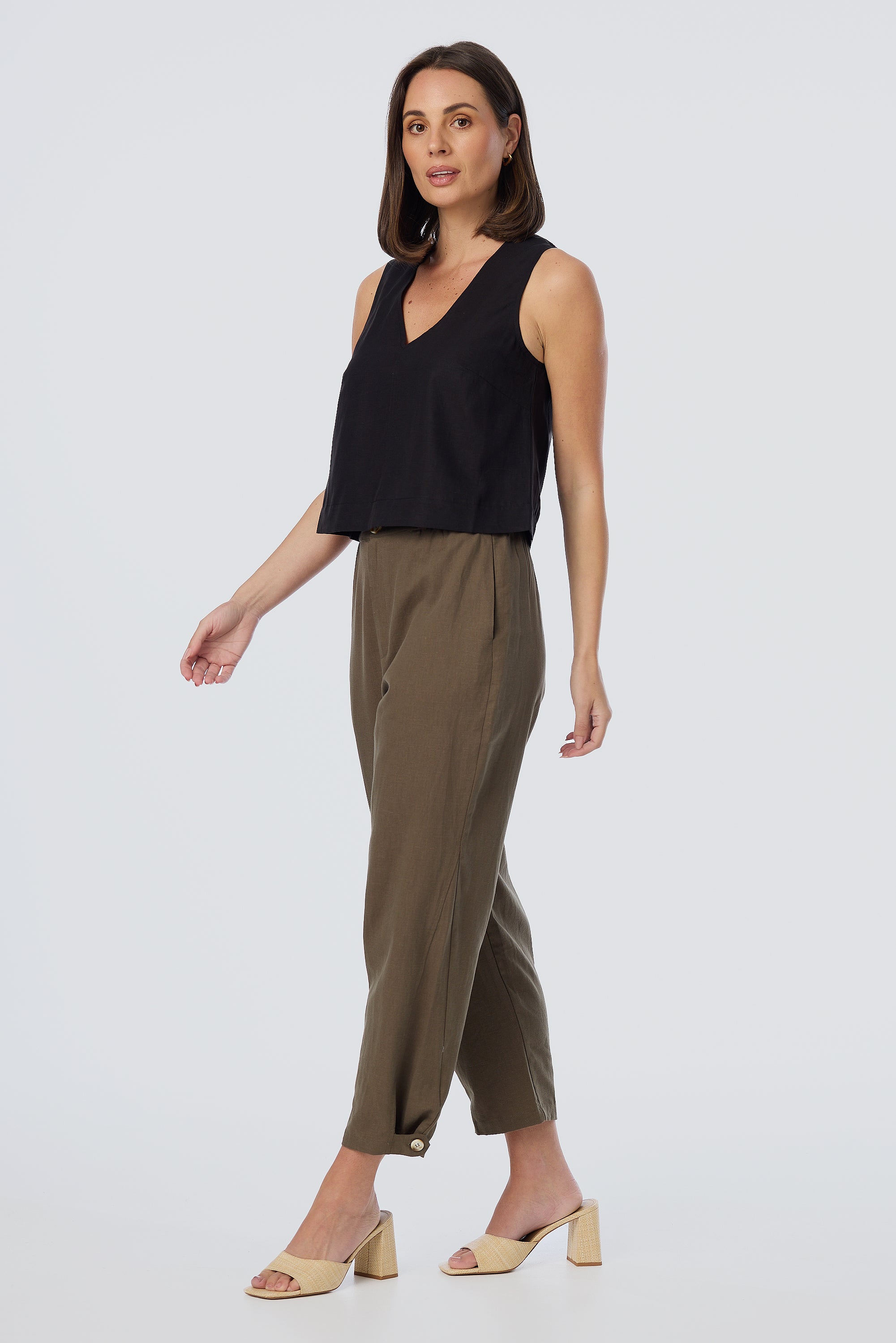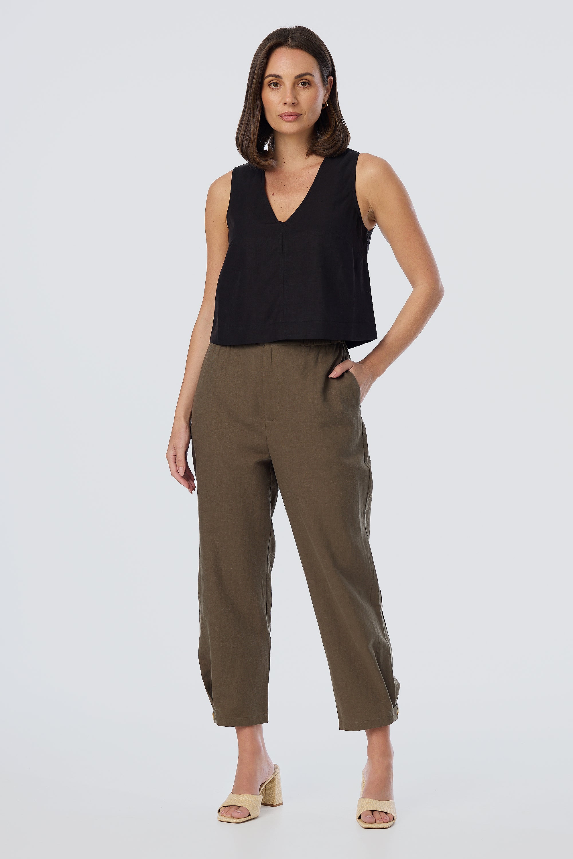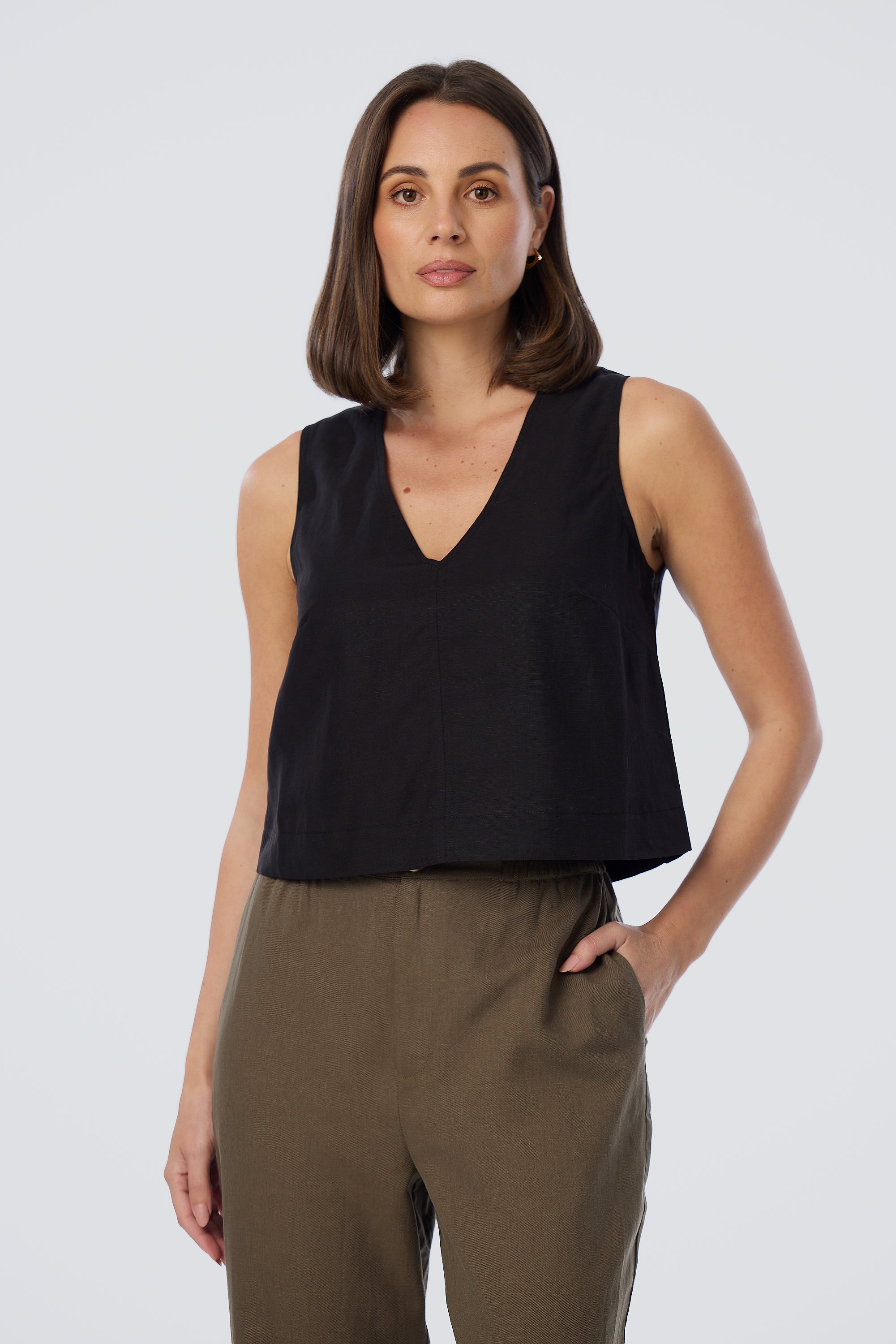 Minimal and modern, the V Neck Topstitched Tank in Black is designed with clean lines and a slightly cropped silhouette. Featuring subtle seam detailing and full lining, it’s an elevated warm-weather essential.