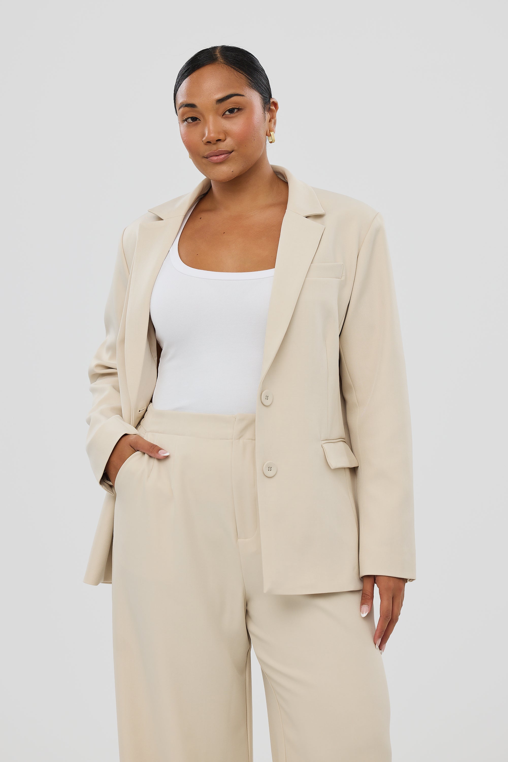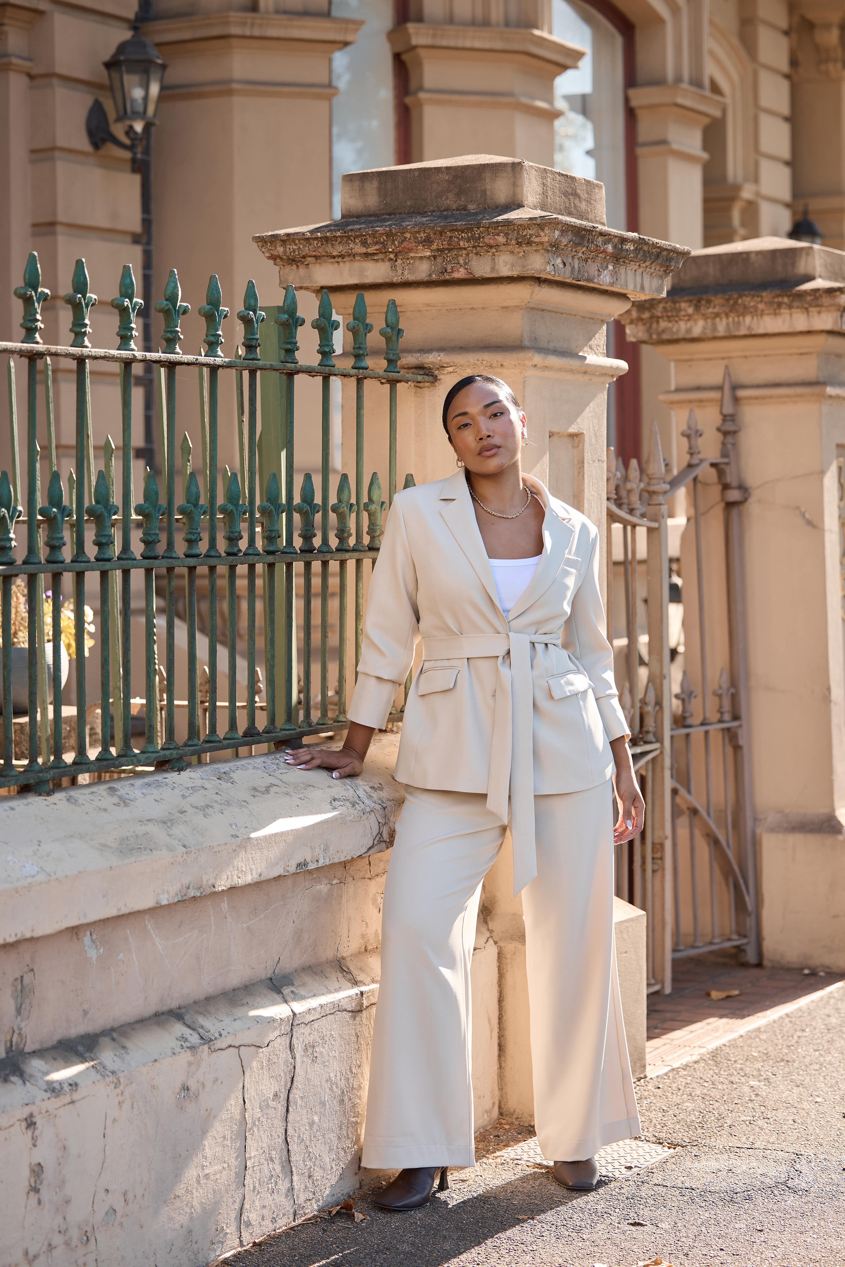 Level up your wardrobe with the Tailored Blazer in Oatmeal, a timeless classic with a modern edge. The detachable self-fabric belt lets you customise your look, cinching the waist for added definition or wearing it loose for a relaxed feel. Pair it with the matching tailored pants or dress it down with your favourite jeans.