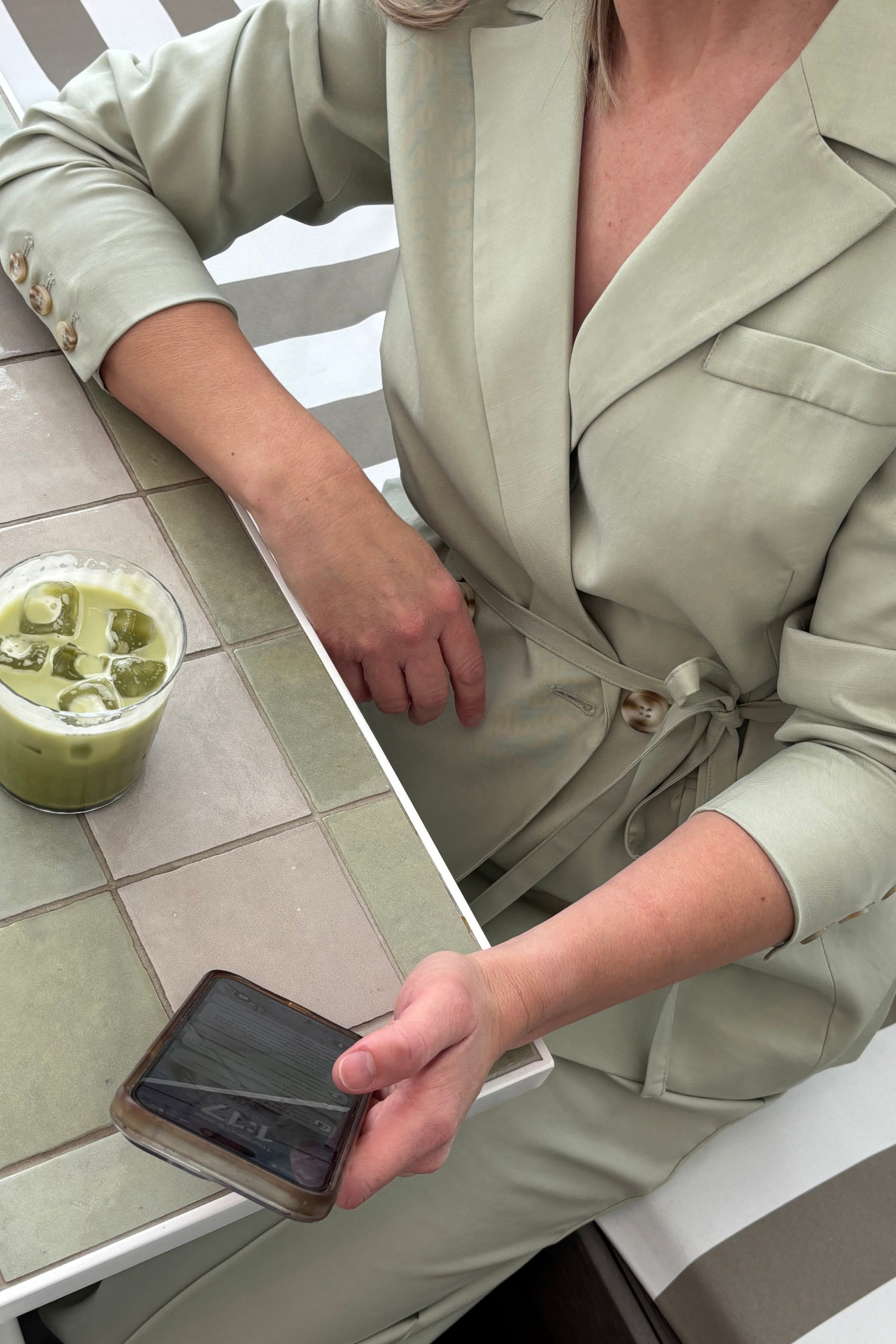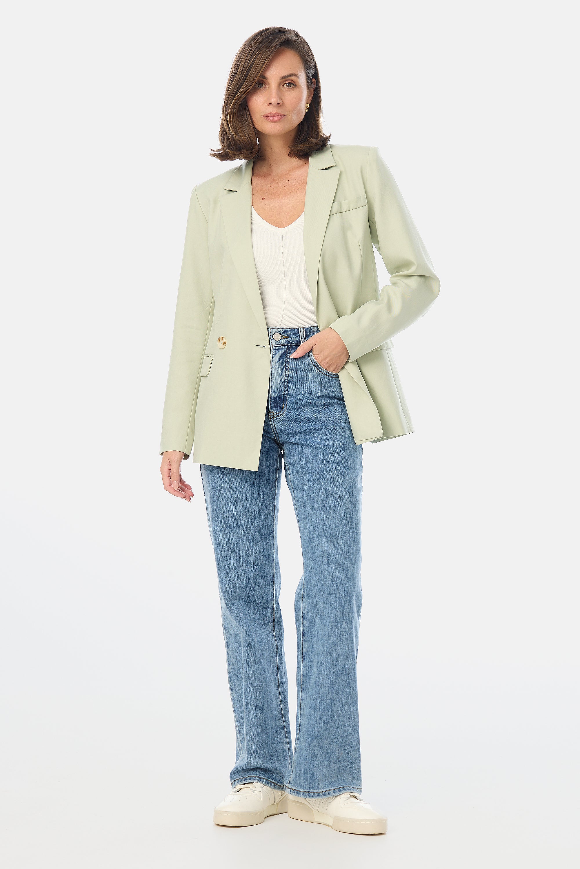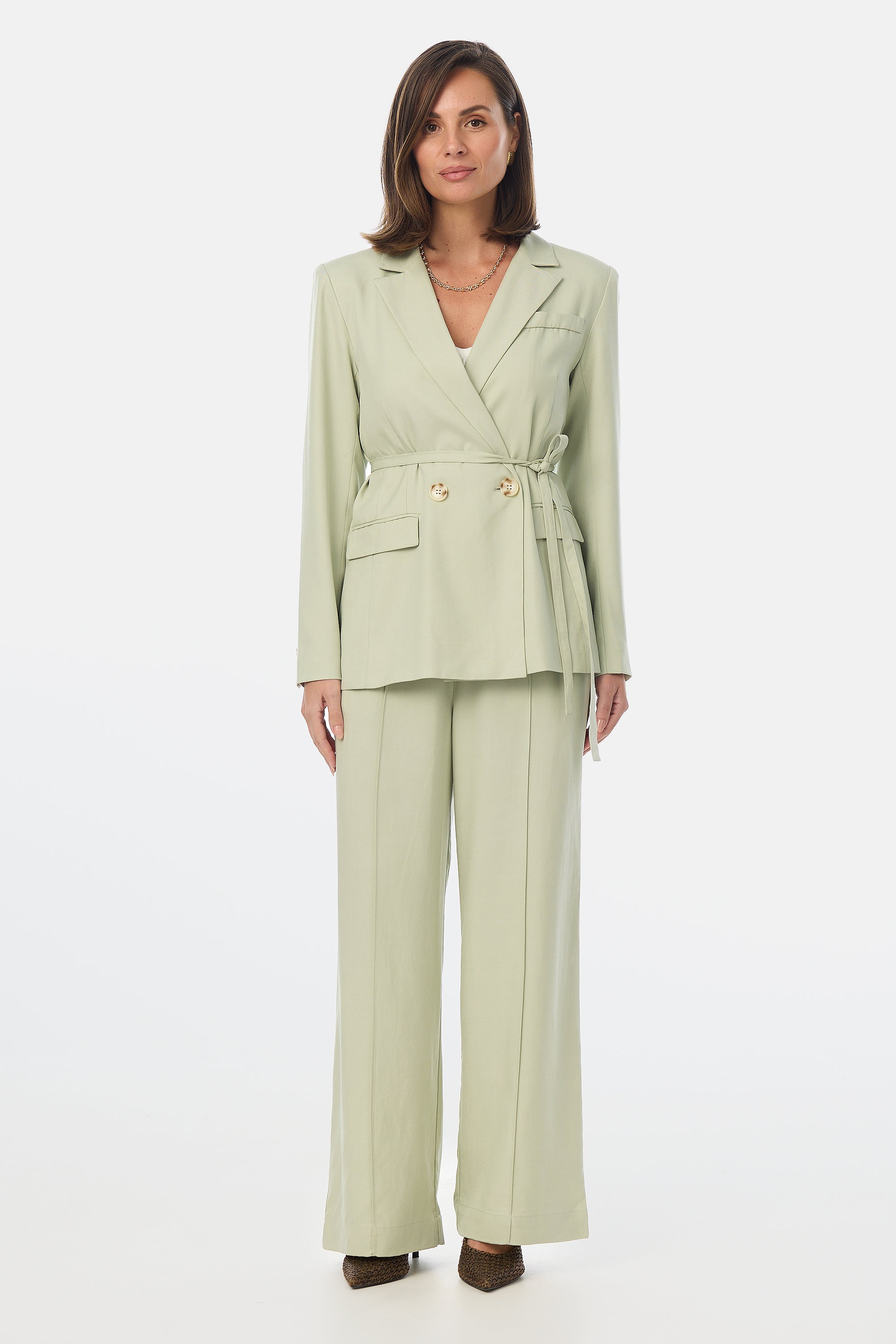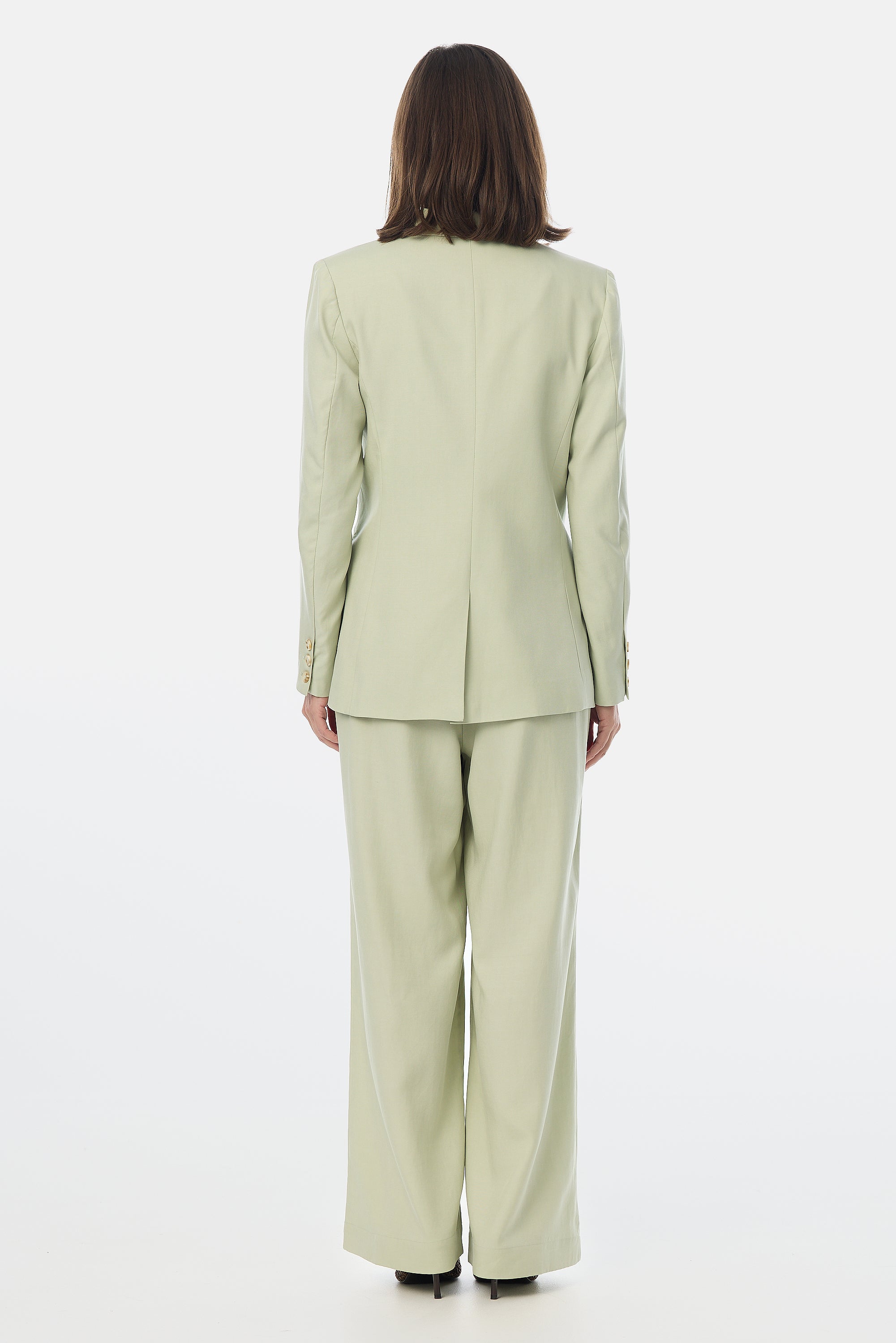 A fresh perspective on tailoring, the Tailored Double Breasted Blazer in Pistachio is your go-to for sleek layering. With its tailored shape, soft drape, and smart details, it works just as well styled with matching suiting as it does over denim.