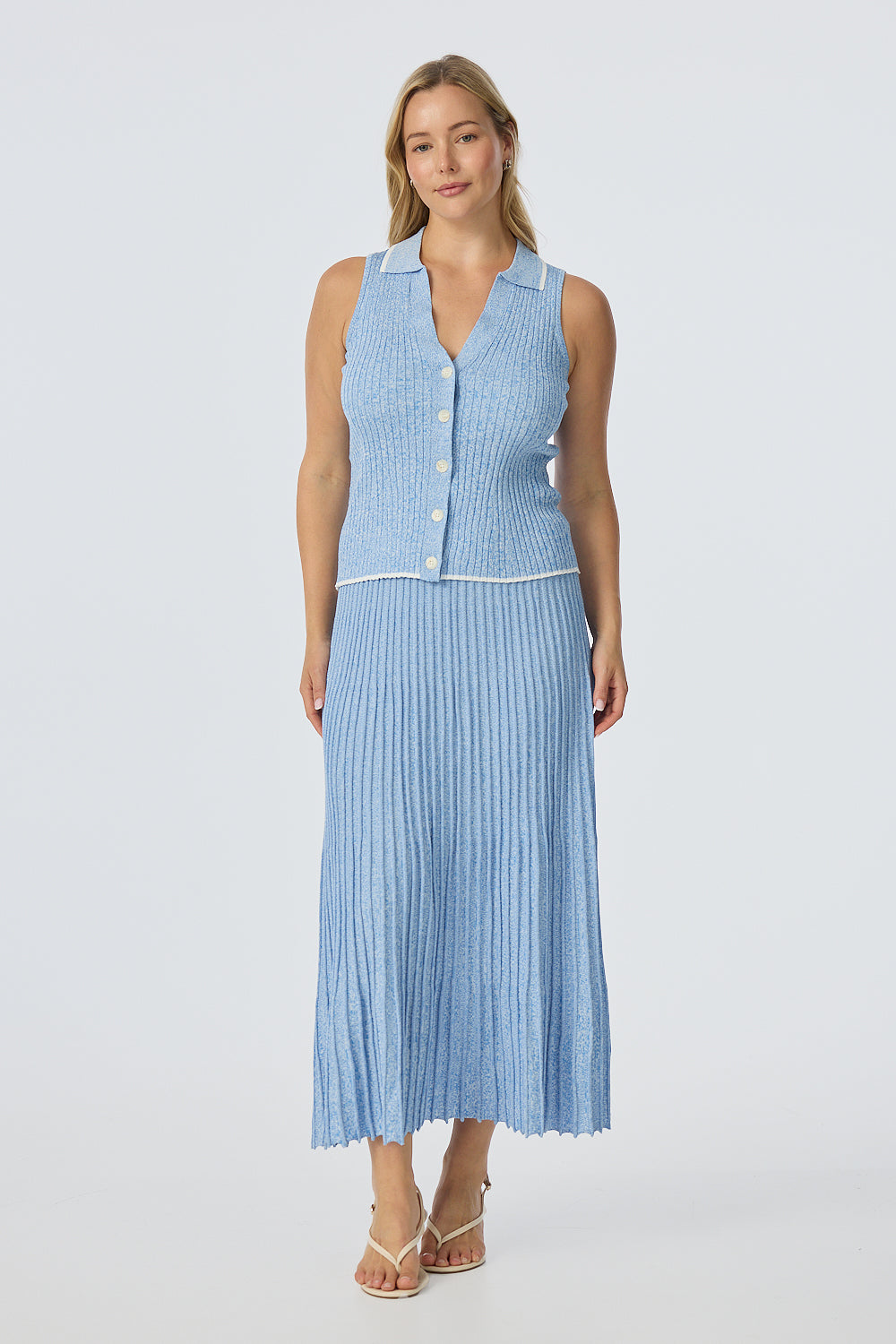 Rib Knit Skirt - Azure Blue Marl (Pre Order)