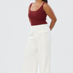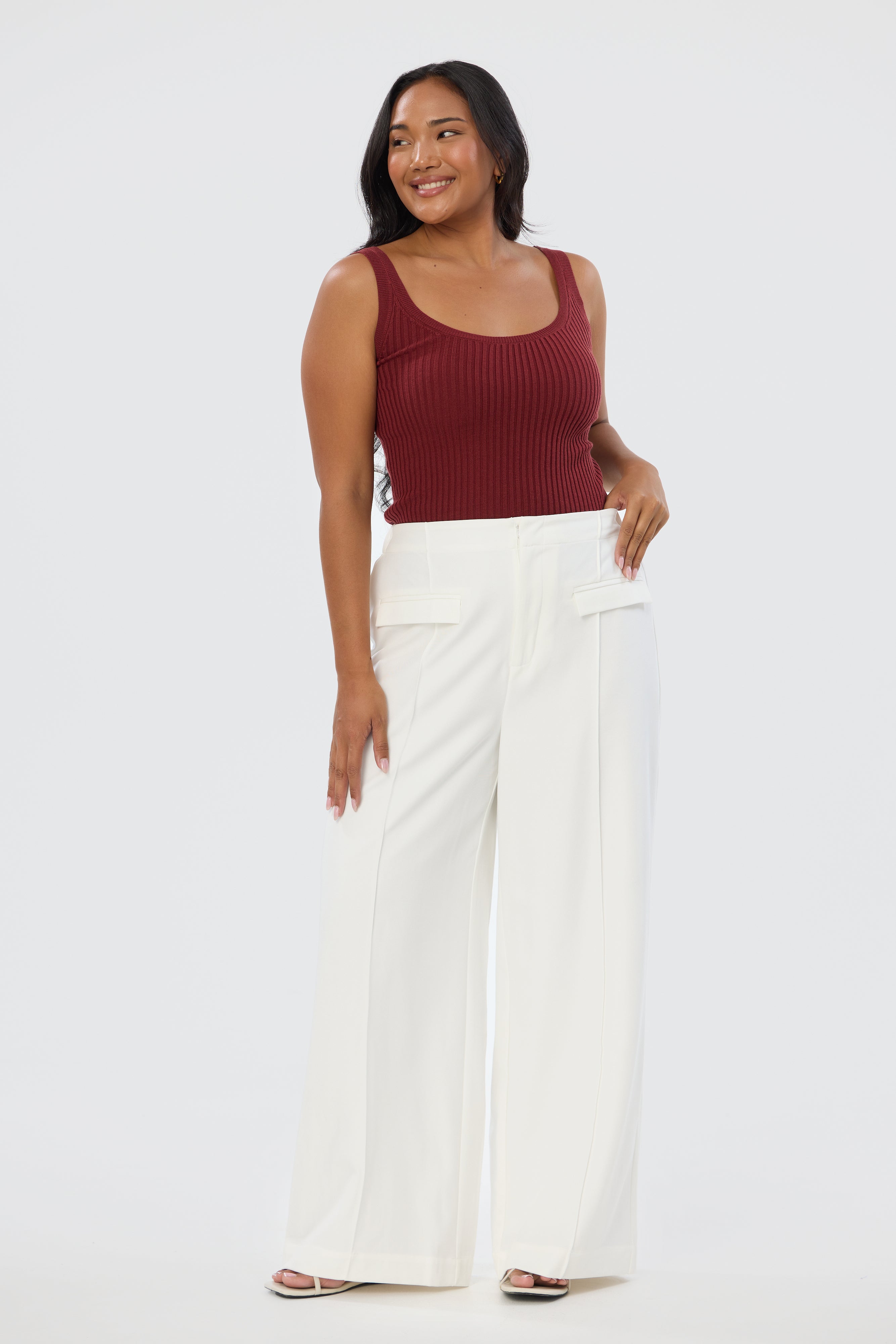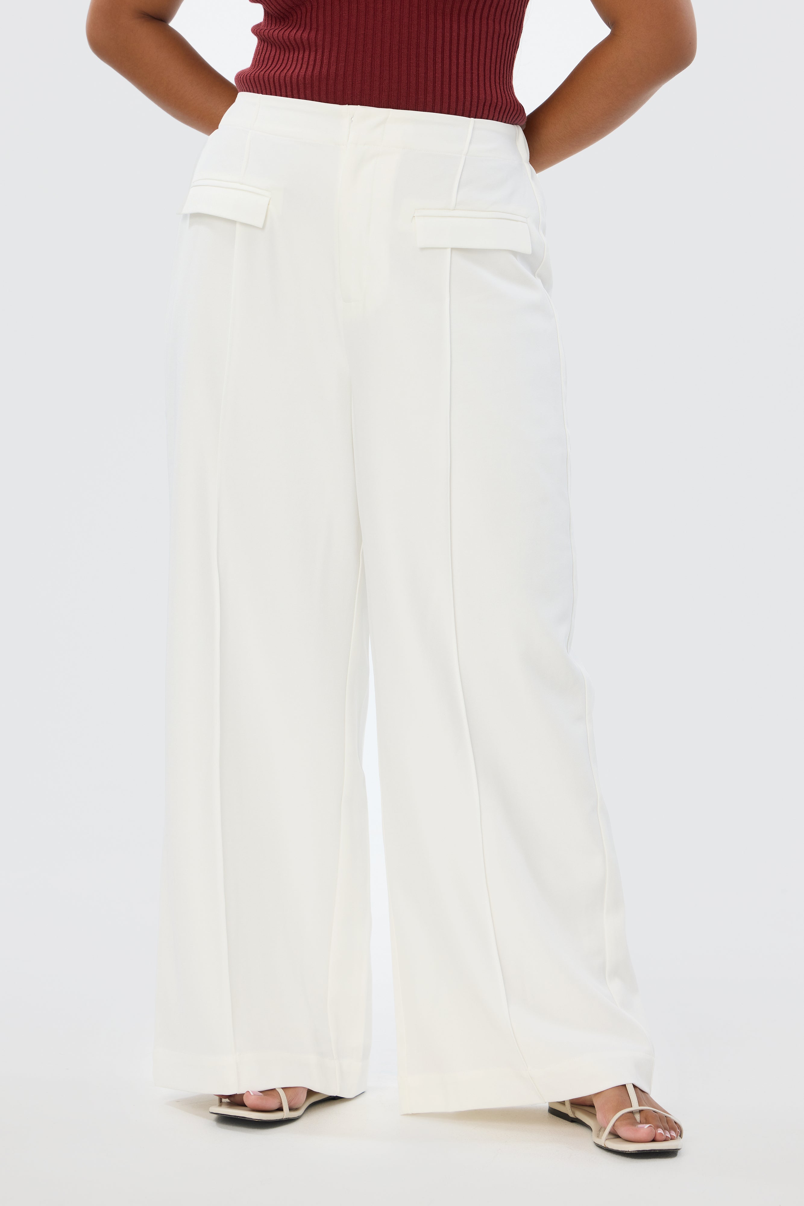Designed for comfort and ease, the Tailored Pocket Pants in White feature a high waist with concealed hook-and-bar closure, front fly zipper, and elasticated panels at the back for a perfect fit. These full-length trousers are fully lined and ideal for pairing with any top in your wardrobe.