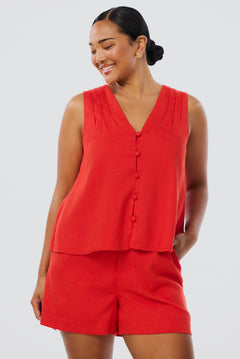 Polished and structured, the Tailored Shorts in Crimson offer a flattering A-line shape with subtle pleat details and tailored finishing. A mid-thigh length and full lining ensure comfortable, all-day wear.
