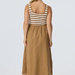 Square Neck Gathered Dress - Biscotti/White Stripe (Pre Order)