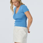 V Neck Short Sleeve Knit Top - Azure Blue (Pre Order)