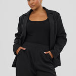 Level up your wardrobe with the Tailored Blazer in Black, a timeless classic with a modern edge. The detachable self-fabric belt lets you customise your look, cinching the waist for added definition or wearing it loose for a relaxed feel. Pair it with the matching tailored pants or dress it down with your favourite jeans.