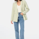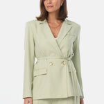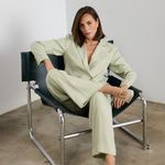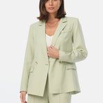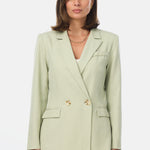 A fresh perspective on tailoring, the Tailored Double Breasted Blazer in Pistachio is your go-to for sleek layering. With its tailored shape, soft drape, and smart details, it works just as well styled with matching suiting as it does over denim.