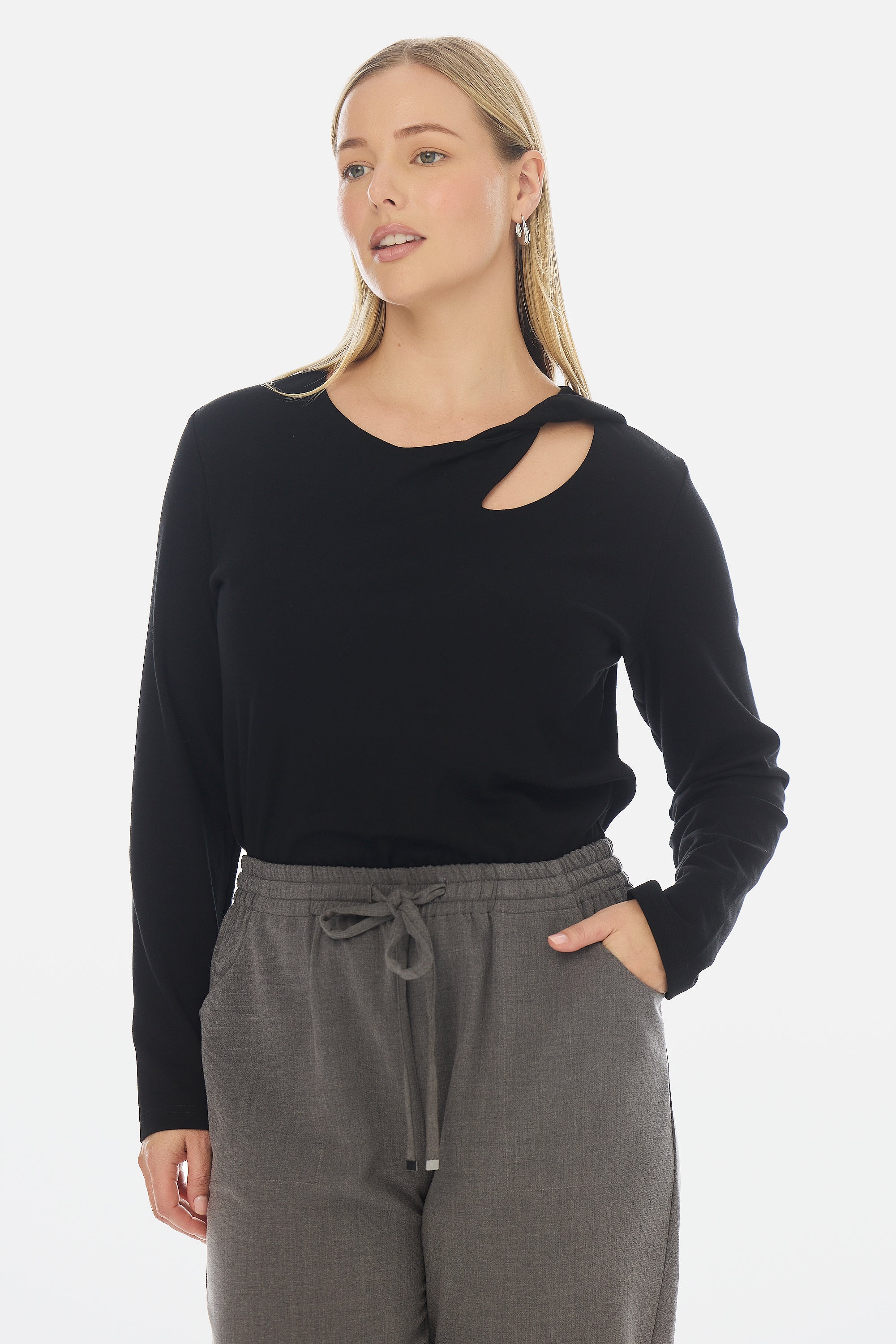 The Twist Long Sleeve Top in Black is all about subtle detail. Made from soft stretch jersey, it features a round neckline with a twist cutout, offering a modern update to a classic silhouette. A perfect foundation piece to wear with jeans or wide-leg trousers.
