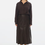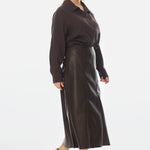 Vegan Leather Panelled Skirt - Chocolate