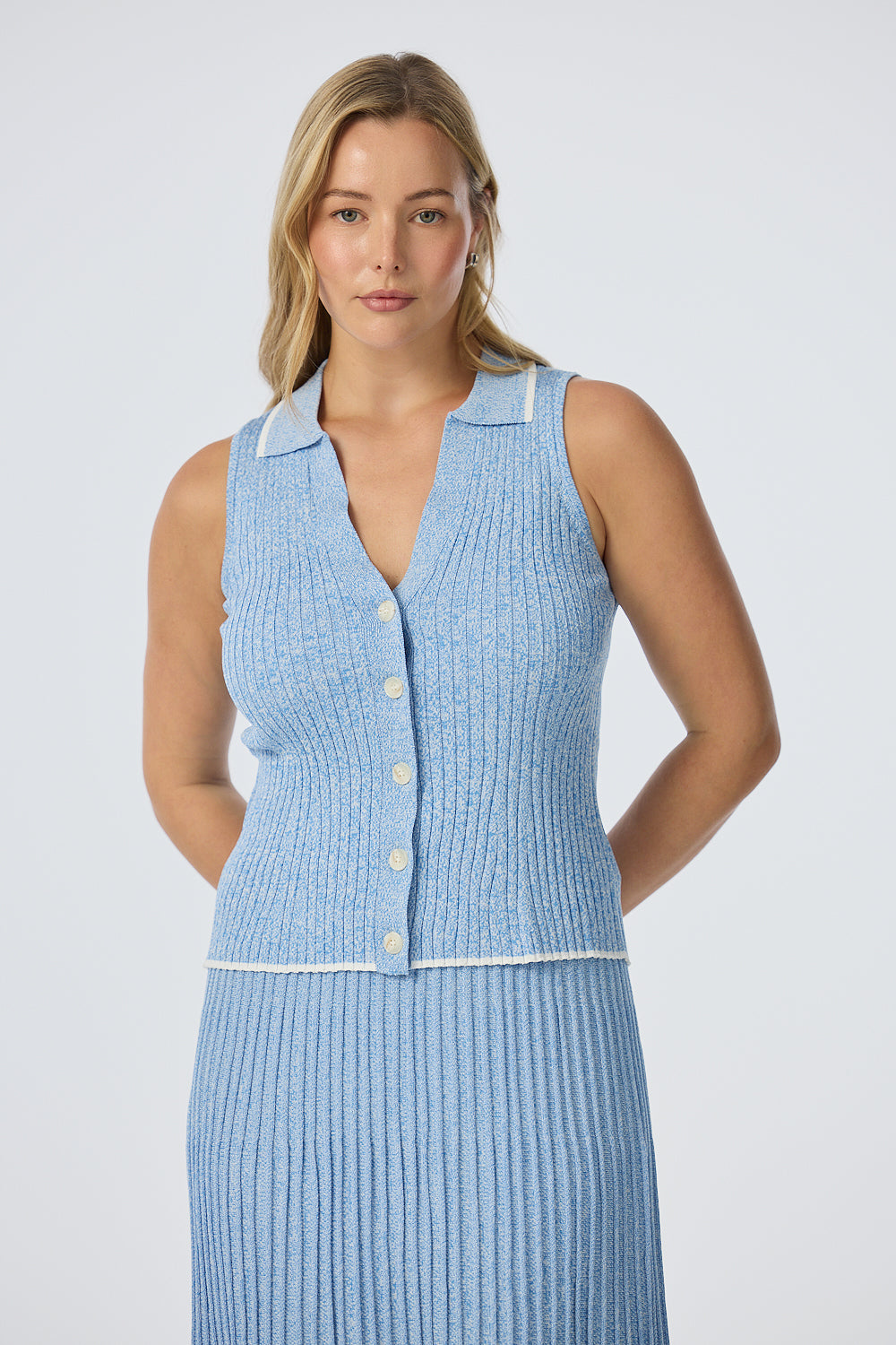 Sleeveless Buttoned Knit Top - Azure Blue Marl (Pre Order)
