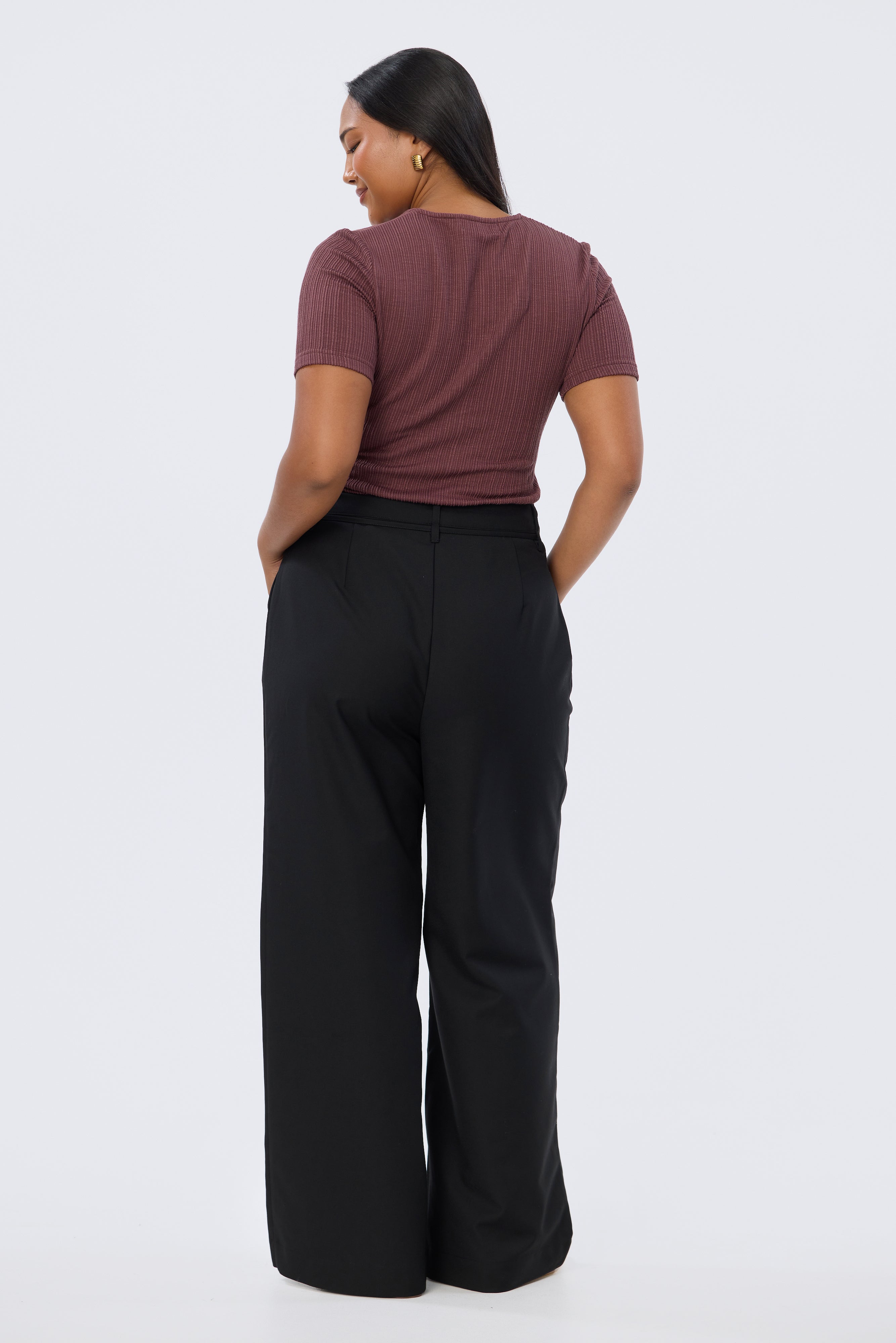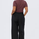 The Detachable Belt Pant in Black is a flattering high-waisted silhouette with a wide waistband and subtle belt loop detailing. The removable belt threads through a lower loop and is finished with a mini D-ring for a refined touch. This tailored style pairs effortlessly with your workwear staples or elevated shirting.