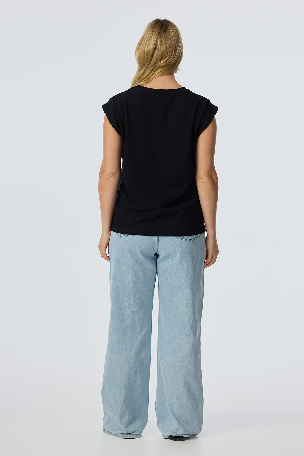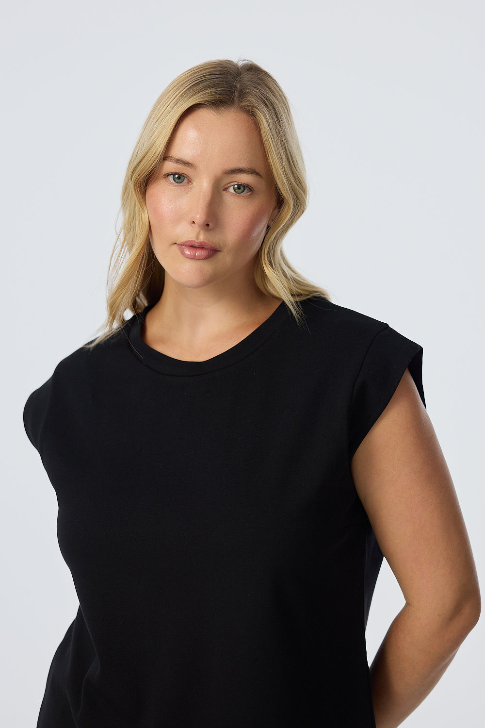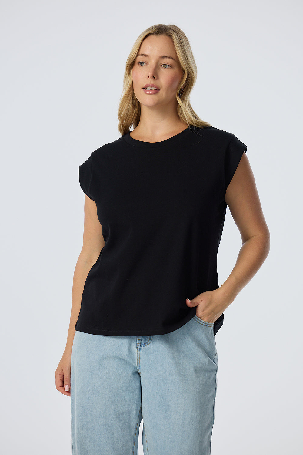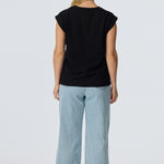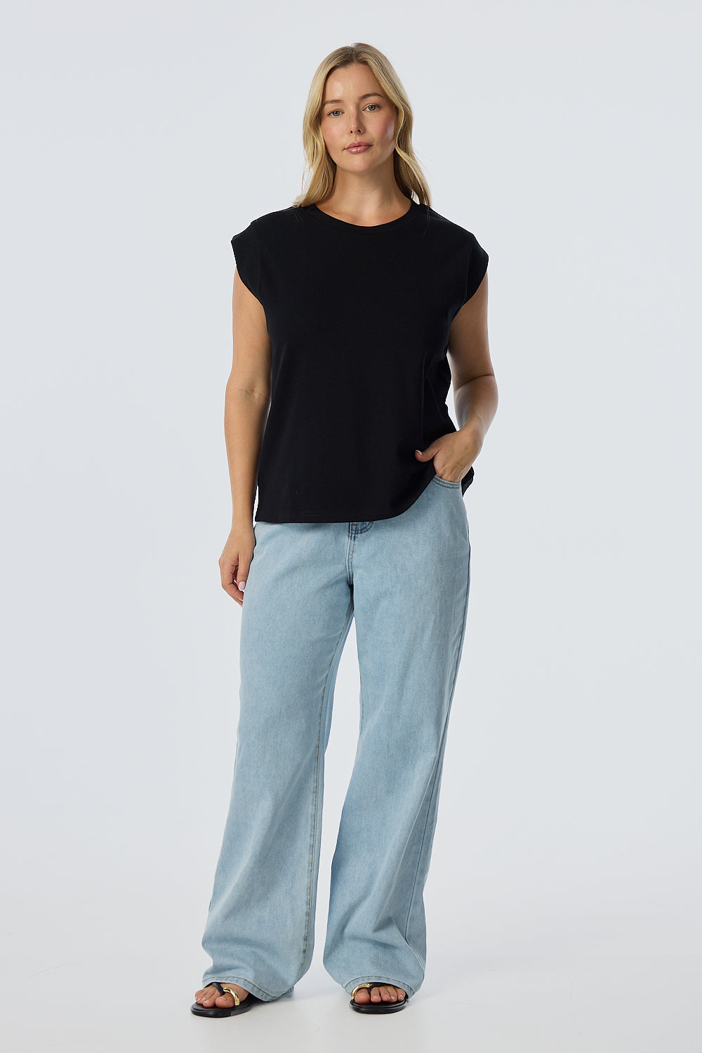 Elevate your casual style with our Cap Sleeve Jersey Tank in Black. The wide cut provides more coverage than a classic tank, and its straight fit through the body pairs perfectly with our staple Cargo Pants or signature denim pieces, making it an essential addition to your wardrobe.