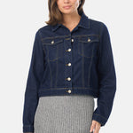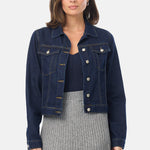 The Denim Jacket in Indigo is your versatile layering hero, blending timeless styling with a touch of stretch for ease. Classic topstitched detailing and functional patch pockets elevate this mid-length jacket, designed to sit just right over dresses or trousers.