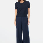 Meet your newest elevated basic, the Textured Short Sleeve Knit Top in Navy. The tactile finish and relaxed silhouette offer a refined option for everyday wear, easily paired with trousers, skirts, or denim.