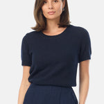 Textured Short Sleeve Knit Top - Navy