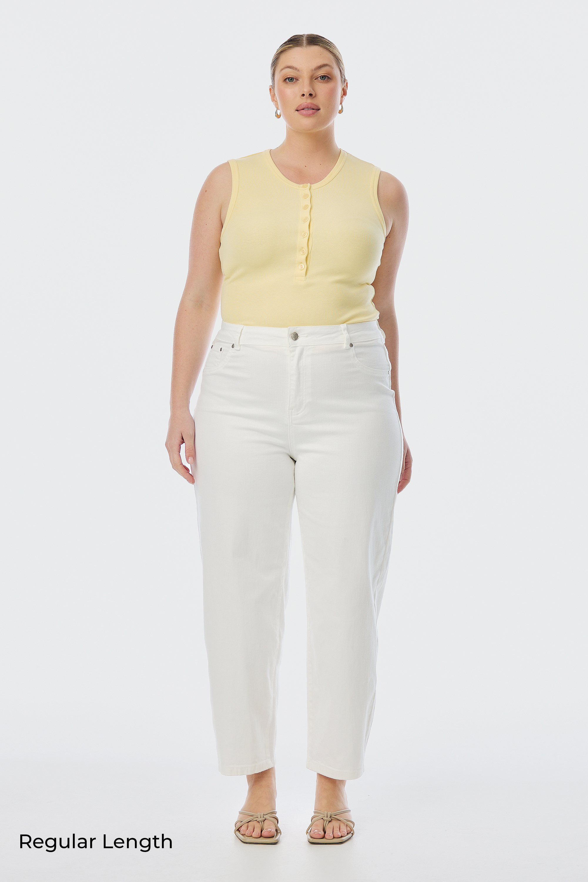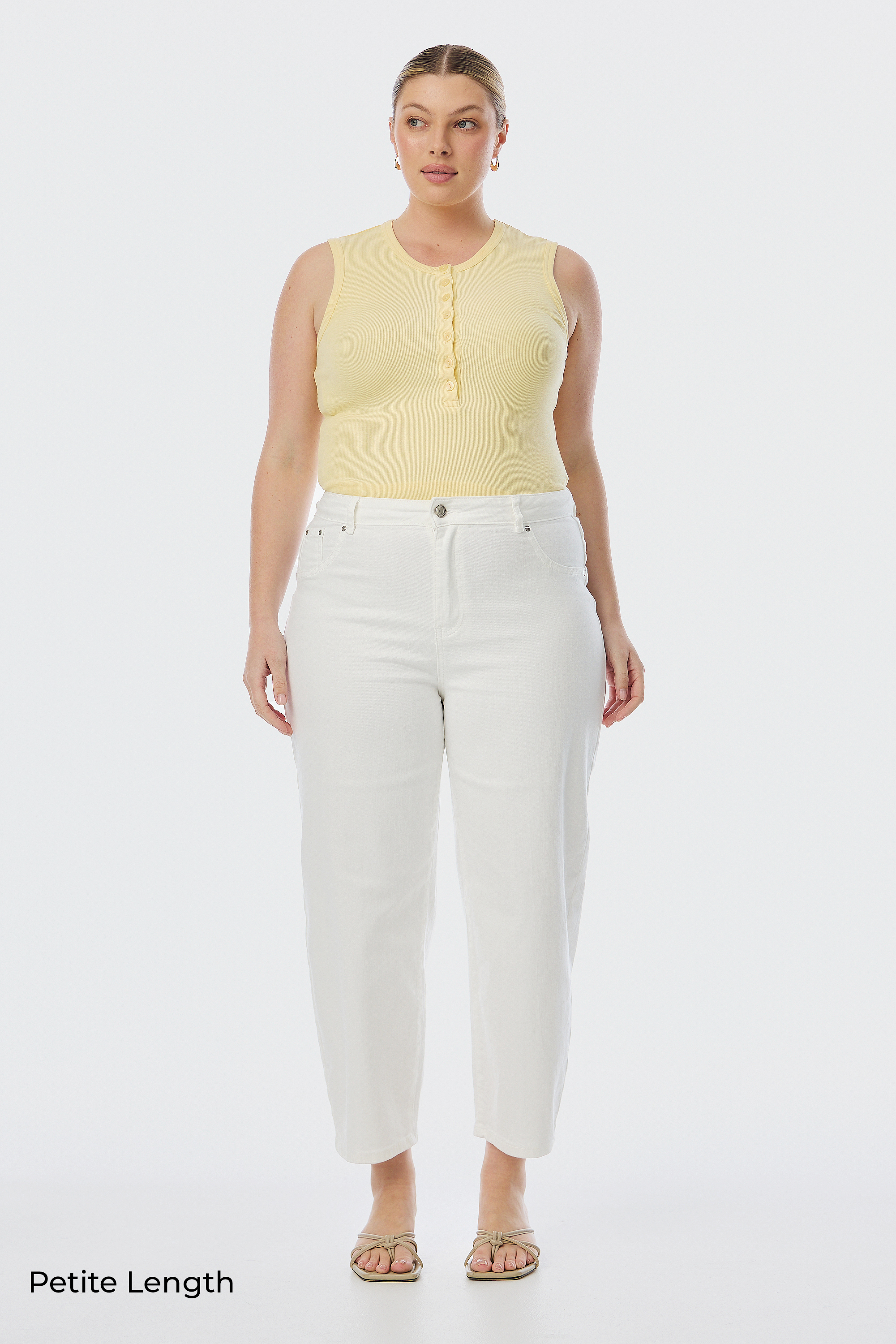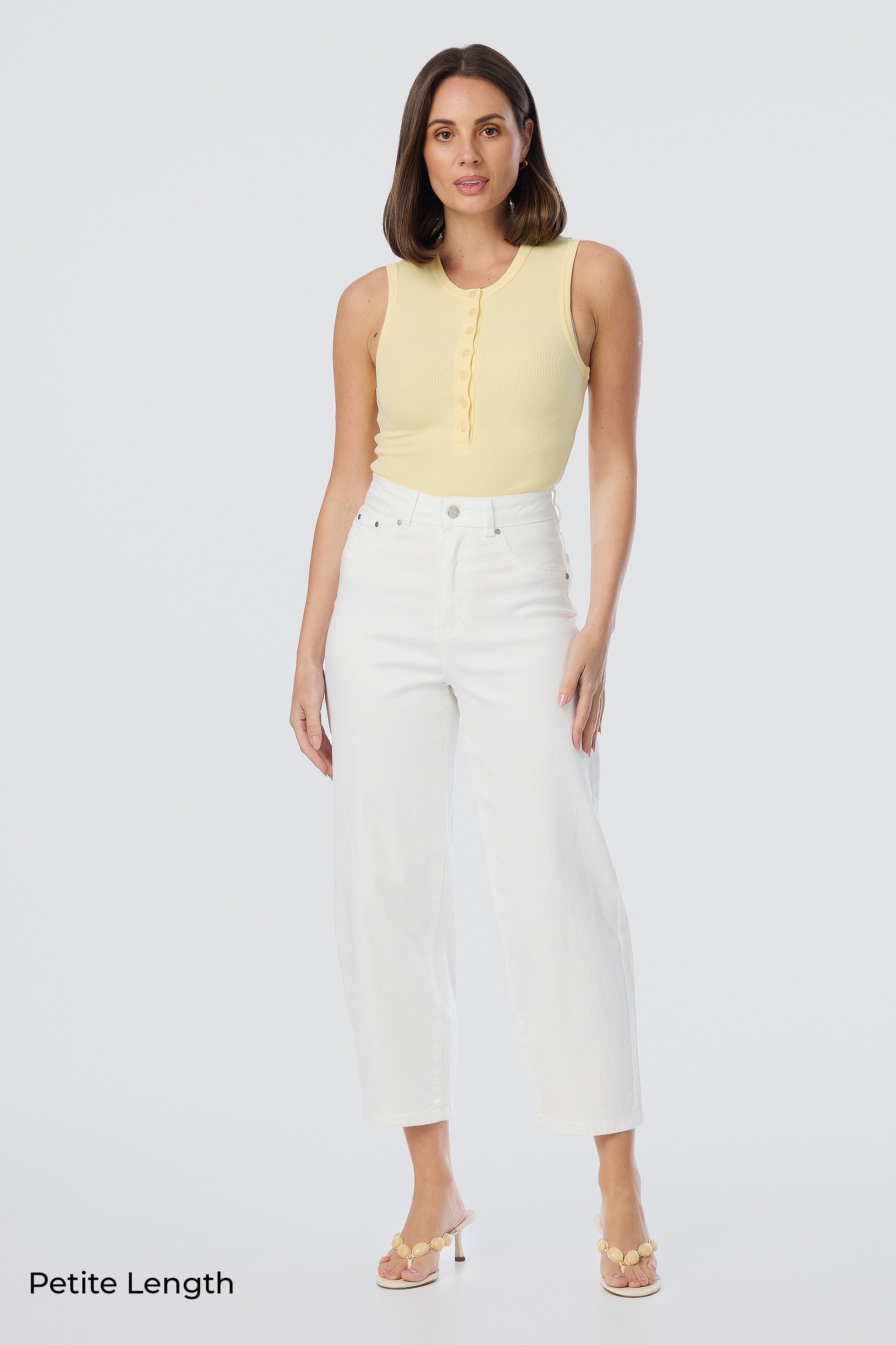 Experience our Signature Barrel Leg Jeans in White, crafted for timeless style and effortless ease, tailored to every shape and size. With a touch of stretch for comfort and premium fabric that holds its form, this is denim designed to endure. Find your perfect fit with our two lengths - regular and petite.