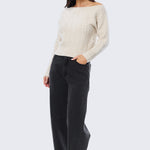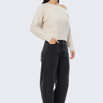 Asymmetric Cable Knit Jumper - Ecru