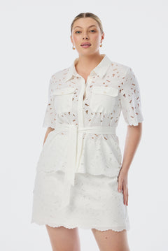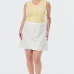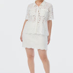 A fresh take on a classic silhouette. The Broderie Anglaise Mini Skirt in White sits at the waist and features a flattering A-line shape with a mini length. Finished with a side seam invisible zip for a clean look, it’s fully lined for comfort and crafted from mid-weight fabric with contrast detailing.