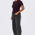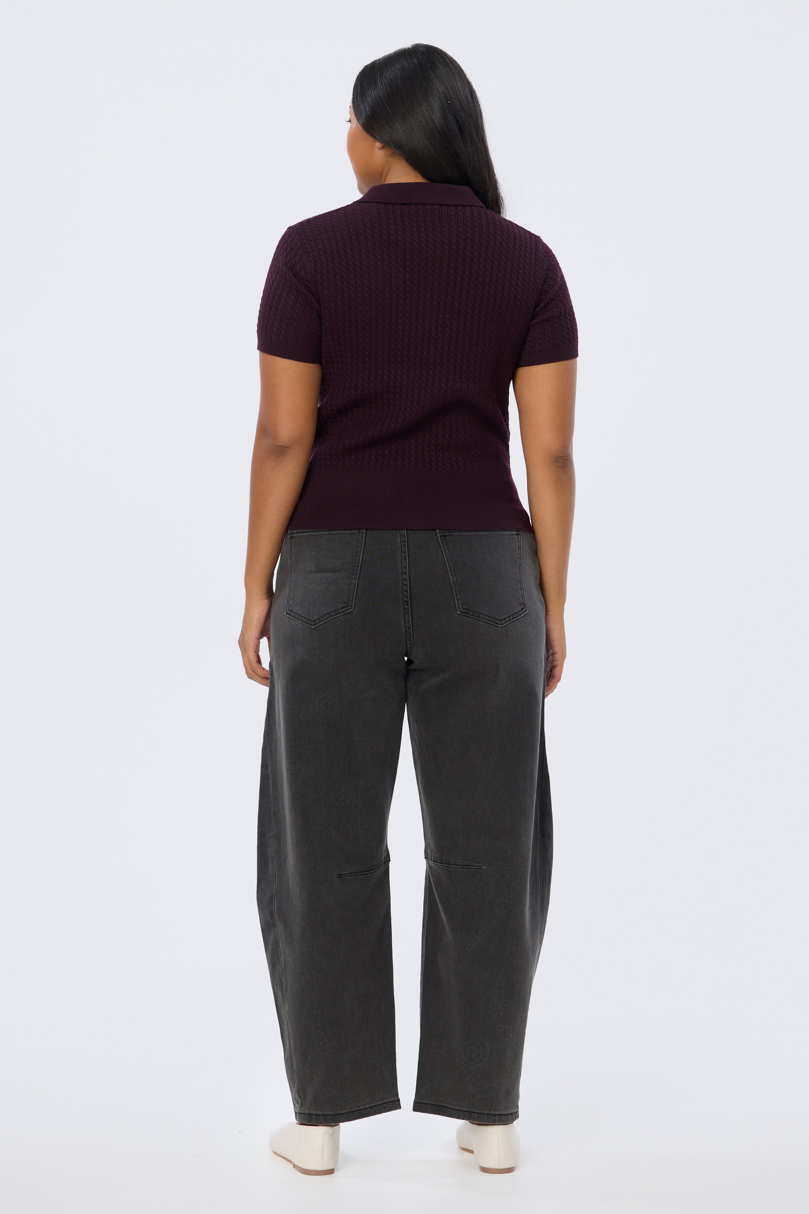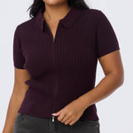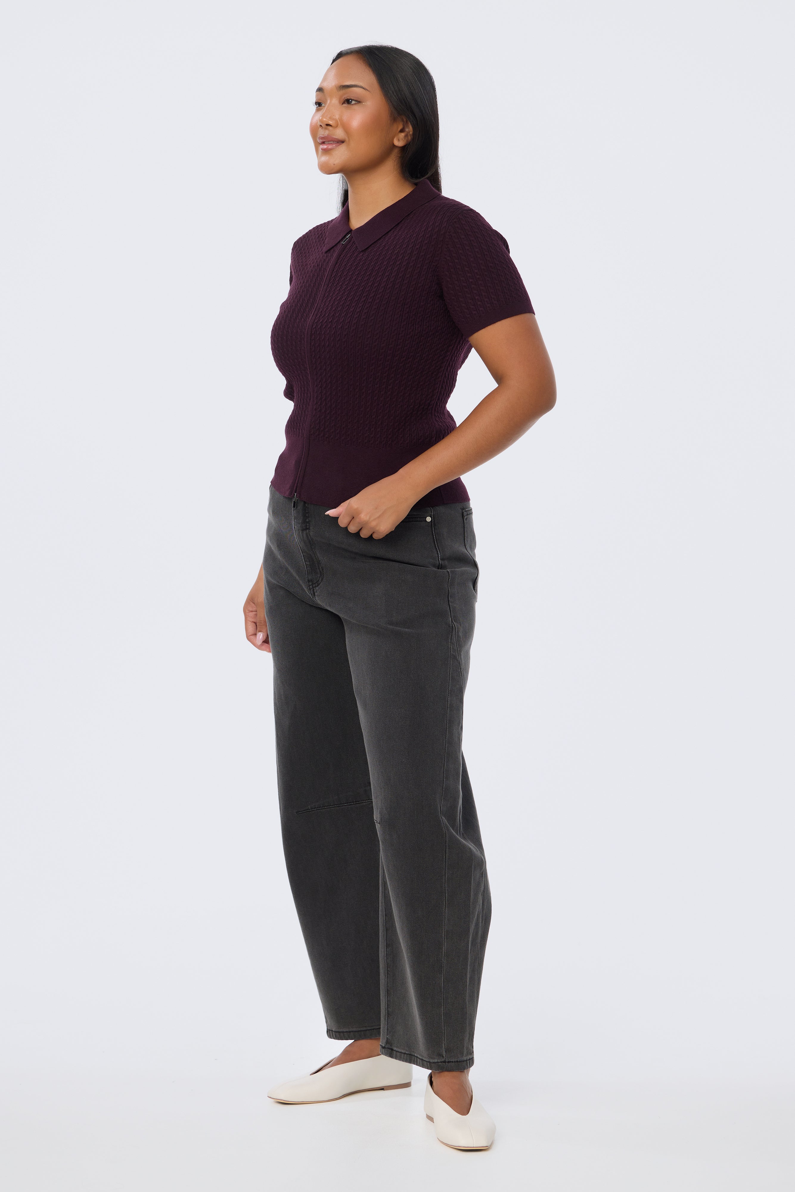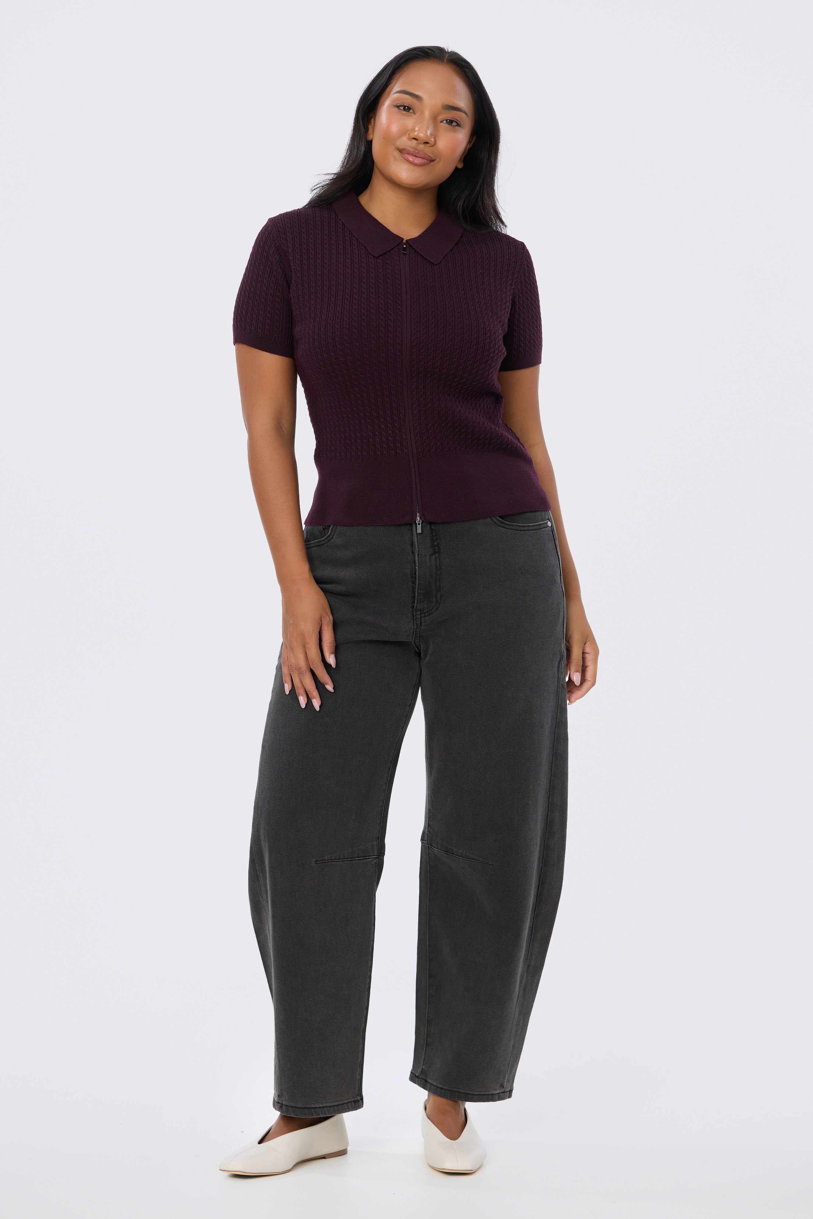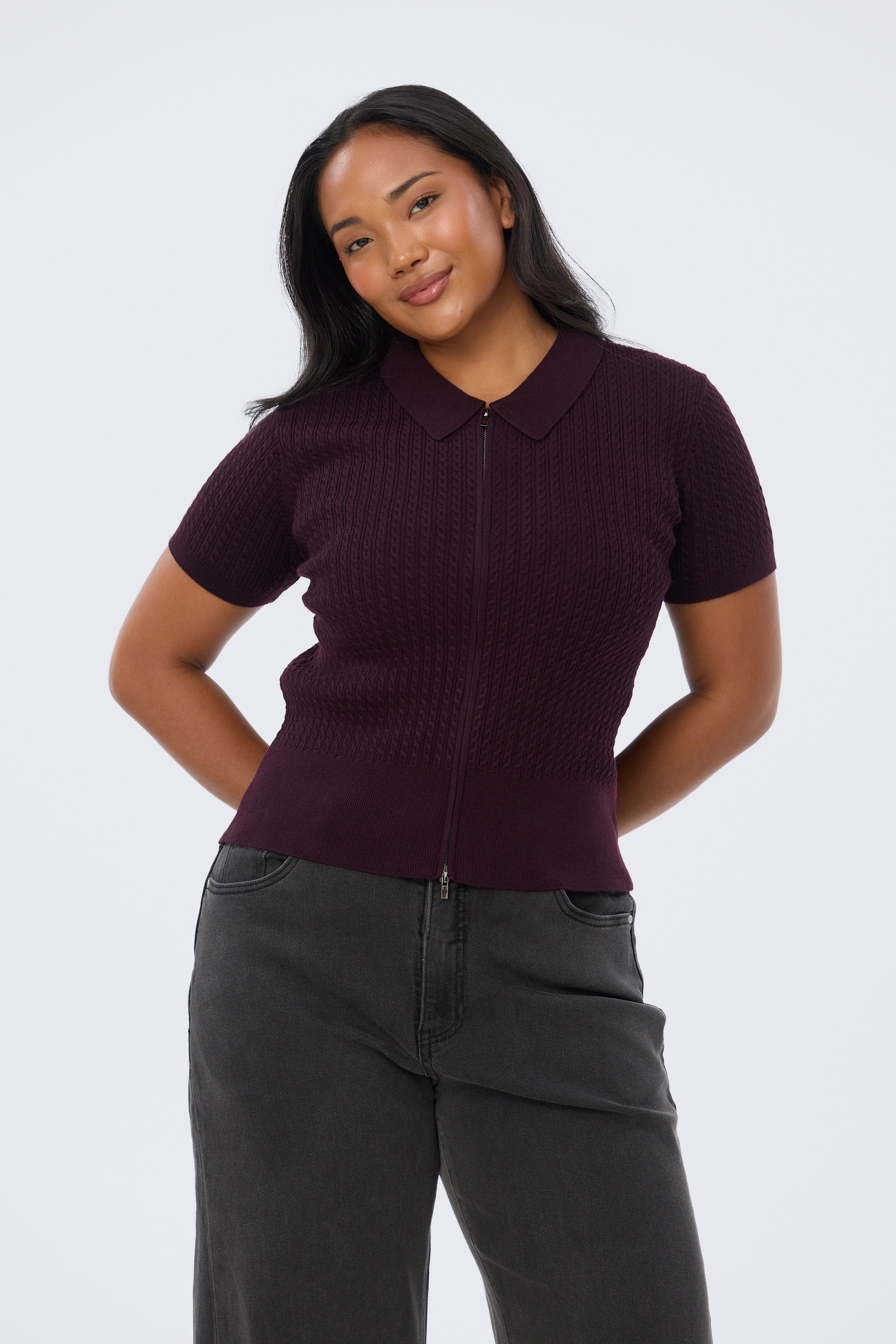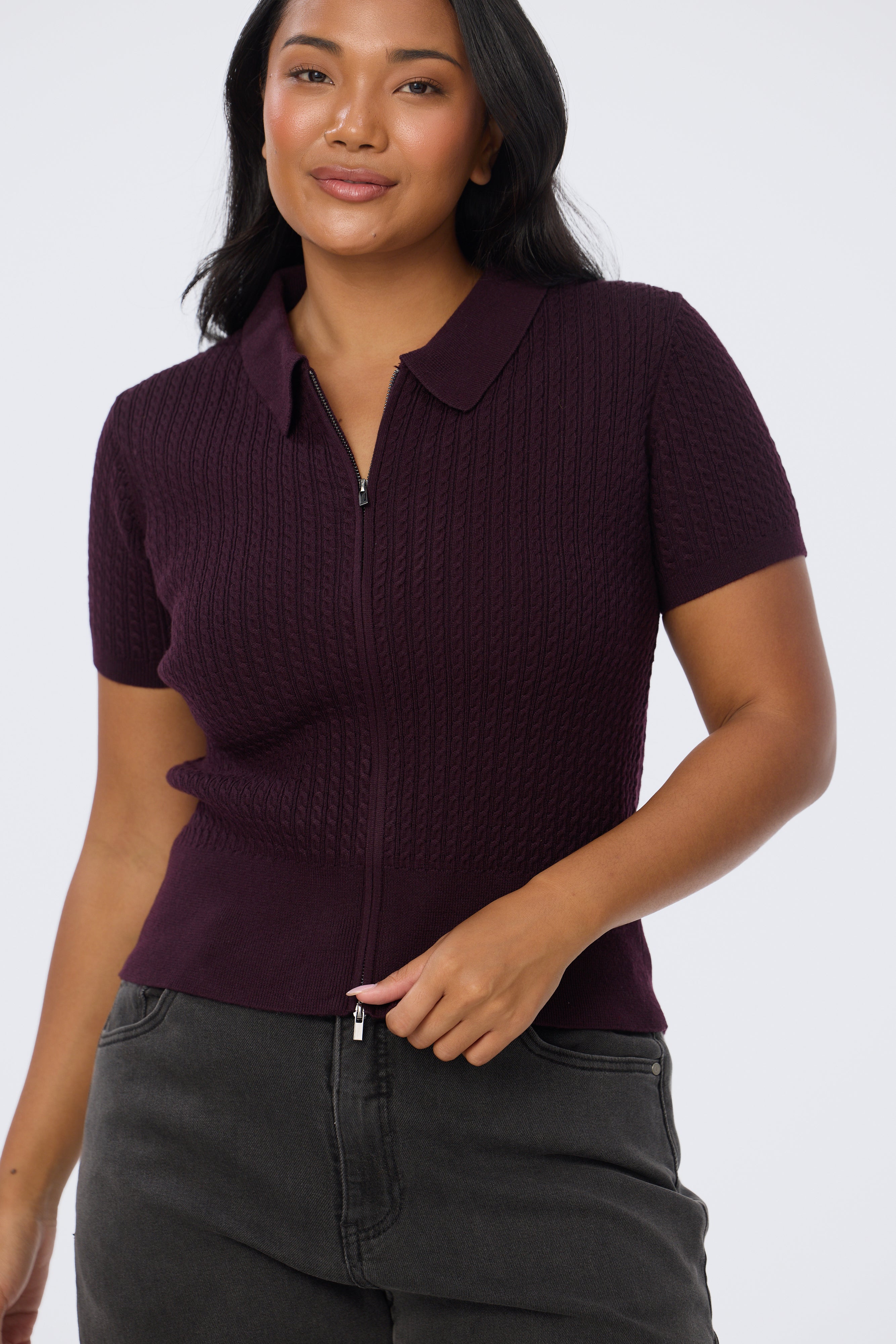 Cable Knit Zip Top - Aubergine