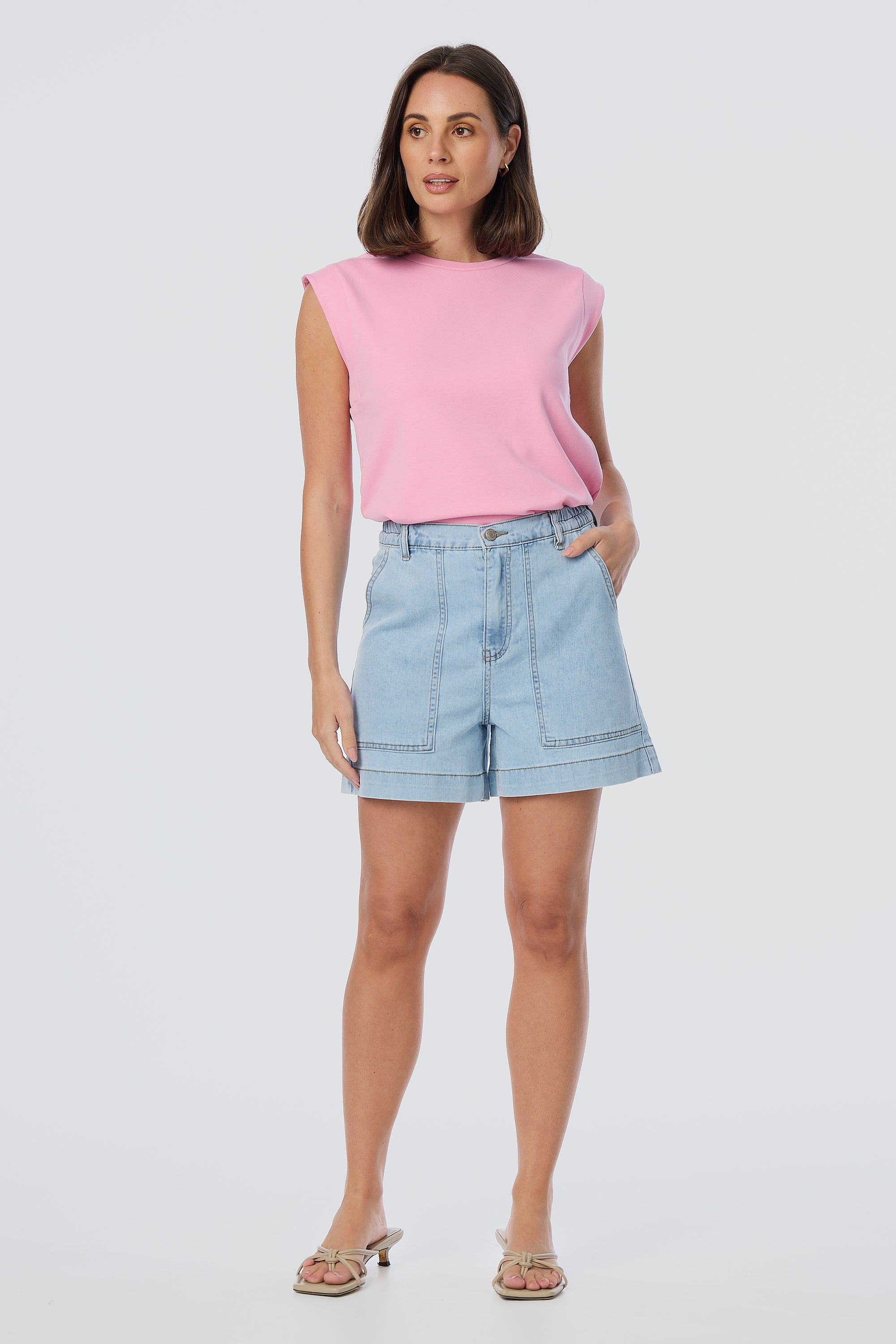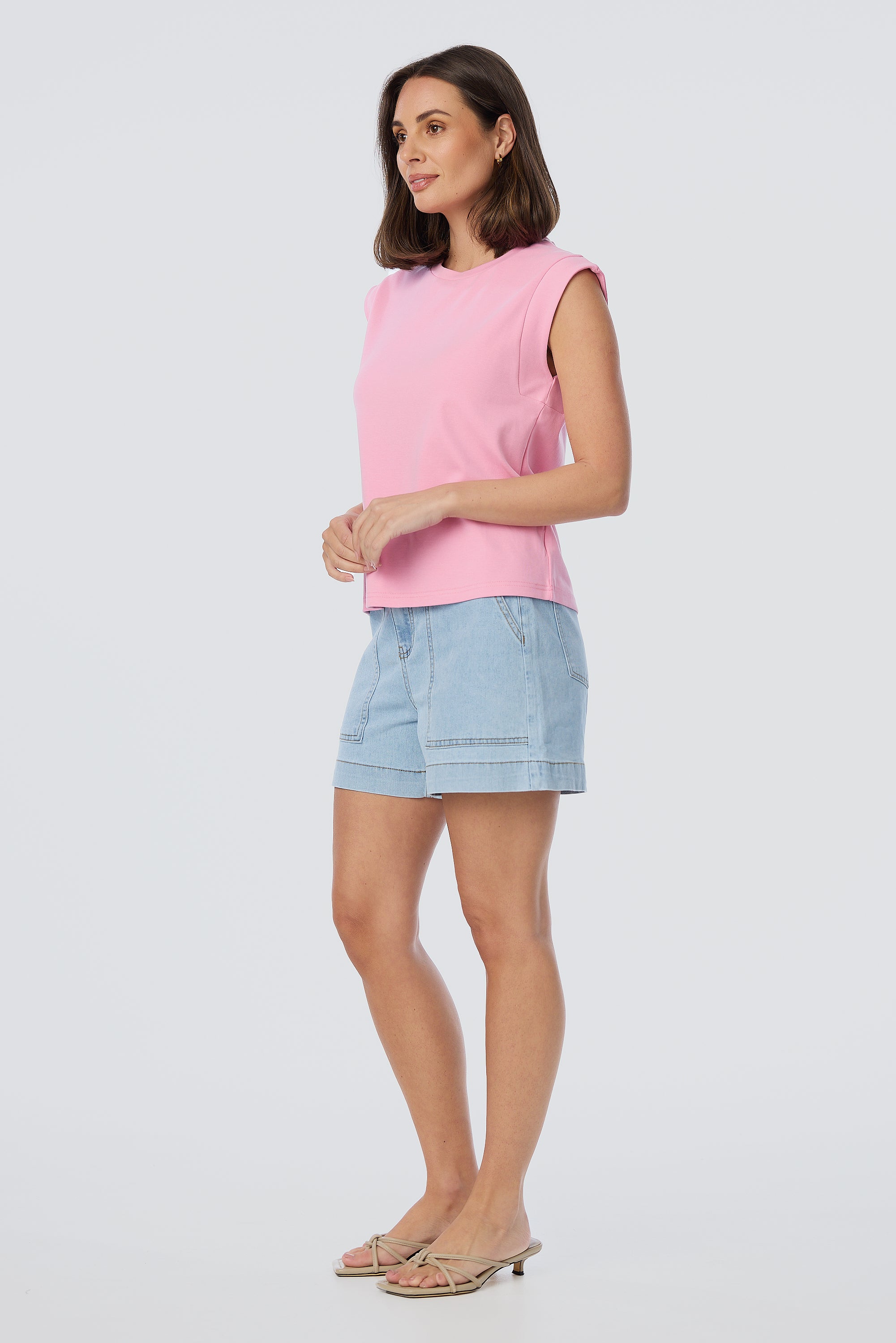 Elevate your casual style with our Cap Sleeve Jersey Tank in Musk Pink. The wide cut provides more coverage than a classic tank, and its straight fit through the body pairs perfectly with our staple Cargo Pants or signature denim pieces, making it an essential addition to your wardrobe.