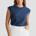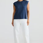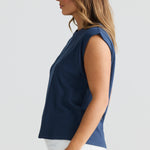 Elevate your casual style with our Cap Sleeve Jersey Tank in Navy. The wide cut provides more coverage than a classic tank, and its straight fit through the body pairs perfectly with our staple Cargo Pants or signature denim pieces, making it an essential addition to your wardrobe.