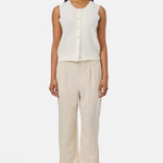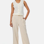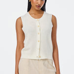 Timeless meets texture in this Crochet Button Up Vest in Ecru. With its crew neckline, tortoiseshell-effect buttons, and mid-weight knit, this vest brings polish to laid-back layering. Wear it buttoned up on its own or open over a tee for breezy transitional styling.