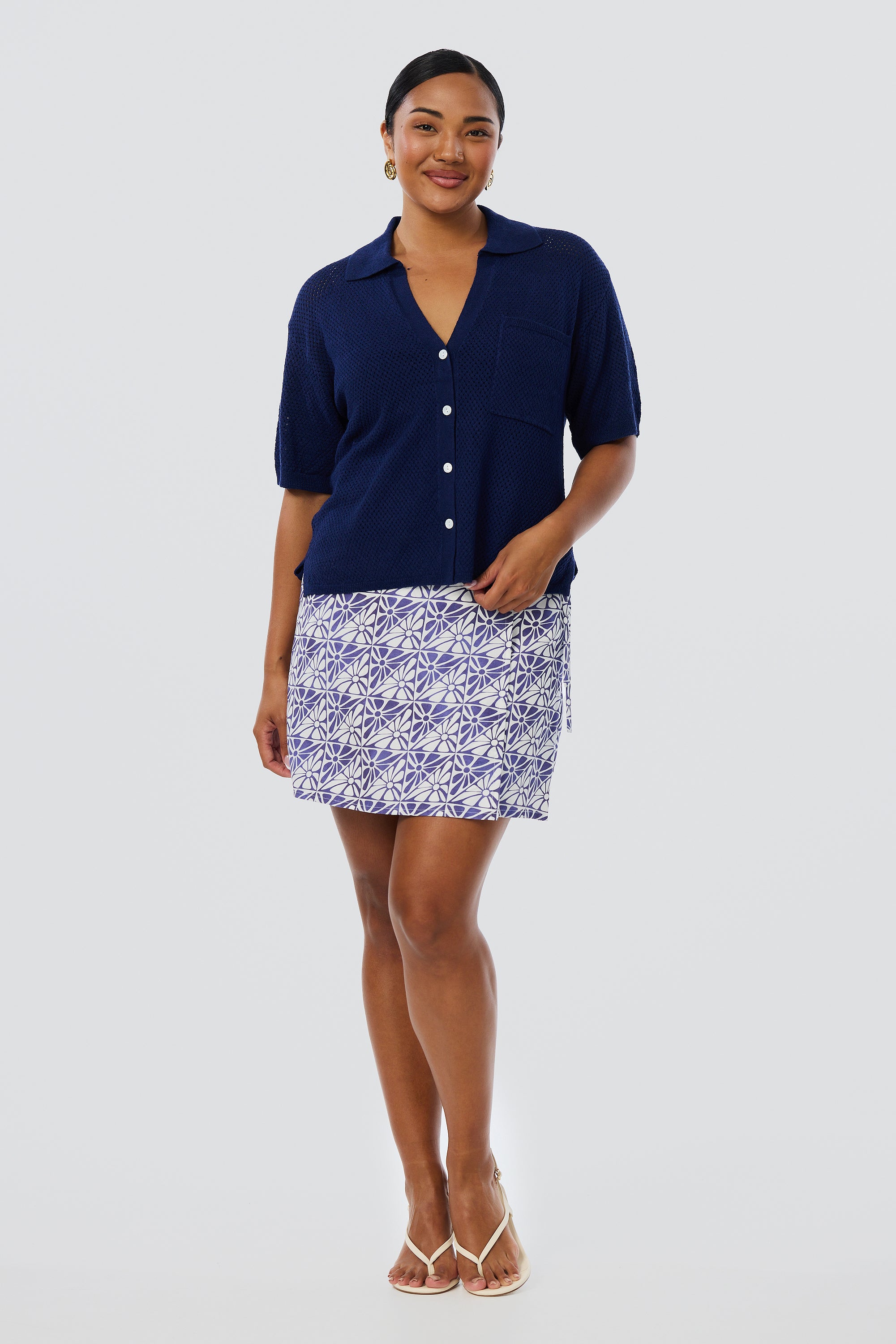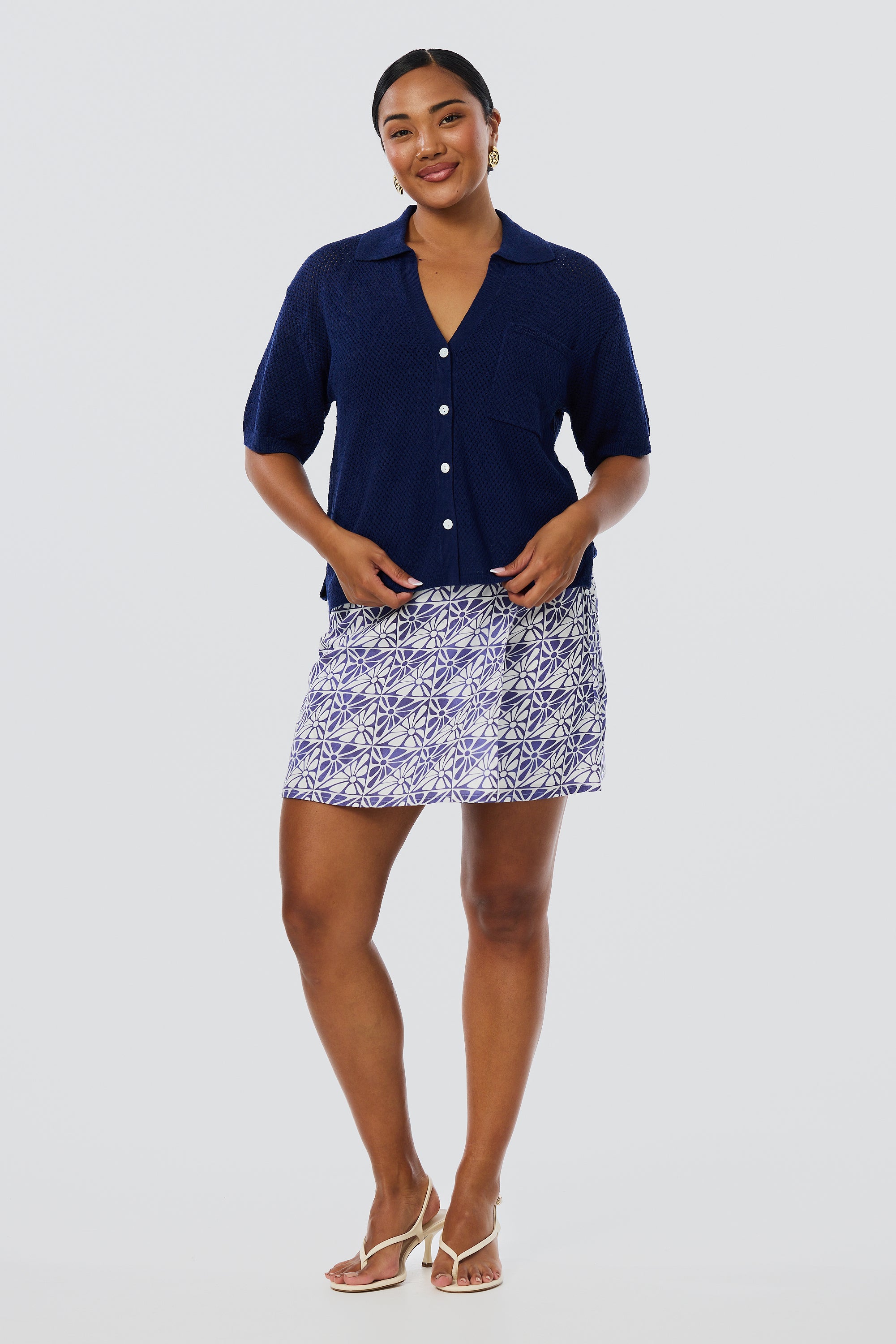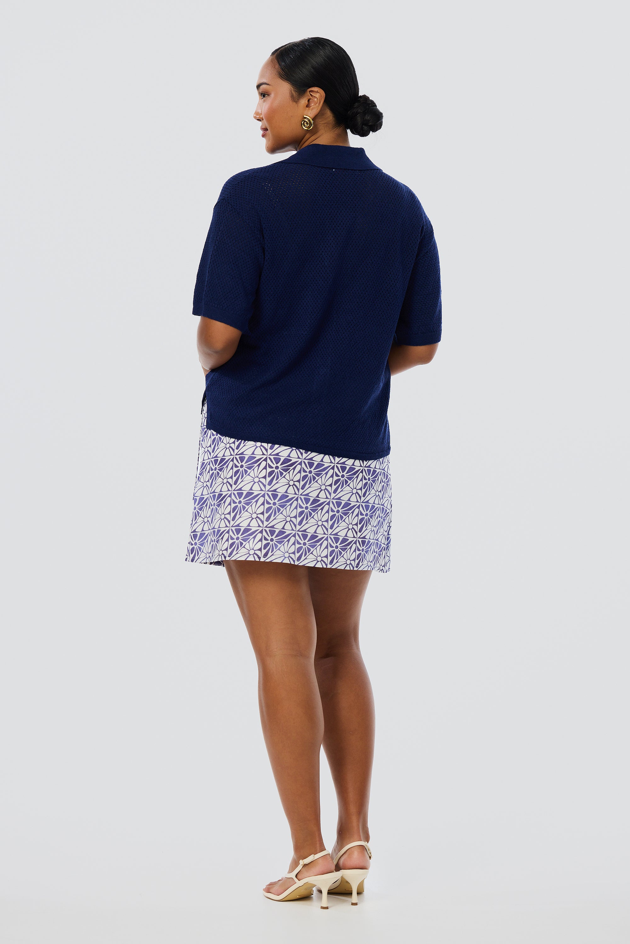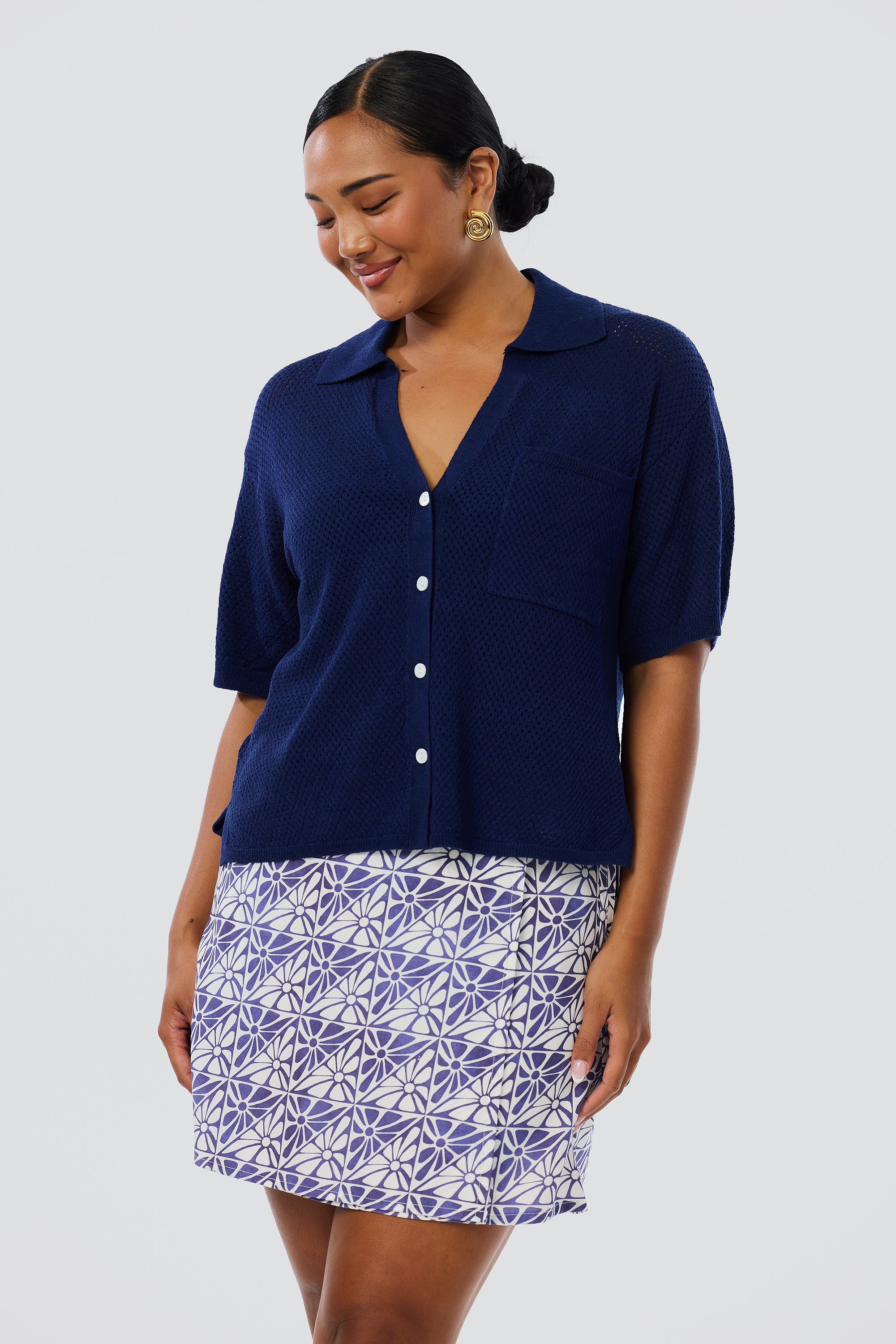 Crochet Short Sleeve Shirt - Indigo Blue (Pre Order)