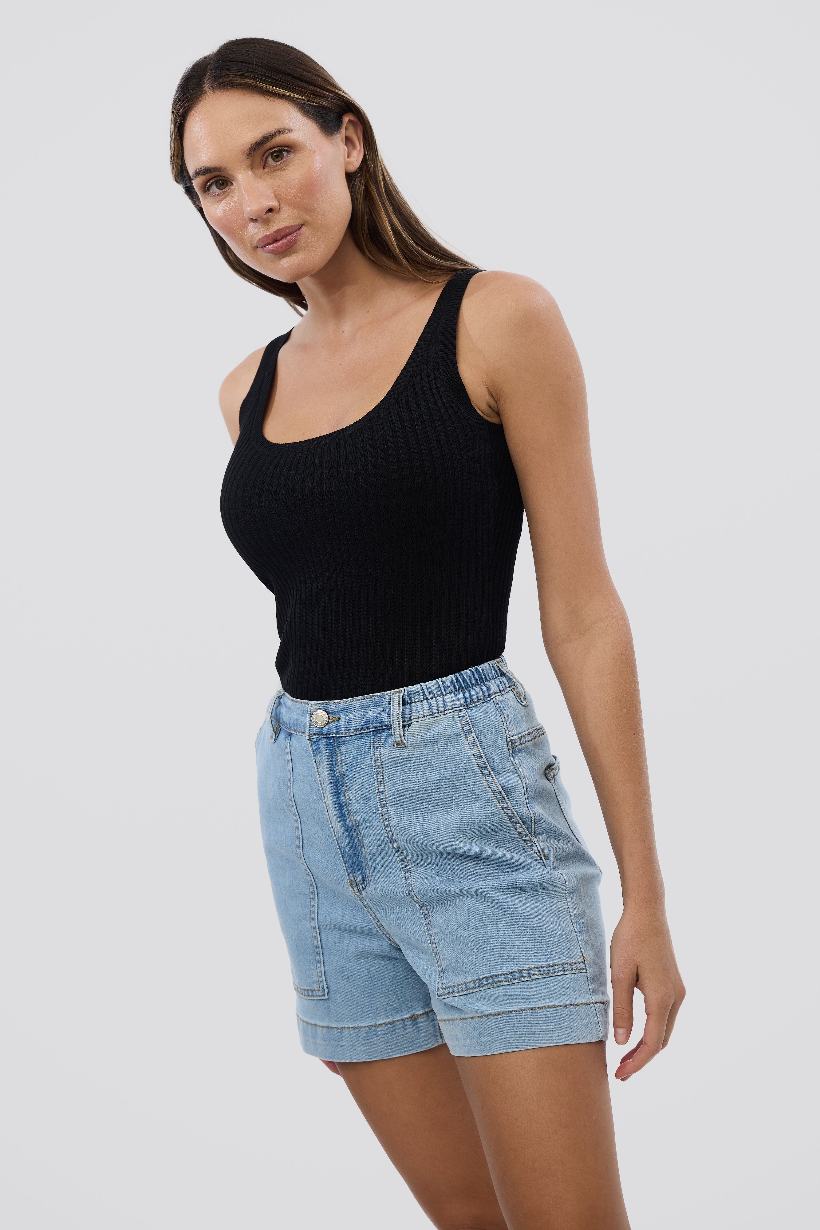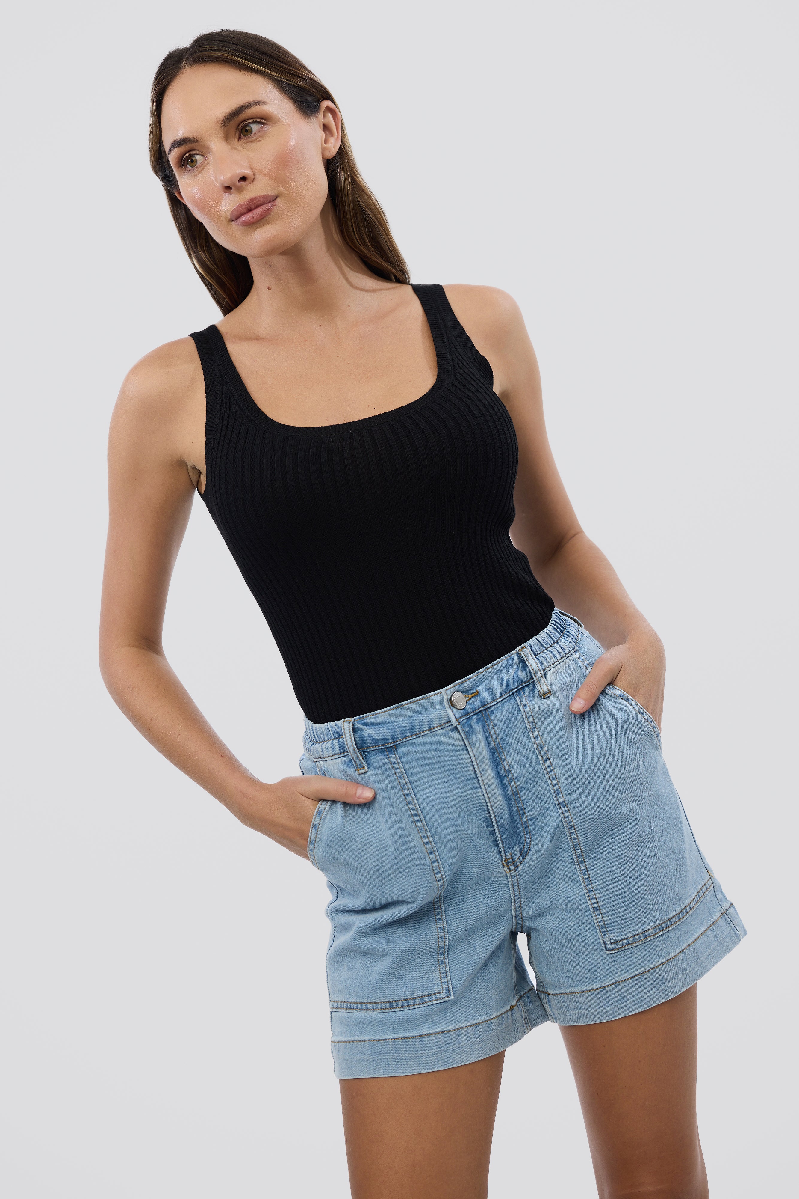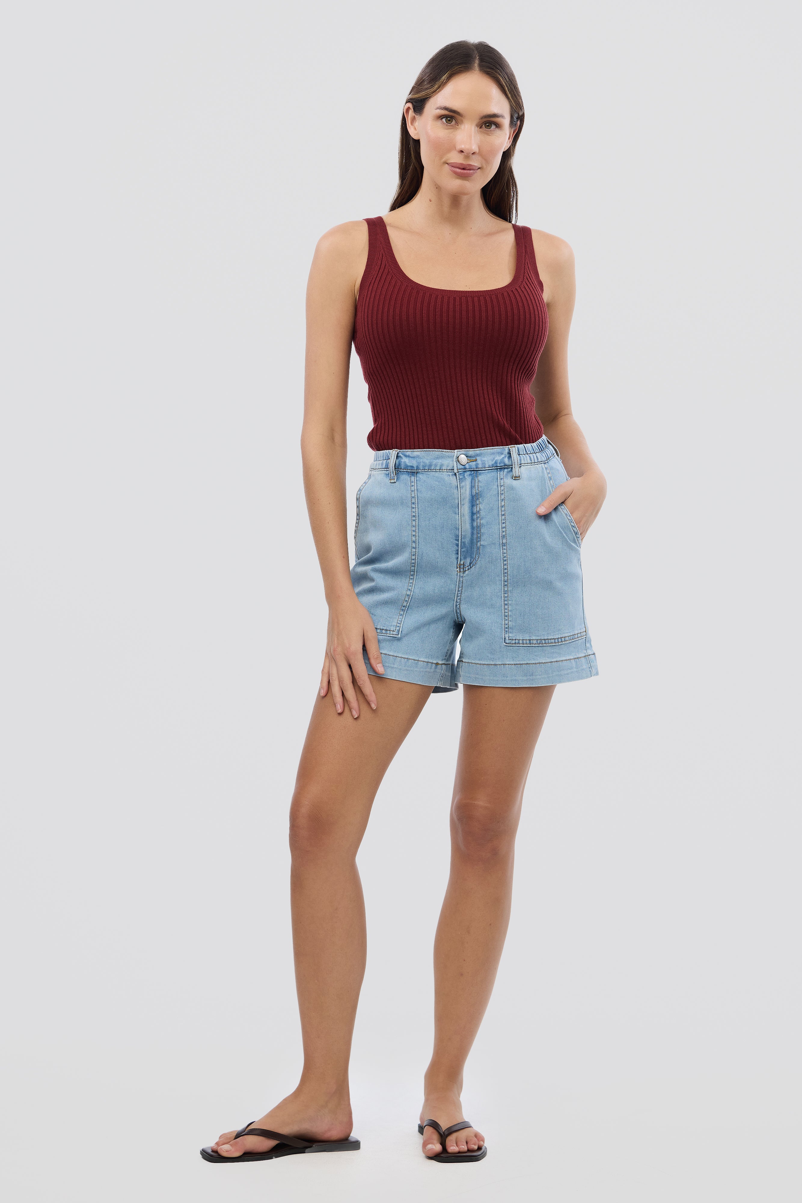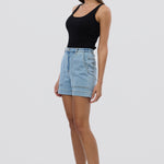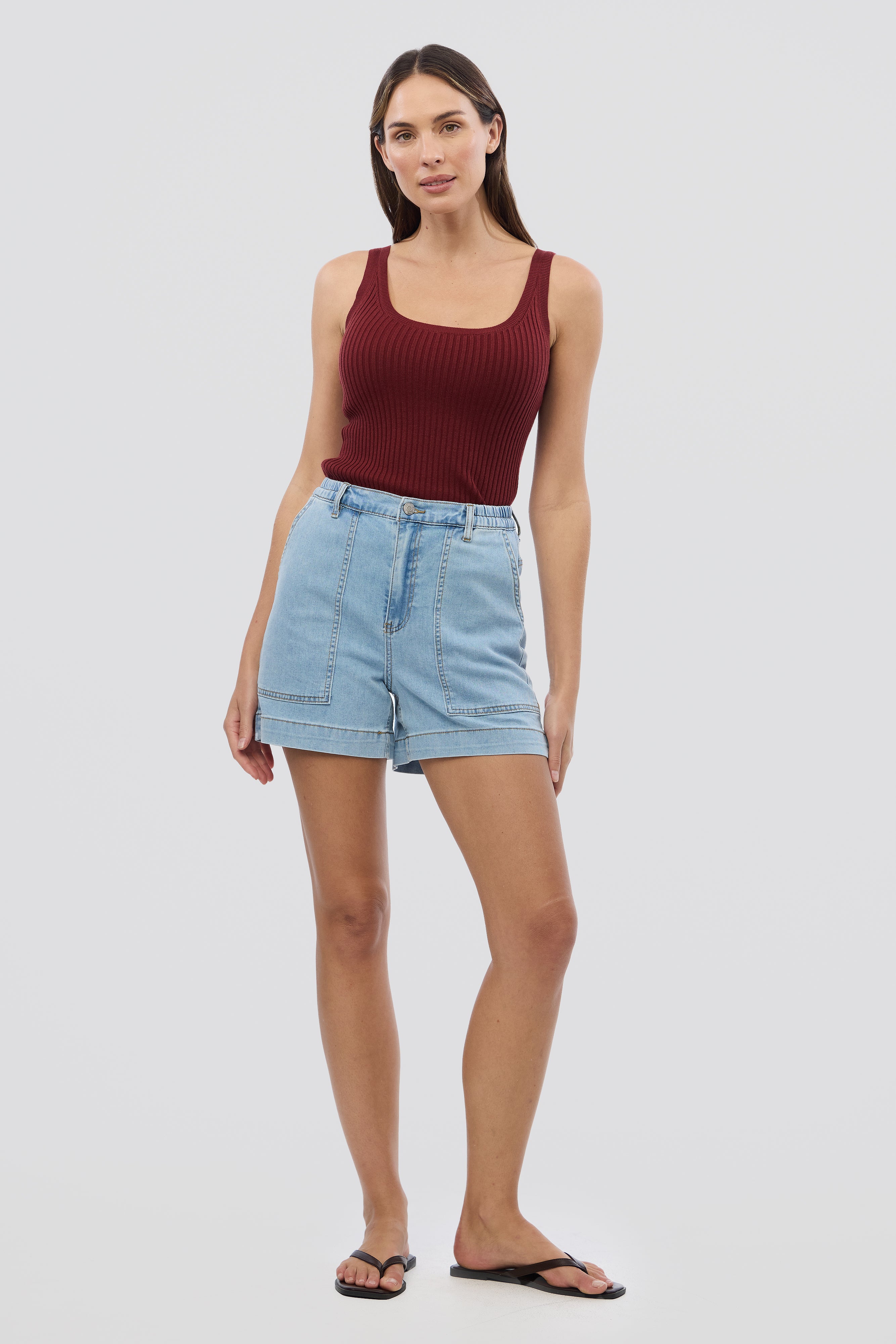 Laid-back yet polished, the Denim Patch Pocket Shorts in Light Blue Wash are designed for off-duty ease. With a wide-leg silhouette, functional patch pockets, and an elasticated waistband, they offer all-day comfort in a flattering high-waisted cut. Pair with the matching Denim Vest for an effortless look.