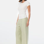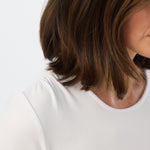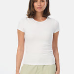 The Gathered Short Sleeve Top in White brings thoughtful texture to your everyday essentials. Featuring delicate gathers at the shoulders and waist, this fitted silhouette is crafted from a mid-weight stretch rib jersey for comfort and ease.