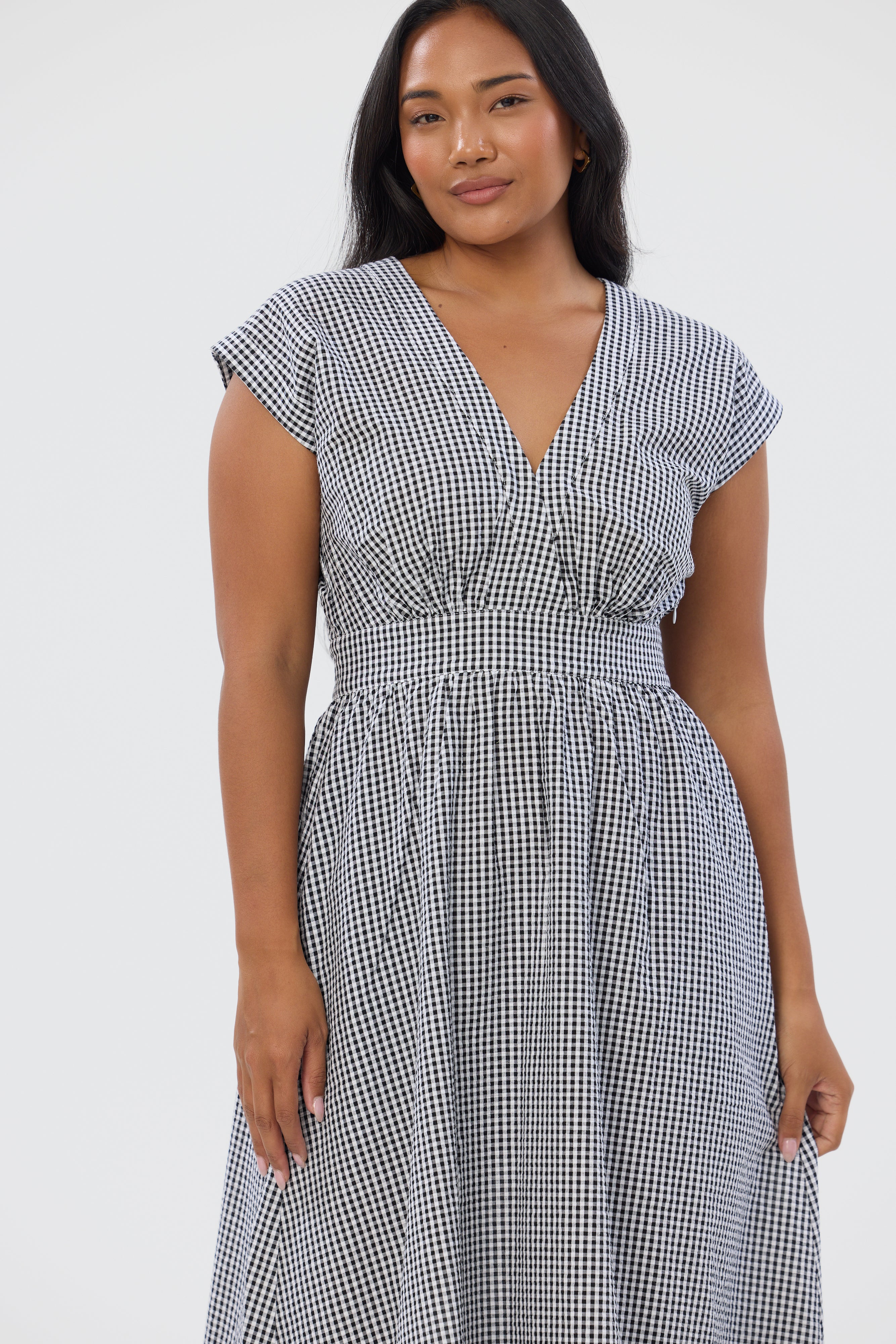 - Cassandra L.Verified BuyerReviewingGathered V Neck Midi Dress - Black/White GinghamI recommend this productUsual Size 14Size Purchased 14Rated 5 out of 5 stars3 days agoA perfect dress