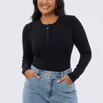 Henley Long Sleeve Top - Black