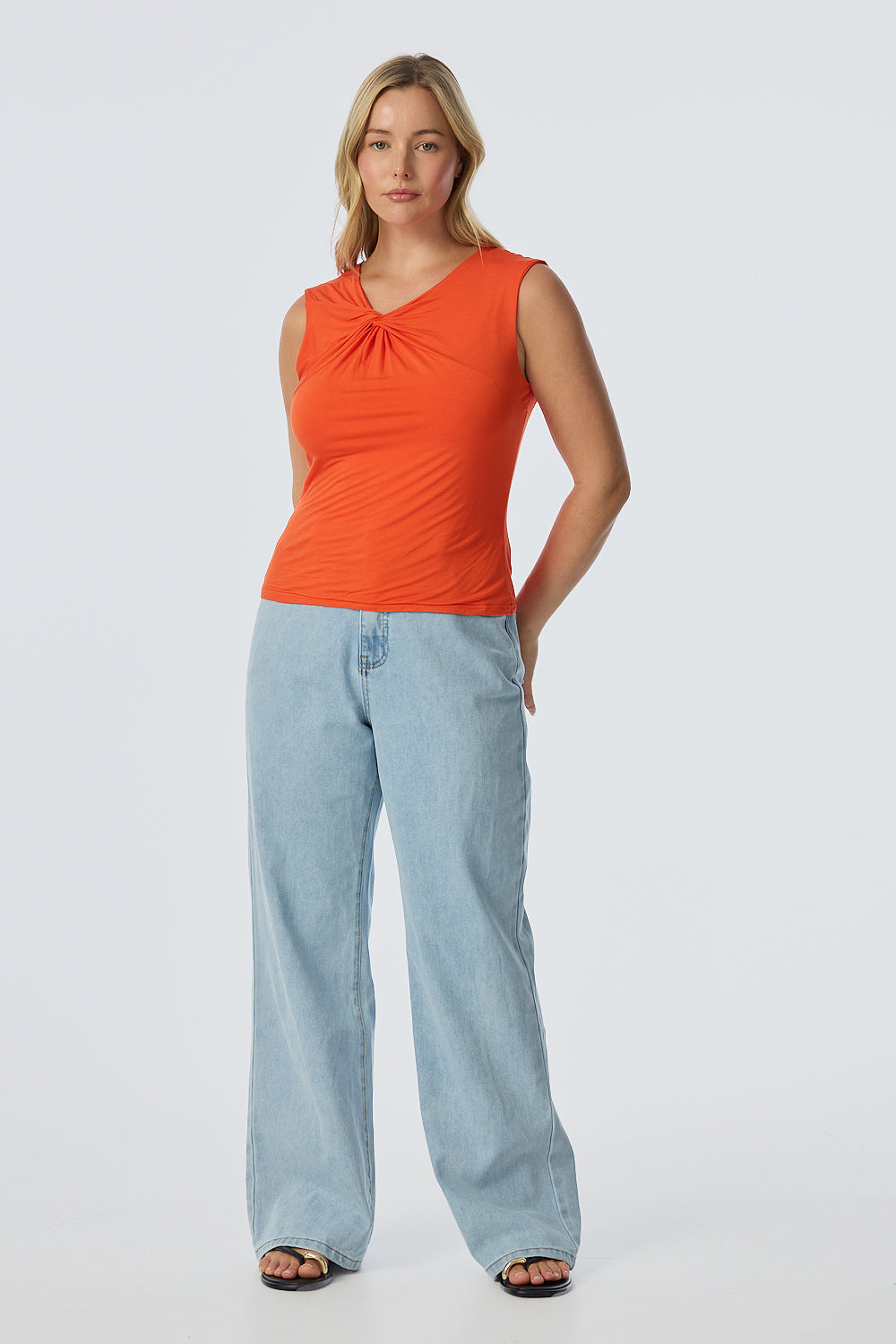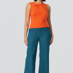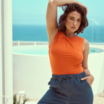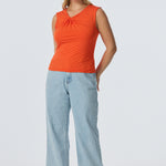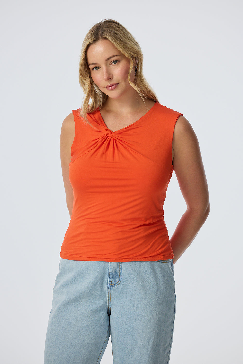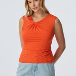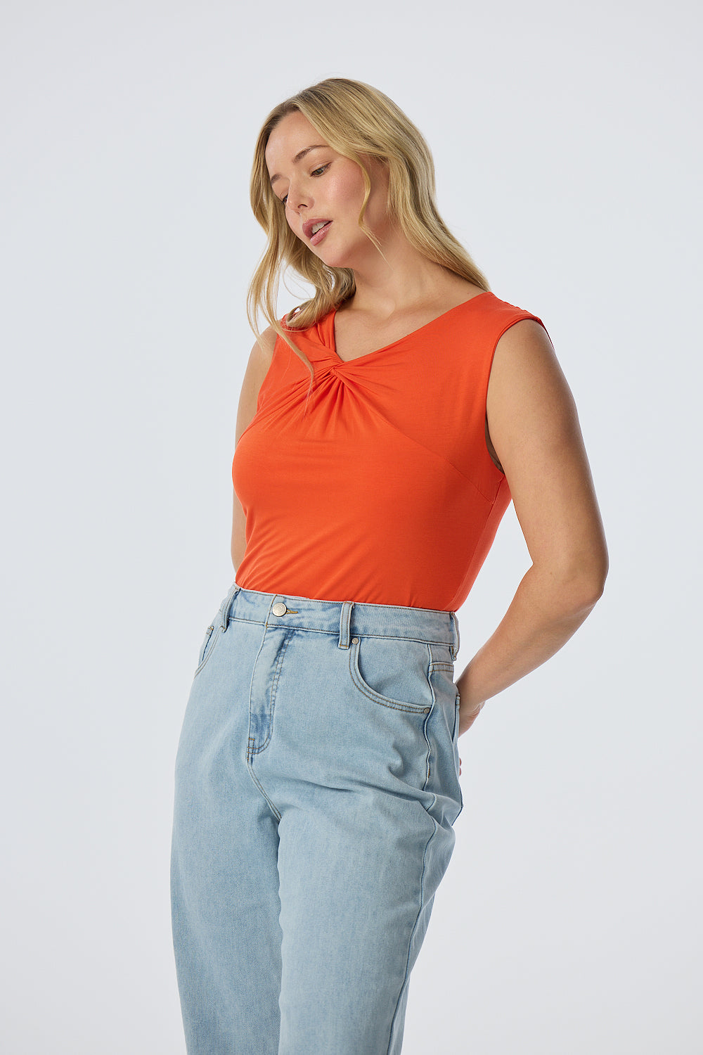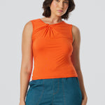 The Knot Tank in Flame features an asymmetric neckline and subtle twist detail for interest. Crafted in mid-weight stretch jersey, its fitted silhouette offers structure and comfort, with a fully lined finish for an elevated feel. A versatile foundation for effortless styling.