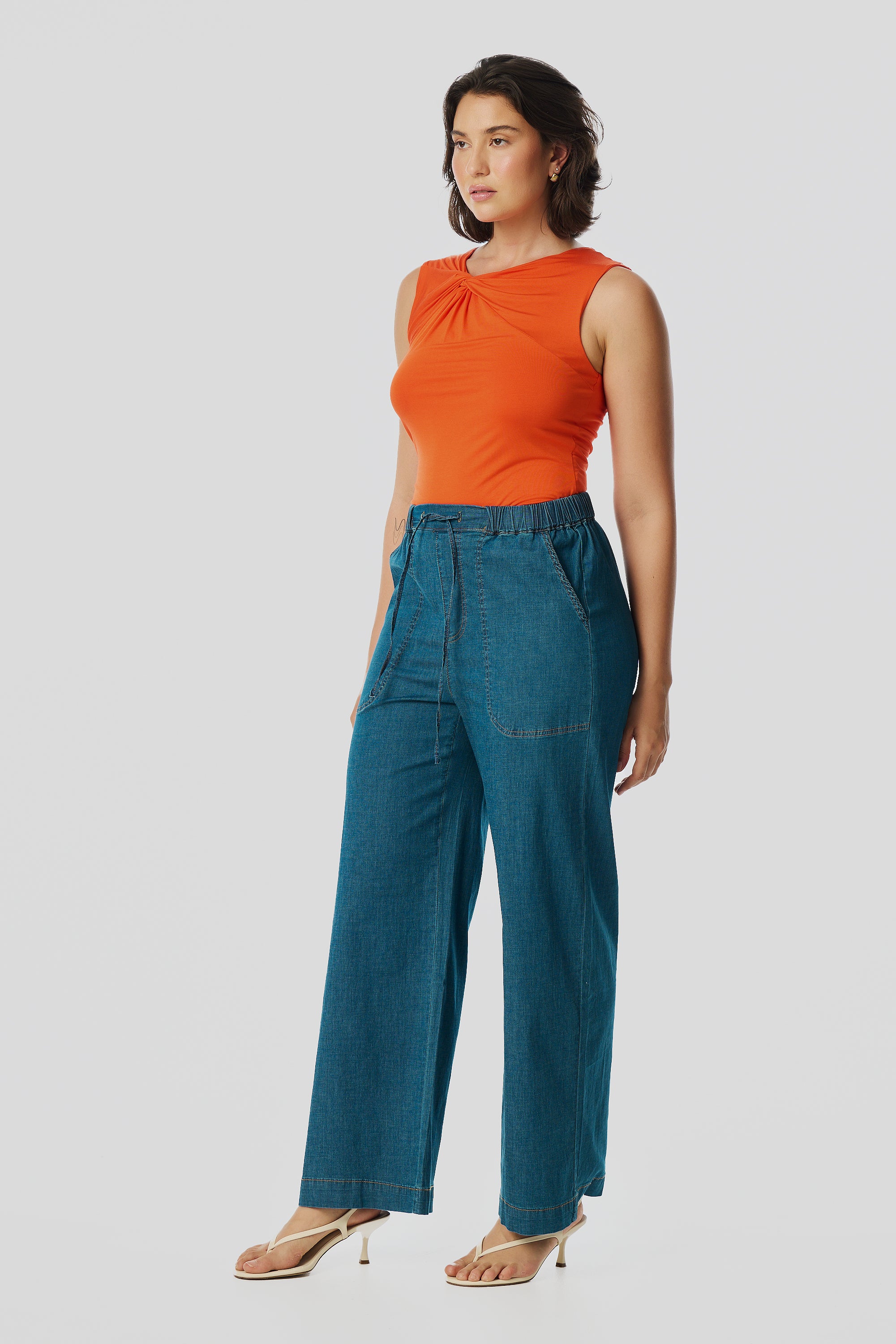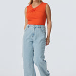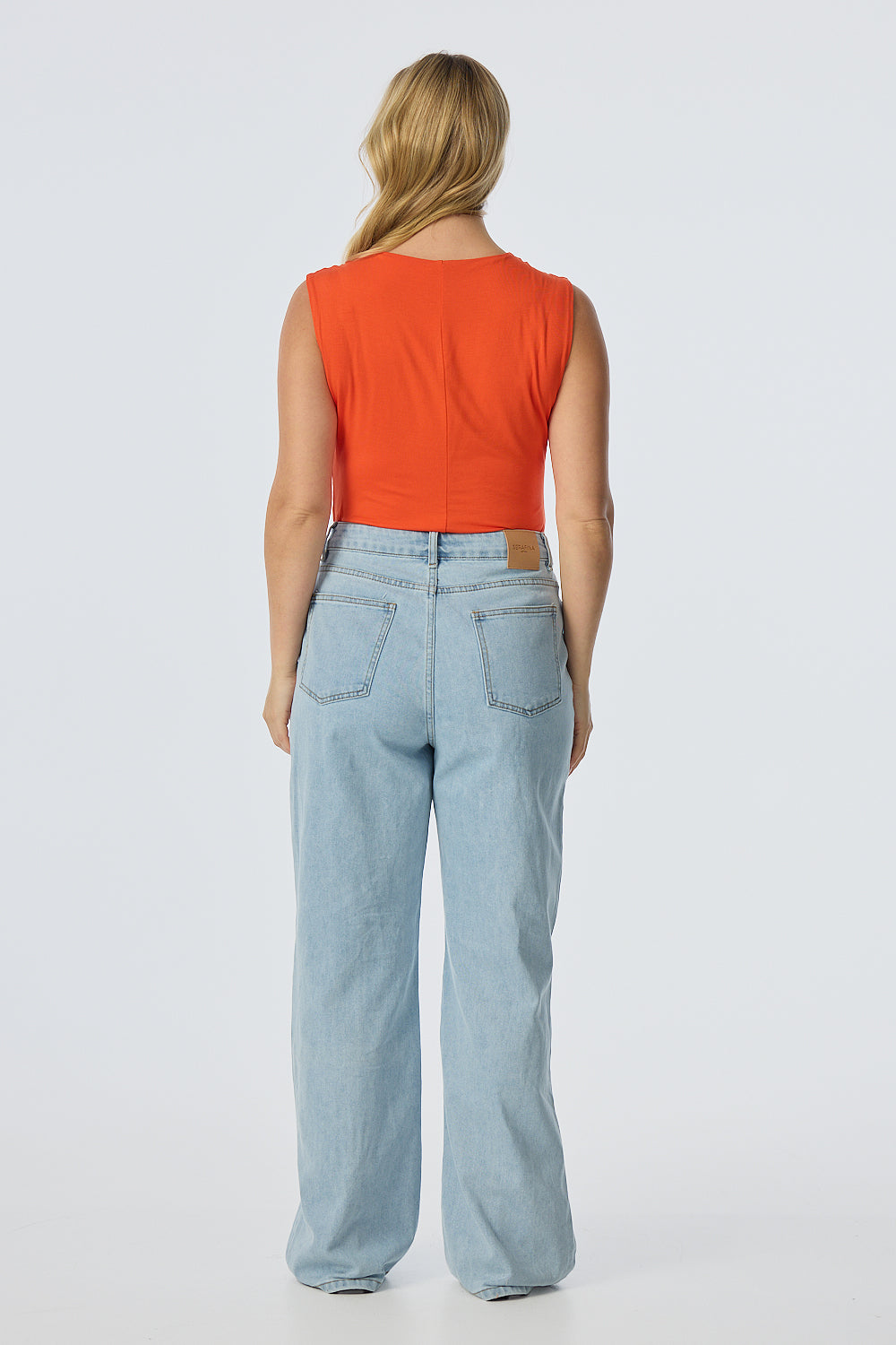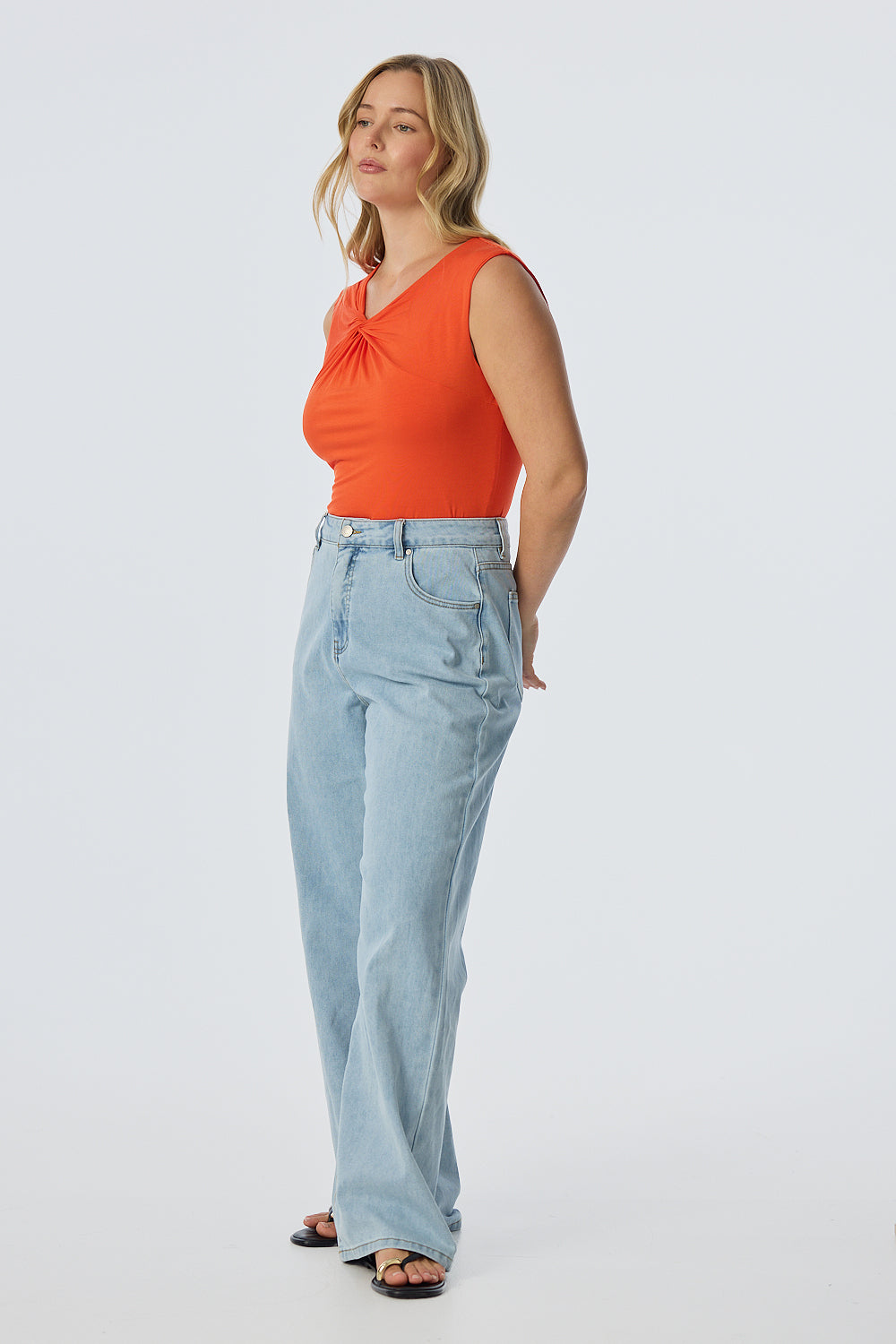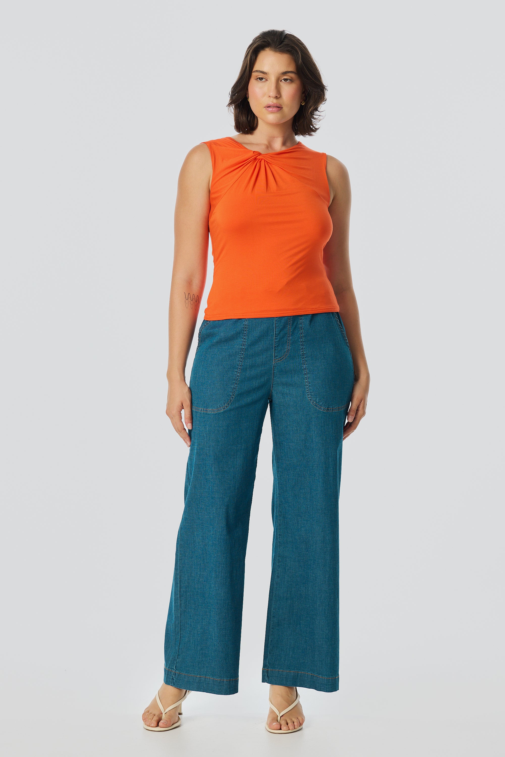 The Knot Tank in Flame features an asymmetric neckline and subtle twist detail for interest. Crafted in mid-weight stretch jersey, its fitted silhouette offers structure and comfort, with a fully lined finish for an elevated feel. A versatile foundation for effortless styling.
