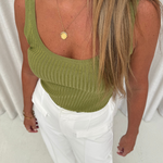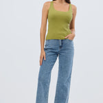 Scoop Neck Knit Tank - Chartreuse