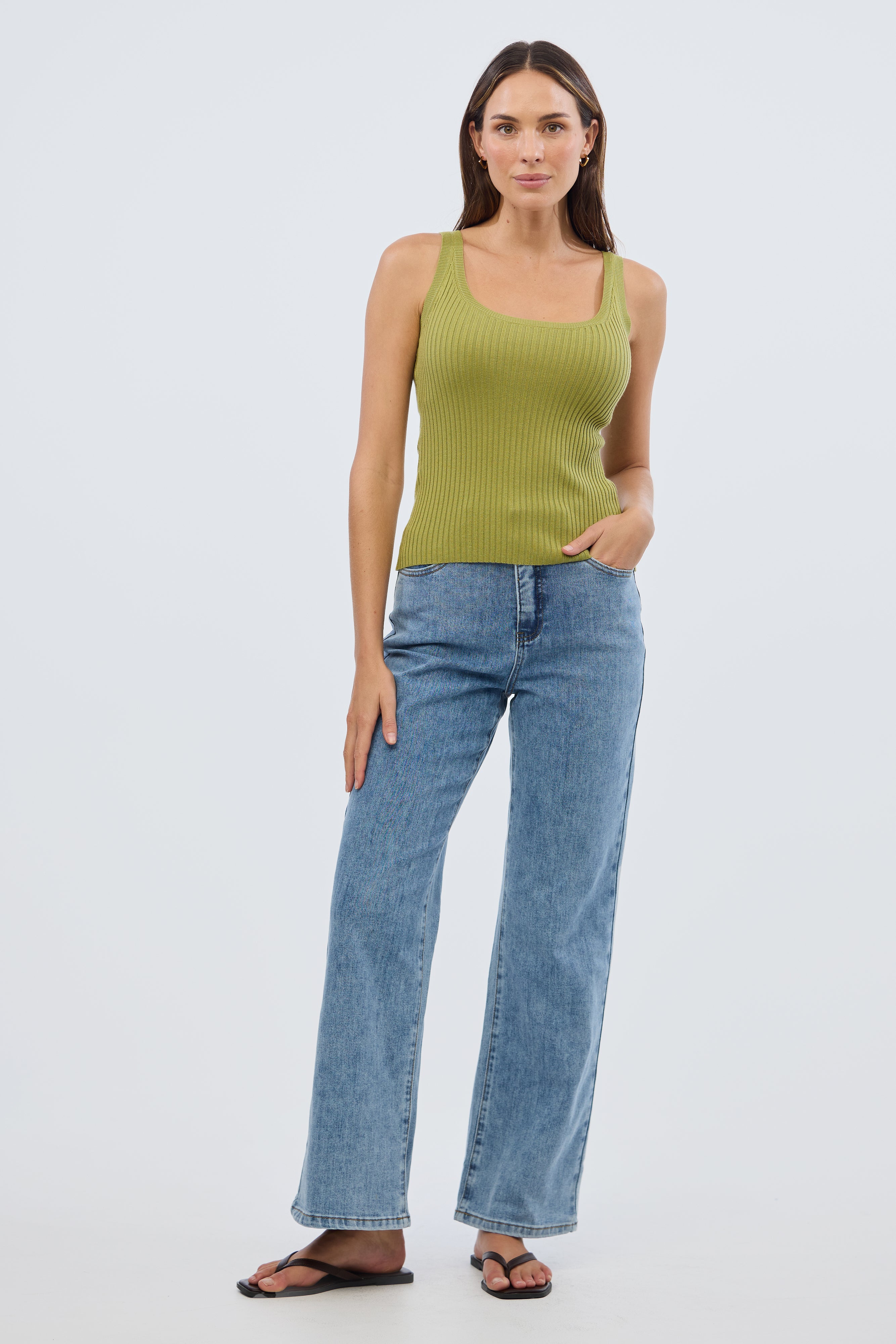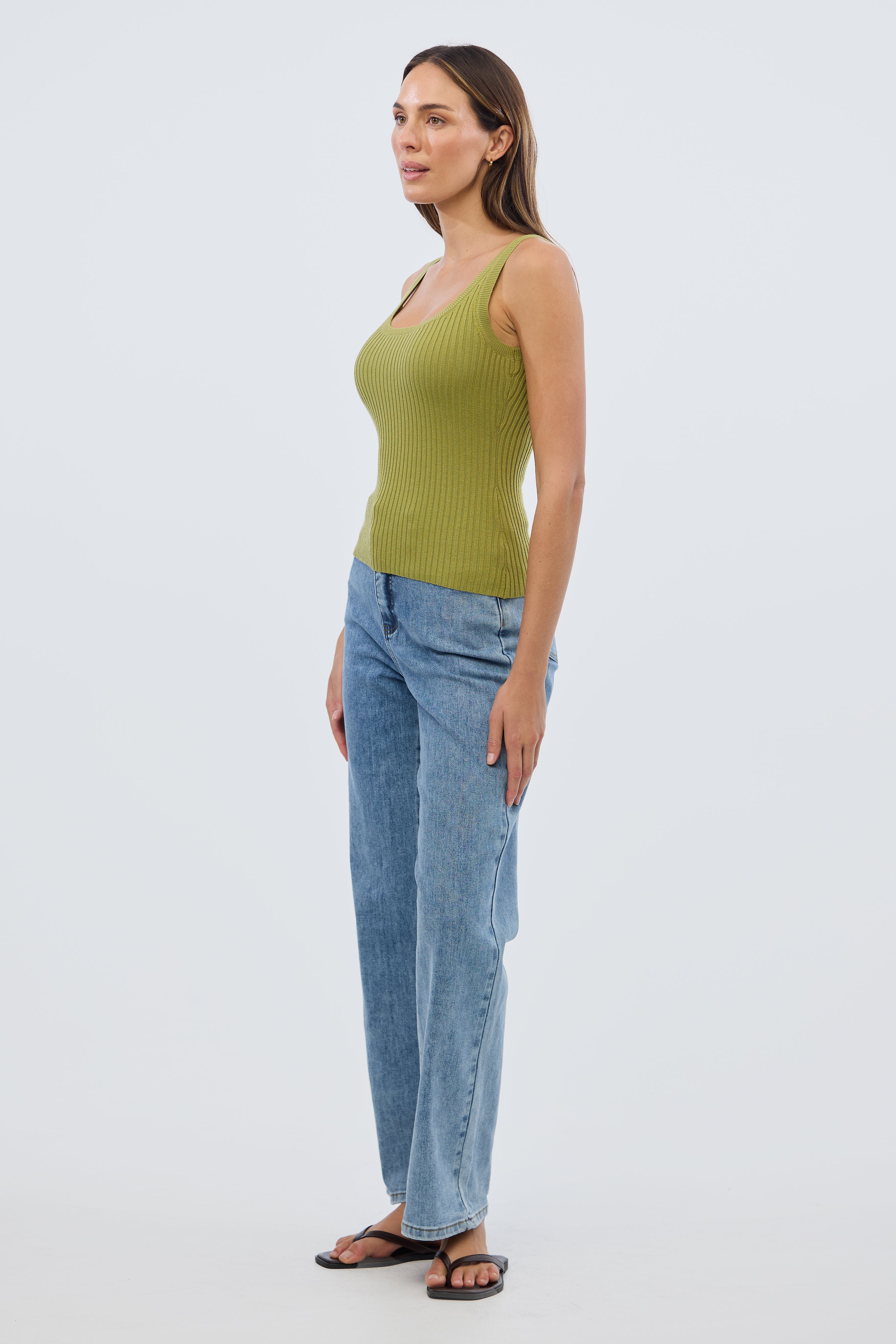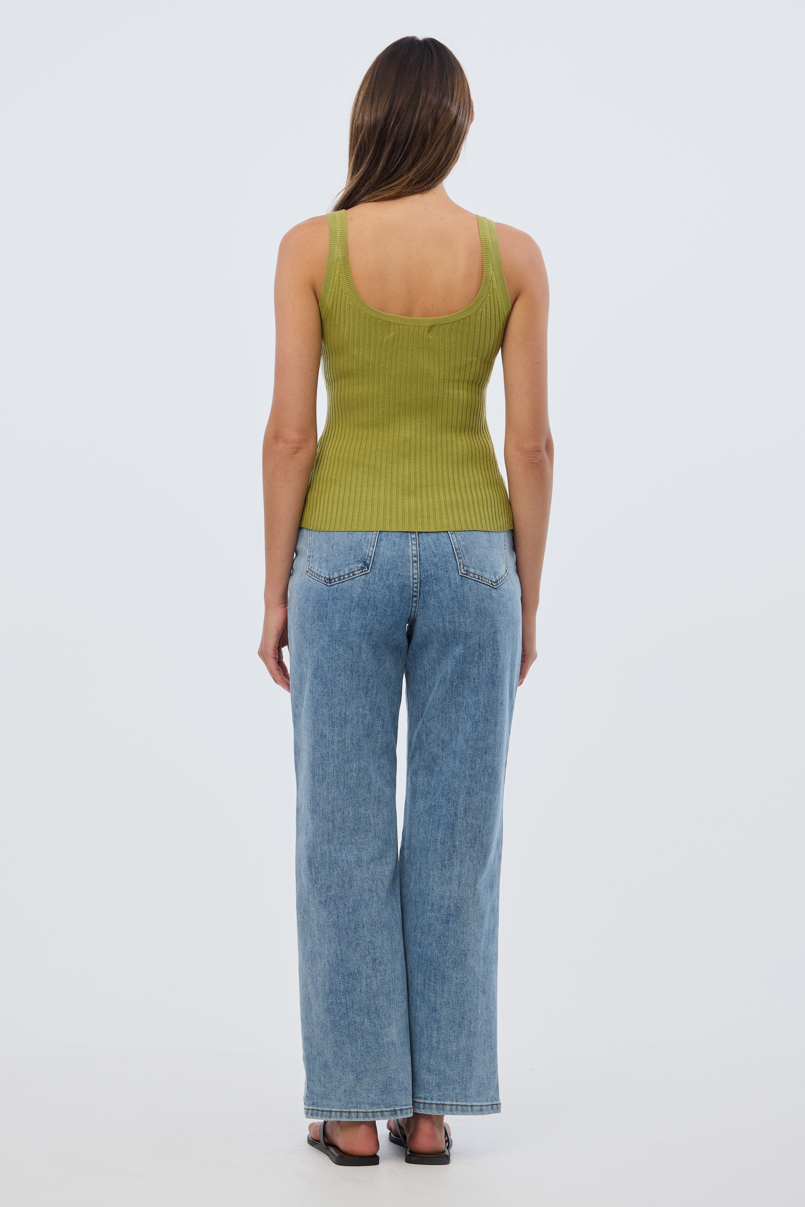 The Scoop Neck Knit Tank in Chartreuse is a versatile layering piece with a flattering fitted silhouette. Crafted from stretch mid-weight rib knit, it features a classic scoop neckline and sleeveless design, making it perfect for pairing with everything from tailored trousers to casual denim.